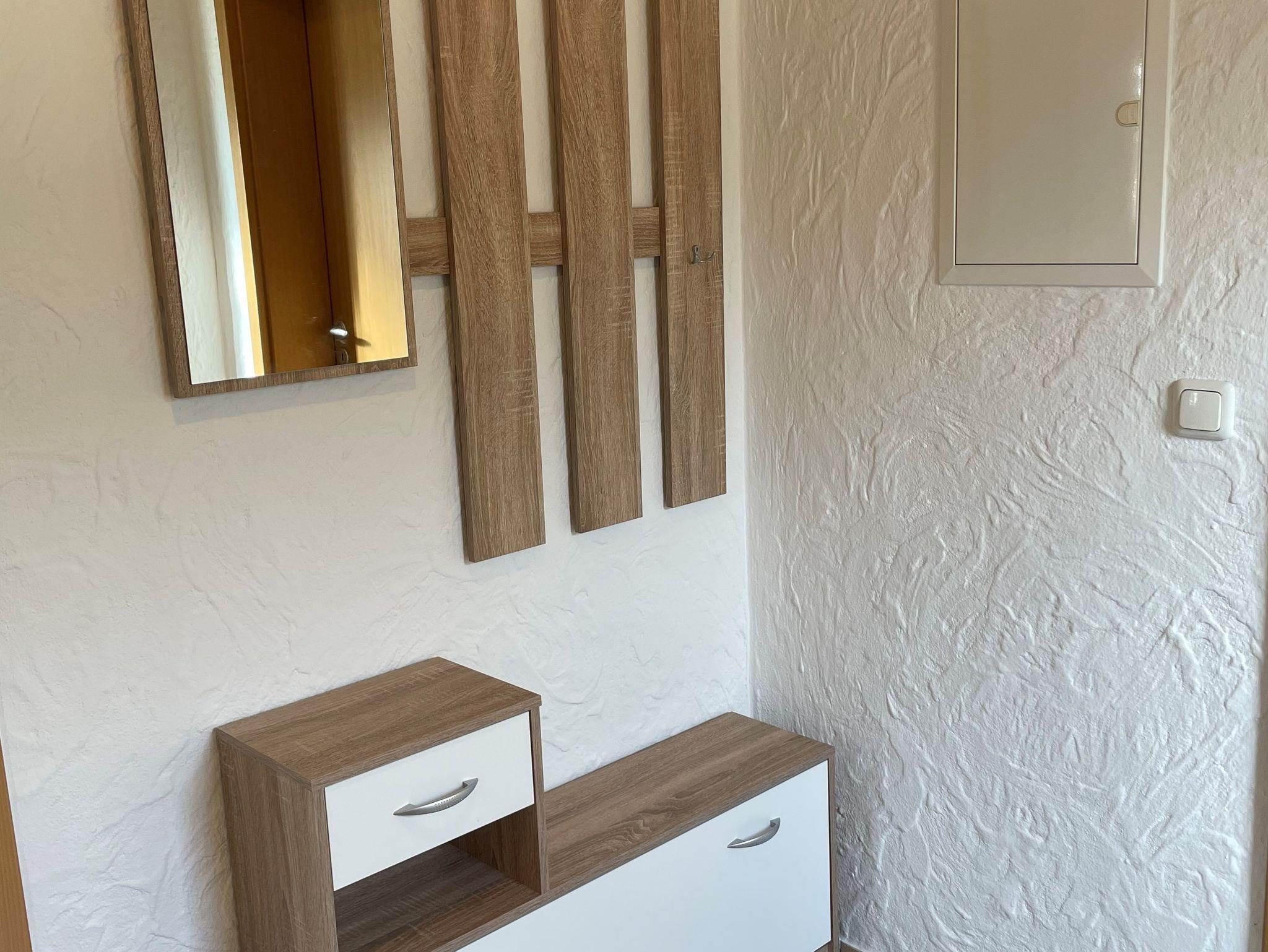Im Eingangsbereich findet man eine Gardarobe mit Spiegel und kleinem Schränkchen.