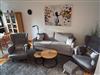 Das helle Wohnzimmer lädt mit seiner gemütlichen Couch oder den großen Sesseln zum einem entspannten Fernsehabend am Smart TV ein.