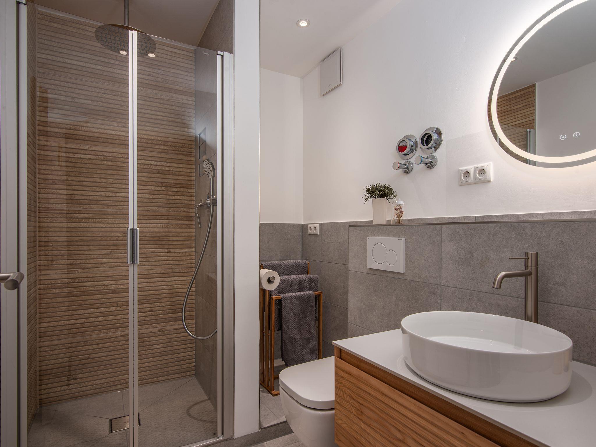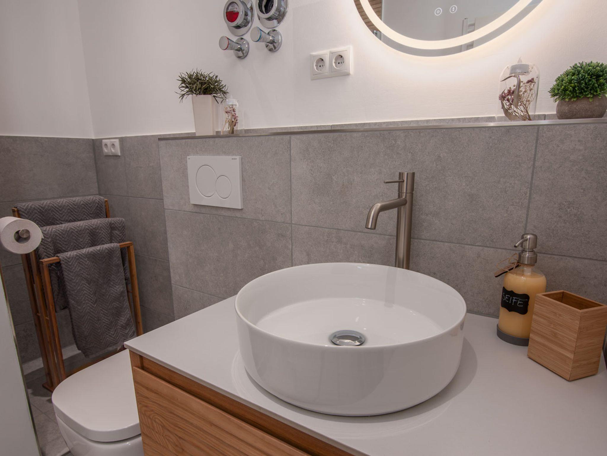 - helles, modernes Badezimmer mit Dusche. Duschgel und Handseife sind genauso wie Handtücher, Kaffee und Tee immer inklusive und kostenlos