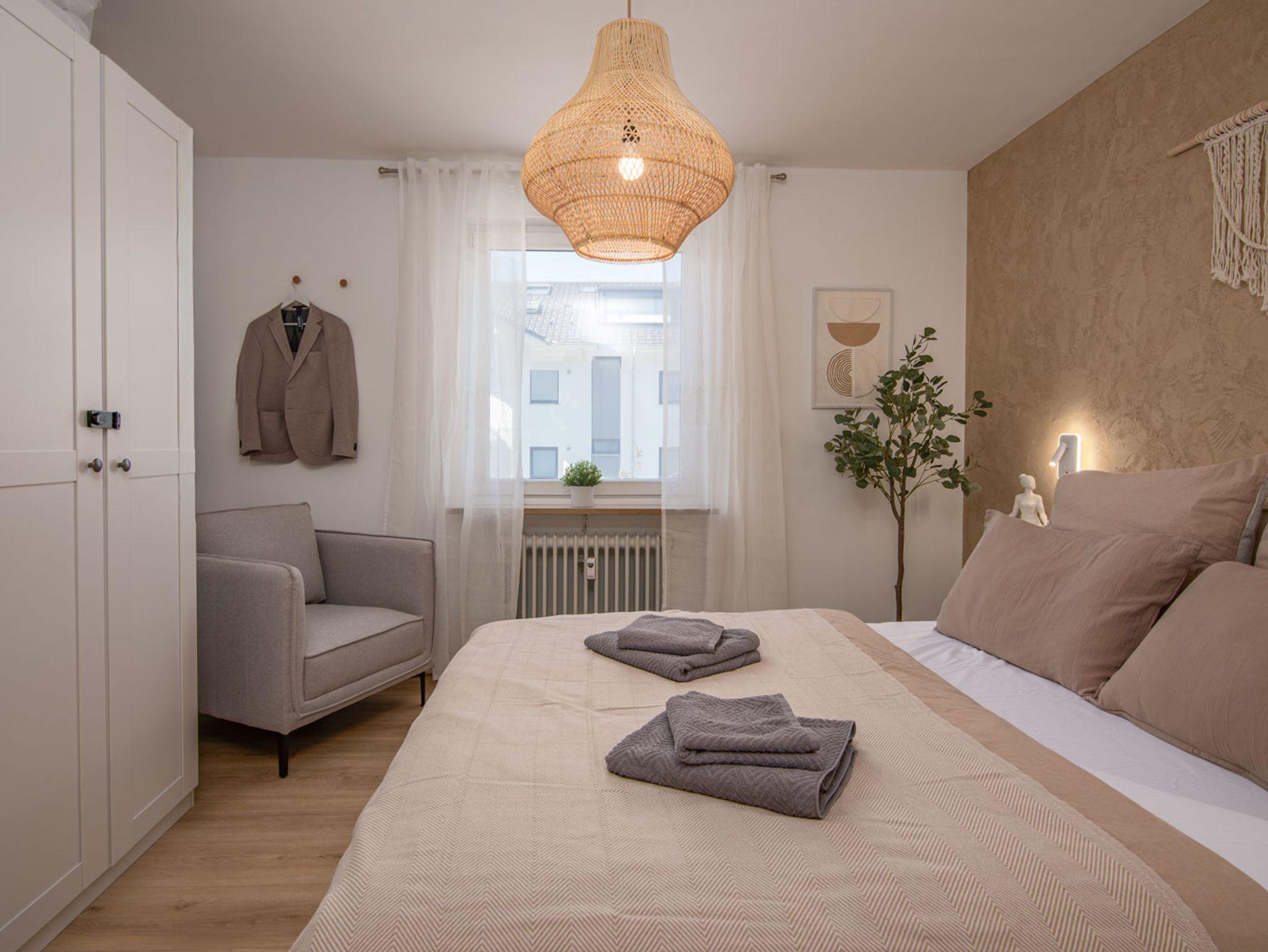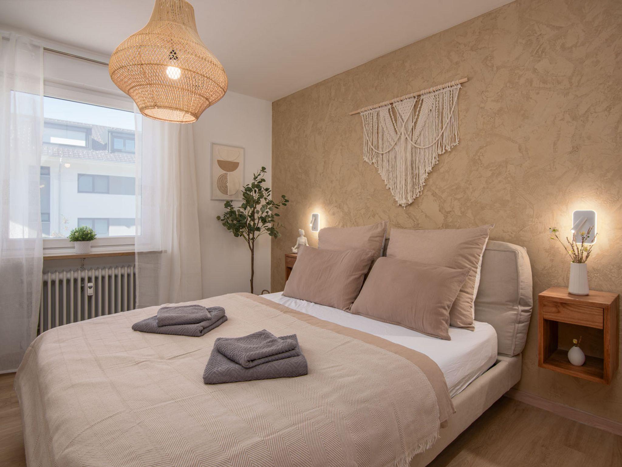 Die gut 54 qm große Wohnung mit Südbalkon, welcher zum Verweilen und Sonne tanken einlädt, befindet sich in einem Mehrfamilienhaus. Die Ferienwohnung, welche sich im 1. Stock befindet, wurde Mitte 2025 vollständig modernisiert, sowie renoviert und wartet mit nagelneuer Küche, 2 separaten Zimmern, modernem großen Bad mit begehbarer Dusche und einem freundlichen Eingangsbereich, alles hochwertig im modernen, freundlichen Boho-Stil eingerichtet, auf lebenslustige Gäste.