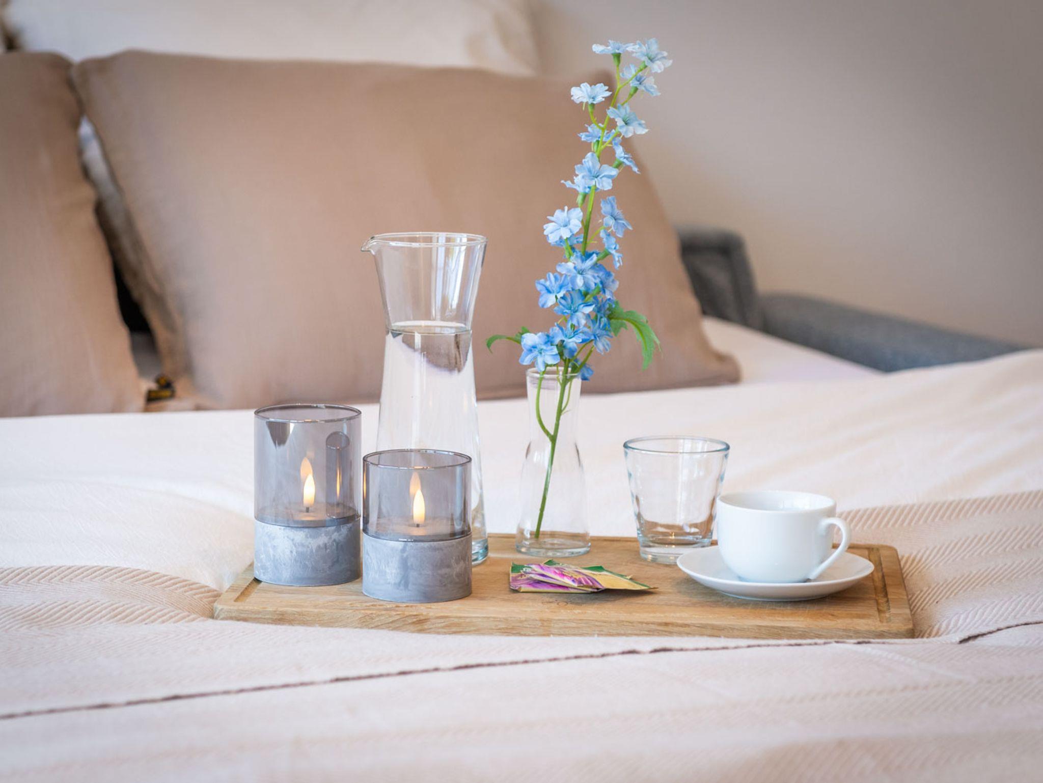 Das Thema Nachhaltigkeit liegt uns am Herzen: Deshalb versuchen wir soweit es uns möglich ist, unsere Einrichtung, sowie Verbrauchsgegenstände in der Wohnung aus nachhaltigen Materialien zu gestalten. Unsere Bio-Teeauswahl, aus welcher du dich vor Ort kostenfrei bedienen darf, stammen aus der oberbayerischen Manufaktur von Herbaria. Der Kaffee wird in einem kleinen Familienbetrieb regional produziert und geröstet. Wir verzichten daher, soweit wie möglich, außerdem auf Wegwerf- oder Einwegartikel.