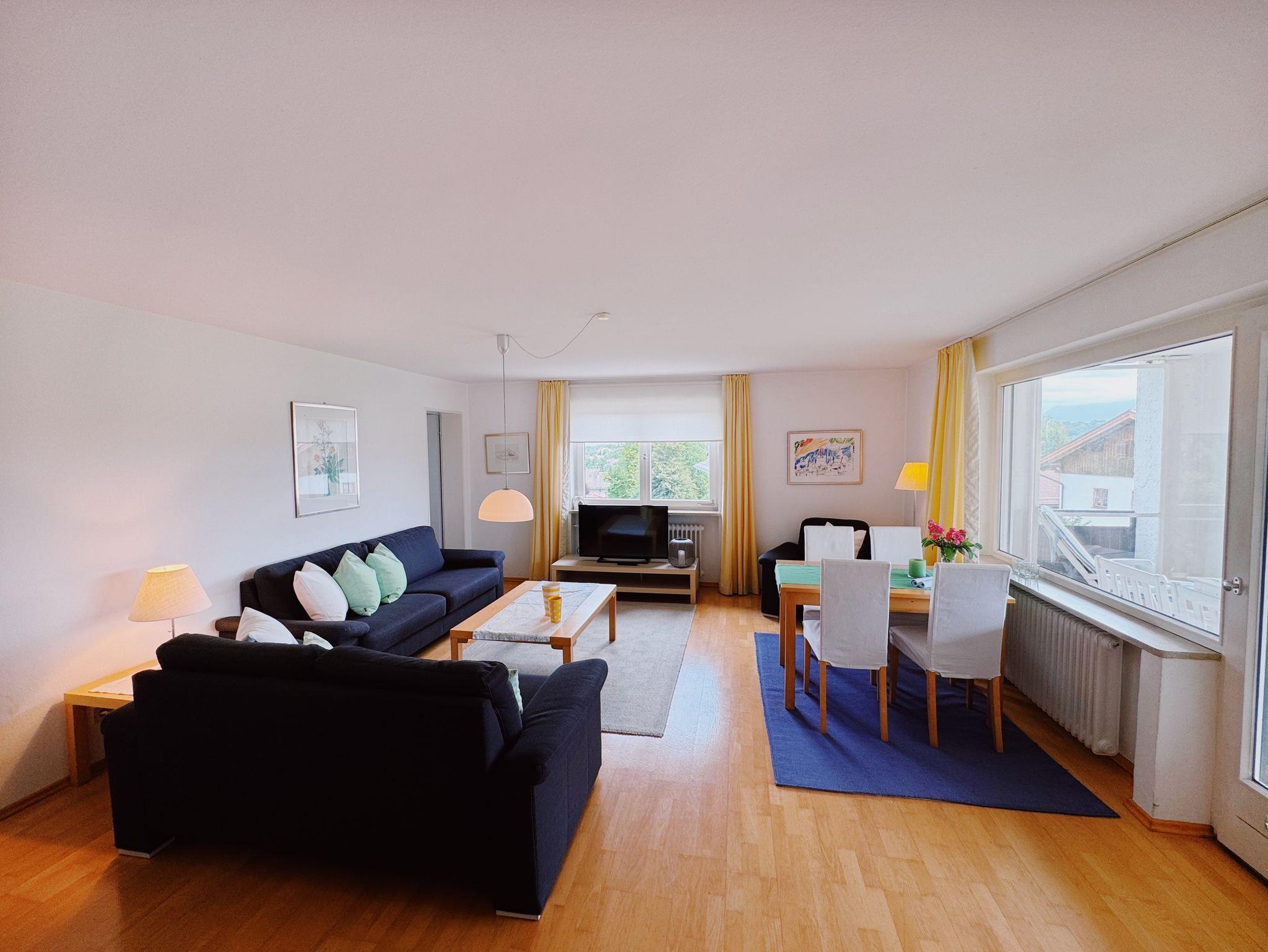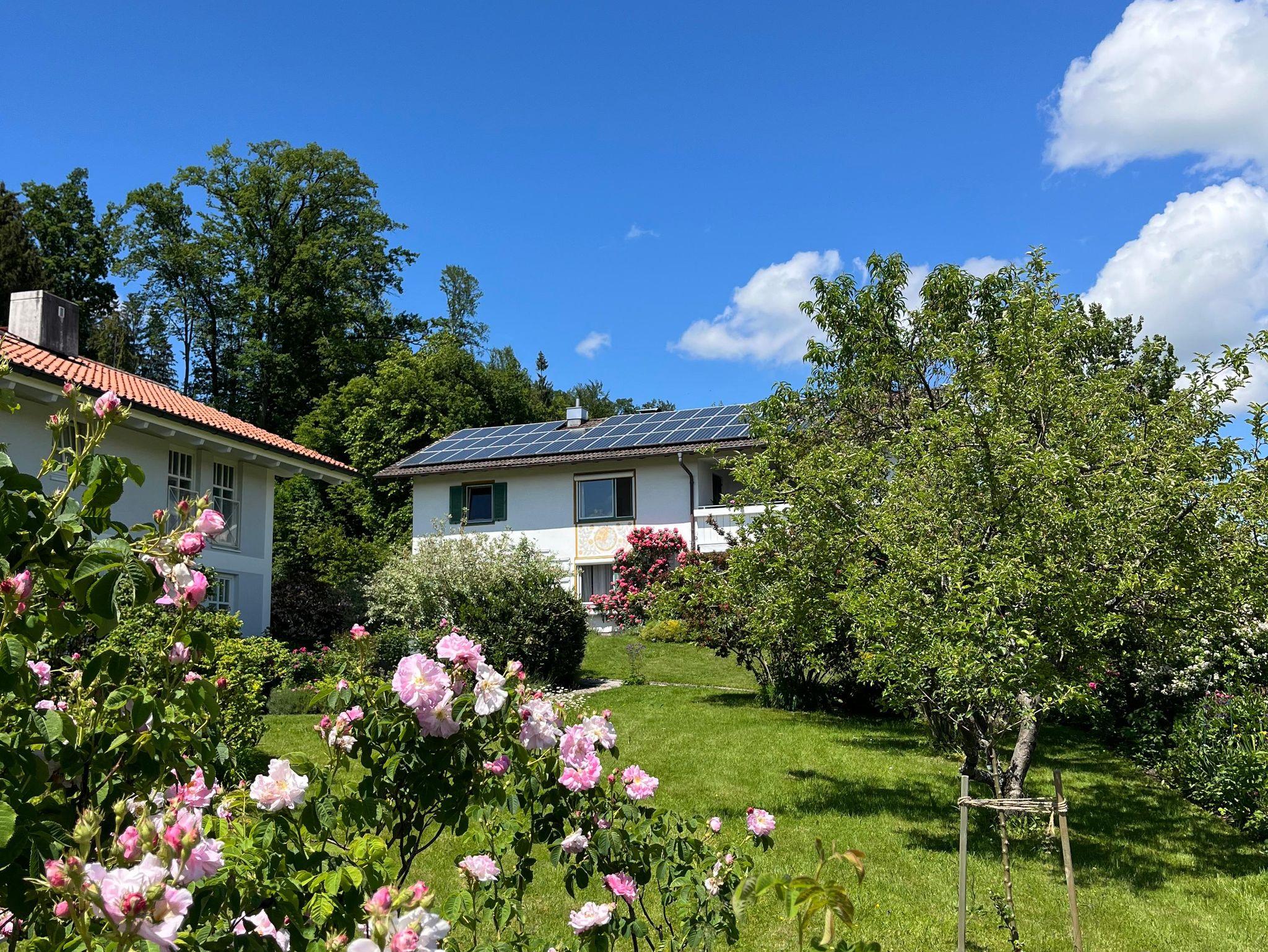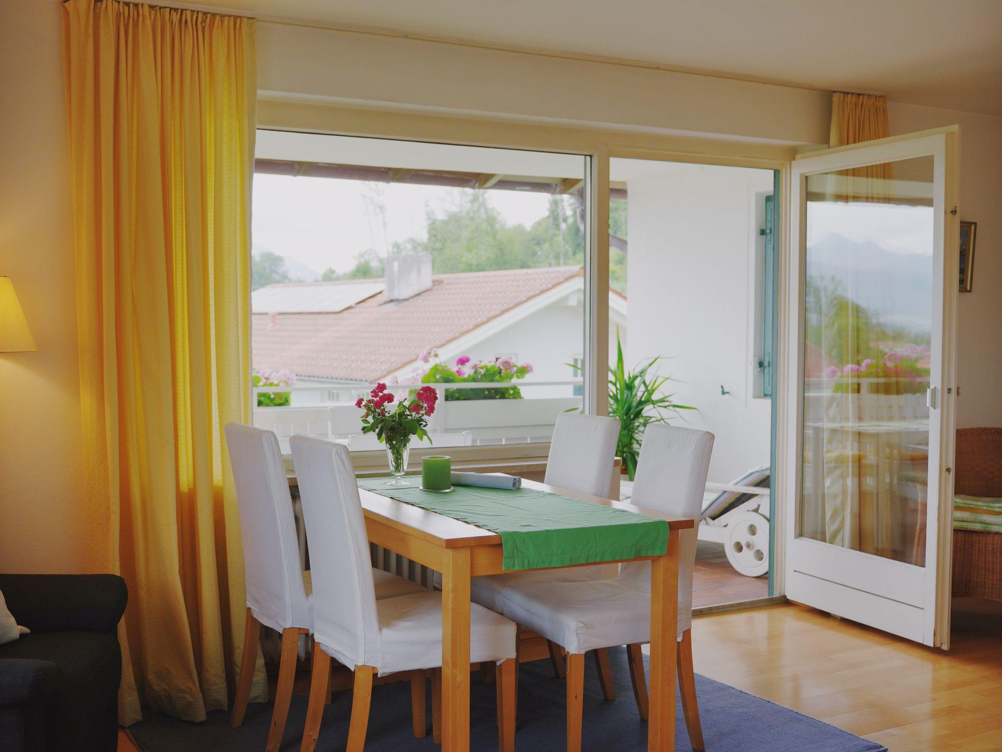 Lage: Sonnige und ruhige Süd-Lage am Waldrand mit herrlichem Blick auf die Chiemgauer Berge. Ca. 10 Gehminuten zur Ortsmitte. Ausstattung: Komfortabel ausgestattete Wohnung (89 qm) mit hochwertiger Möblierung, Parkettboden, großer Wohnraum mit TV, 2 Schlafzimmer, 2 Bäder/WC, separate komplett ausgestattete Küche (Spülmaschine, E-Herd, Kaffeemaschine, Toaster, Wasserkocher).Kostenloser Internetzugang über WLAN. Große Südloggia mit Liegen und Sitzgruppe, Biokräutergarten, Schaukel, Liegewiese, Carport, abschließbarer Fahrradraum, Kinderspielecke im Garten, Gartensitzplatz. Bett- und Tischwäsche sowie Handtücher werden gestellt. Endreinigung inklusive. Keine Haustiere. Besonderheiten: In der Saison A und B kann die Wohnung auch ohne 2. Schlafzimmer und ohne 2. Bad/WC (65 qm) für zwei Personen gemietet werden.