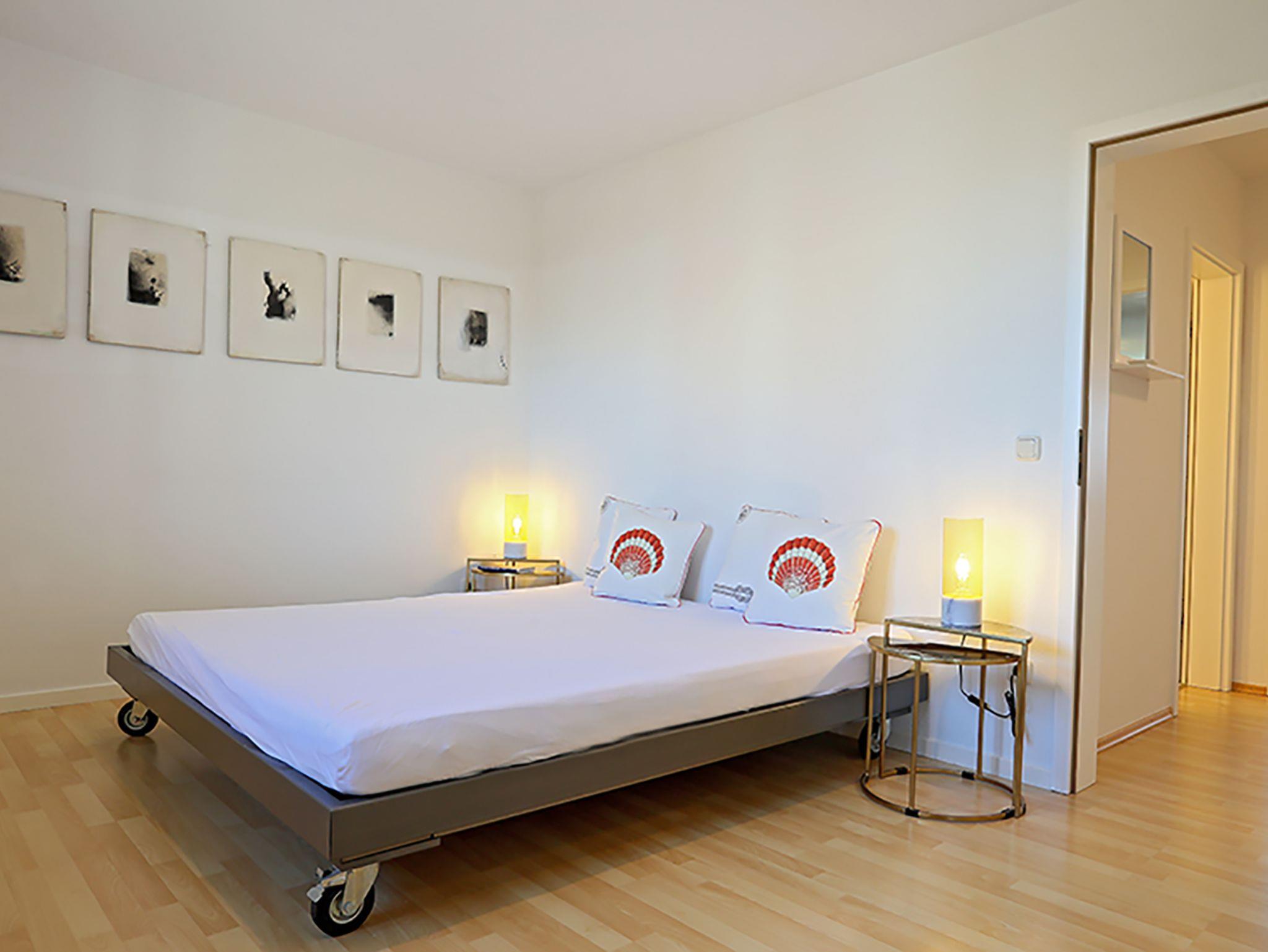 Diese schöne Ferienwohnung mit Balkon, Gartenblick und Gartennutzung hat 1 Schlafzimmer mit einem Doppelbett (180x200), 1 großes Wohnzimmer mit einer hochwertigen Schlafcouch, einen großen Flachbild-Plasma TV, sowie eine integrierte, sehr gut ausgestattete Küche mit Saftpresse und Mixer, einem Kühl-, Gefrierschrank, Cerankochfeld, Backofen, Mikrowelle und einem Geschirrspüler sowie 1 Badezimmer mit einer Dusch-Badewanne mit Regenwald-Dusche.