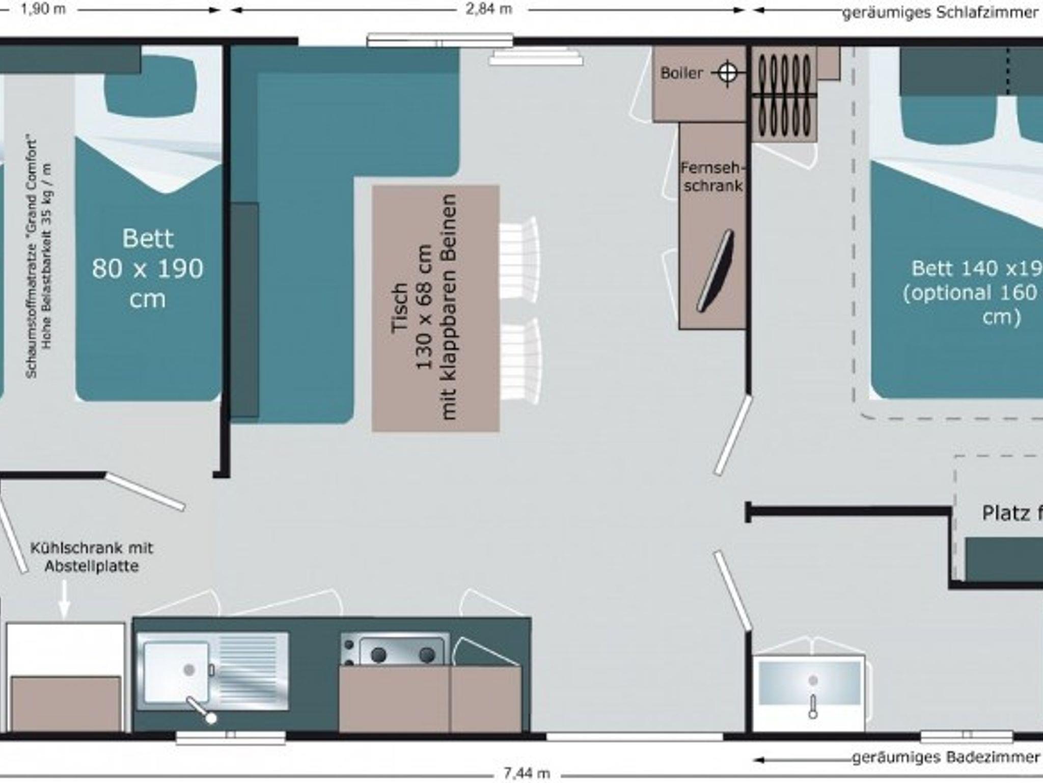 Ferienhaus Dickertsmühle, Mobilheim mit Küche, Bad, WC und zwei separaten Schlafzimmern