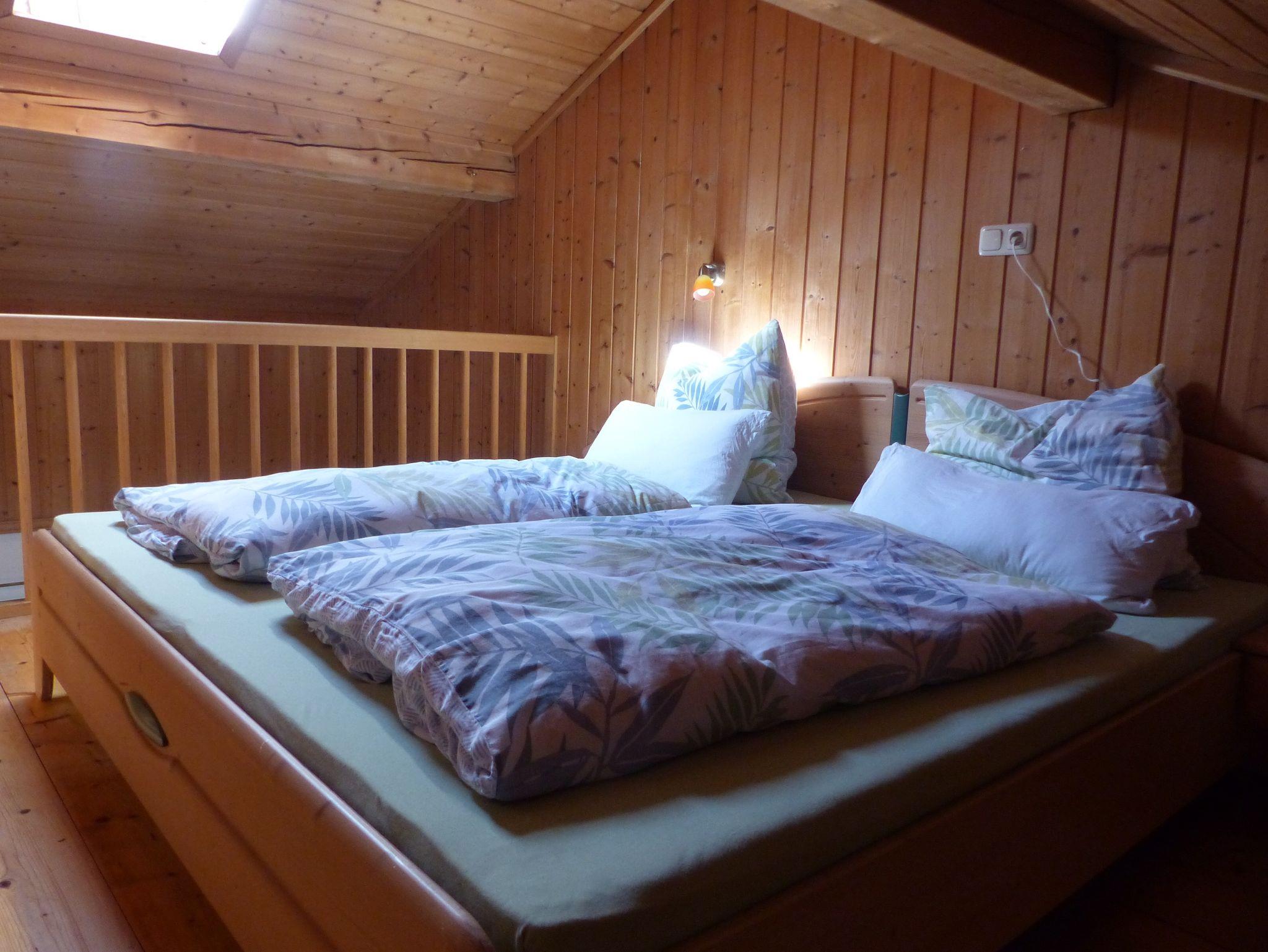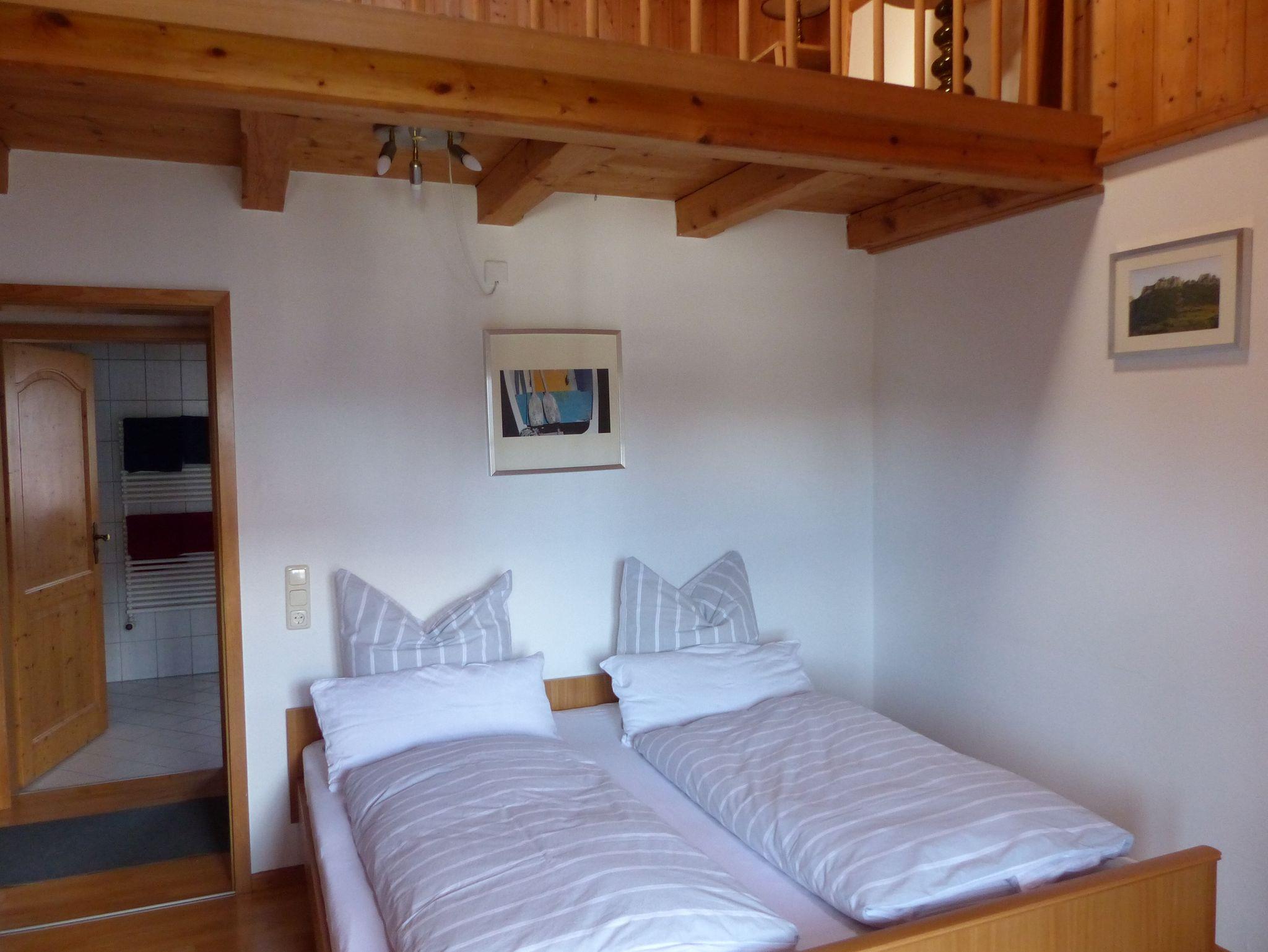Unsere Wohnung bietet Platz für maximal 5 Personen und bietet eine voll ausgestattete Wohn,- Essküche mit Geschirrspüler und Toaster. Dusche/WC, Sat-TV, Bügeleisen, Bügelbrett, Parkett, Bettwäsche und Handtücher sin ebenfalls vorhanden. Besonderheit unserer Wohnung ist der Zugang zu den obigen Galerieschlafplätzen. Dieser findet über zwei Treppen (Raumspartreppe) statt. Die Zimmer sind nicht durch Türen getrennt.