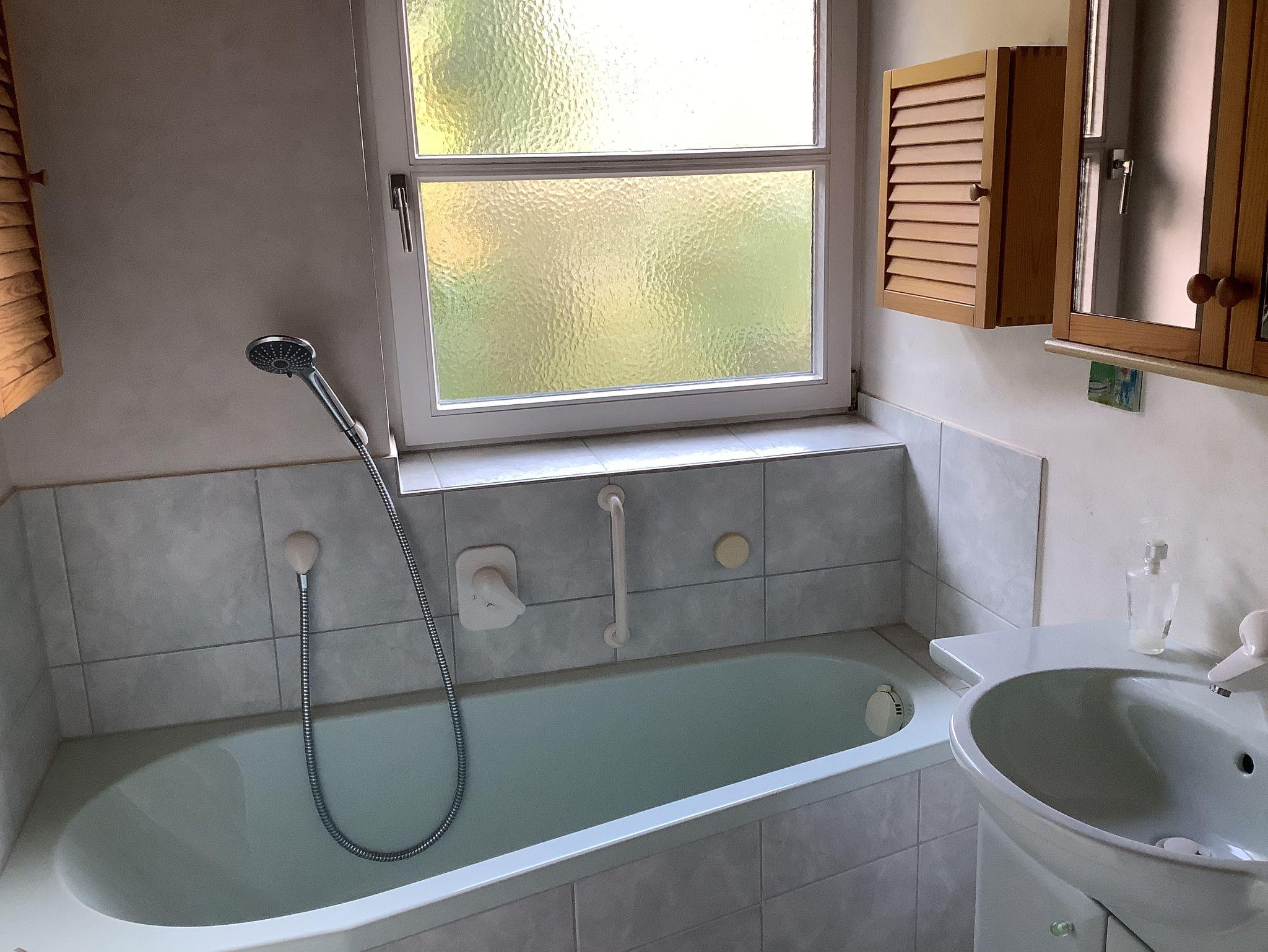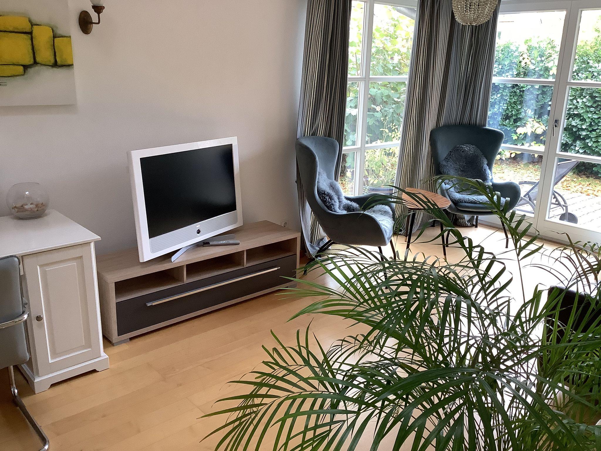 Ausstattung: exklusiver Landhausstil erwartet Sie in unserer 100 qm Wohnung. Schlafzimmer mit Doppelbett, Galerie mit zwei Betten und Chaiselongue mit Blick durch das Dachfenster, Wohnzimmer mit TV, komplett ausgestattete Wohnküche mit Geschirrspüler, Bad mit Dusche, WC und Badewanne. Großzügige Fenster mit Blick auf die Natur. Zugang zur Terrasse über Küche und Wohnzimmer möglich. Abstellkammer mit Waschmaschine vorhanden. sonderheit: eigener Gartenanteil mit überdachbarer Terrasse. Im Hauptgarten nebenan befindet sich ein Teich, was mit Kleinkindern bedacht werden muss. Stellplatz für PKW vorhanden. Fahrradabstellplatz ebenso. Haustier auf Anfrage.