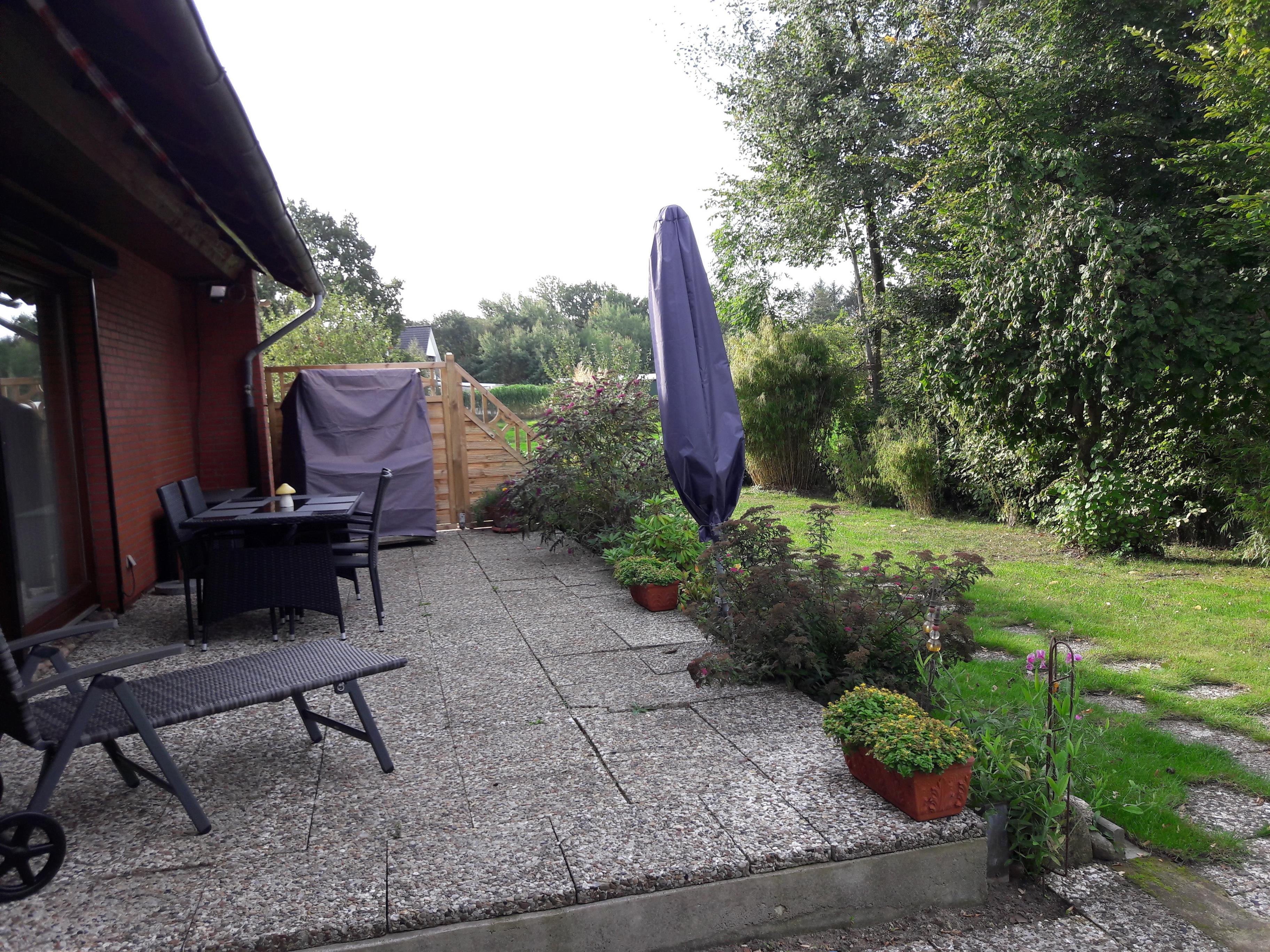 Das Ferienhaus verfügt über ein Grundstück an der Eider mit eigenem Bootssteg, Badeplatz und Angelmöglichkeiten.