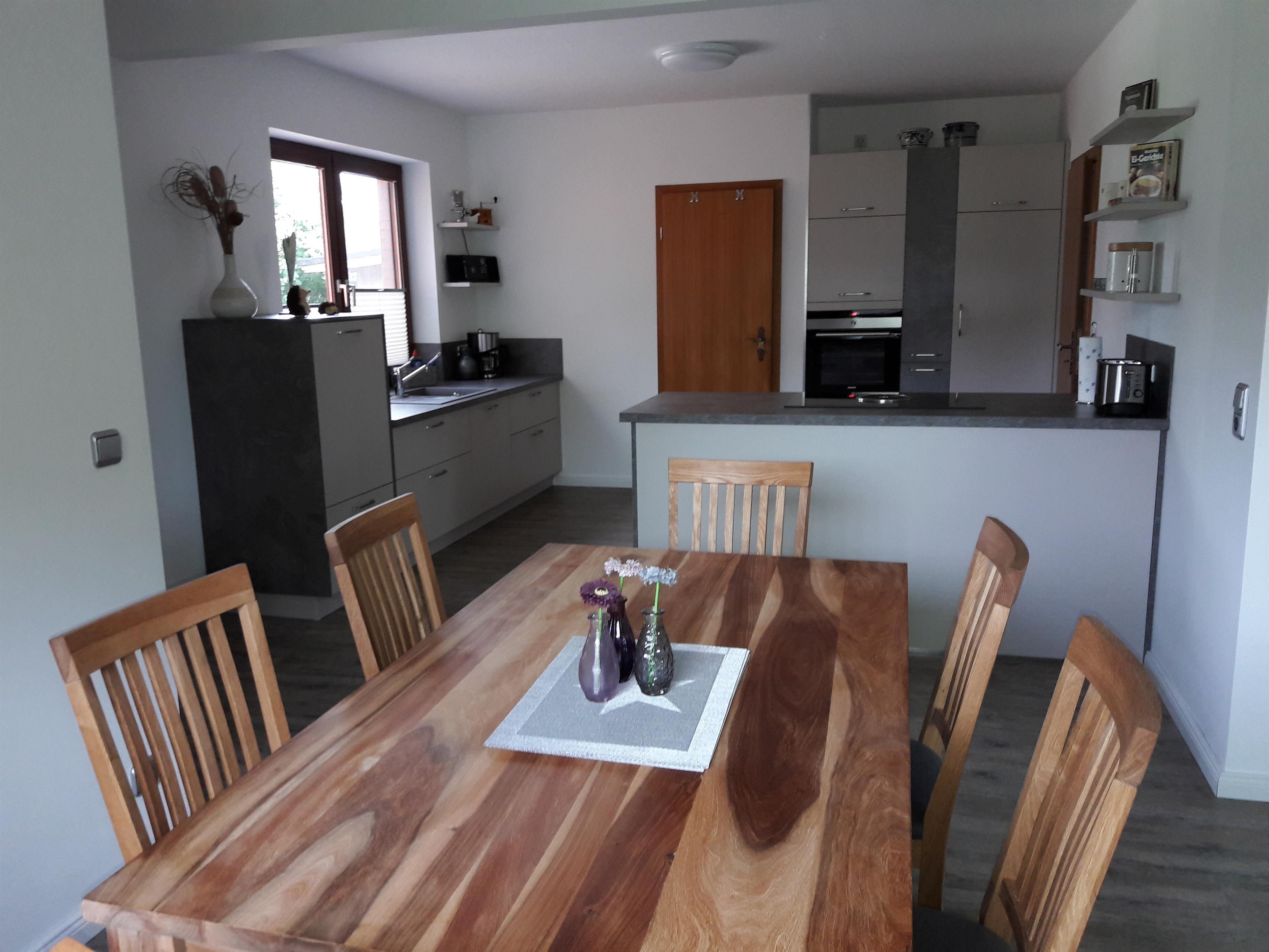 Genießen Sie einen gemütlichen Aufenthalt in diesem Ferienhaus in einer besonders schönen ländlichen Umgebung. Das Haus präsentiert sich mit einer modernen offenen Küche, die sich zum Esstisch und zum Wohnzimmer hin öffnet. Vom Wohnzimmer aus gelangen Sie auf die großzügige 50 qm Terrasse und in den wunderschönen Garten.
