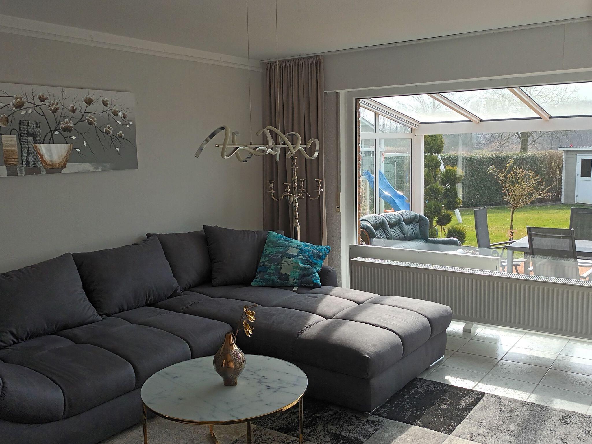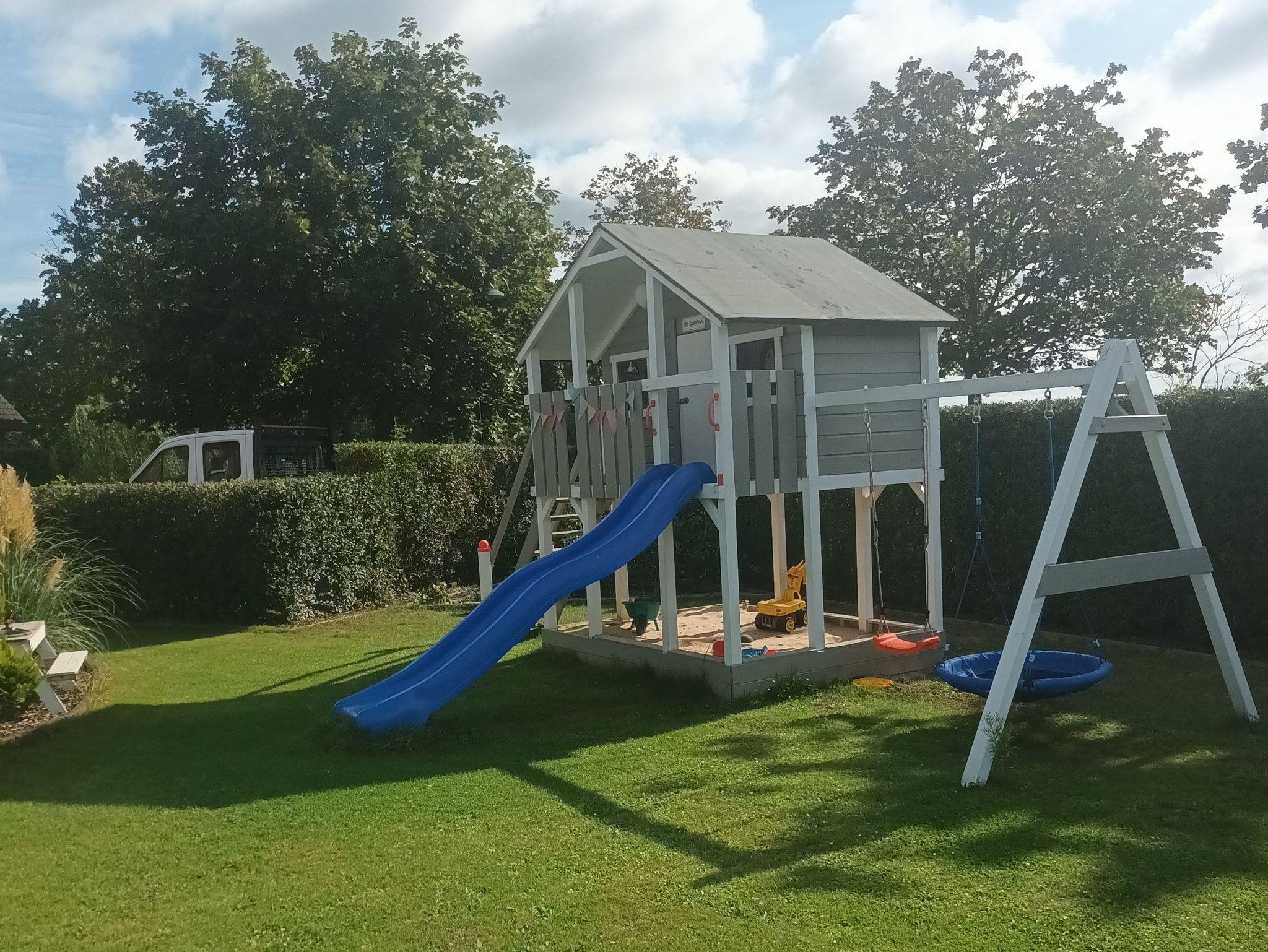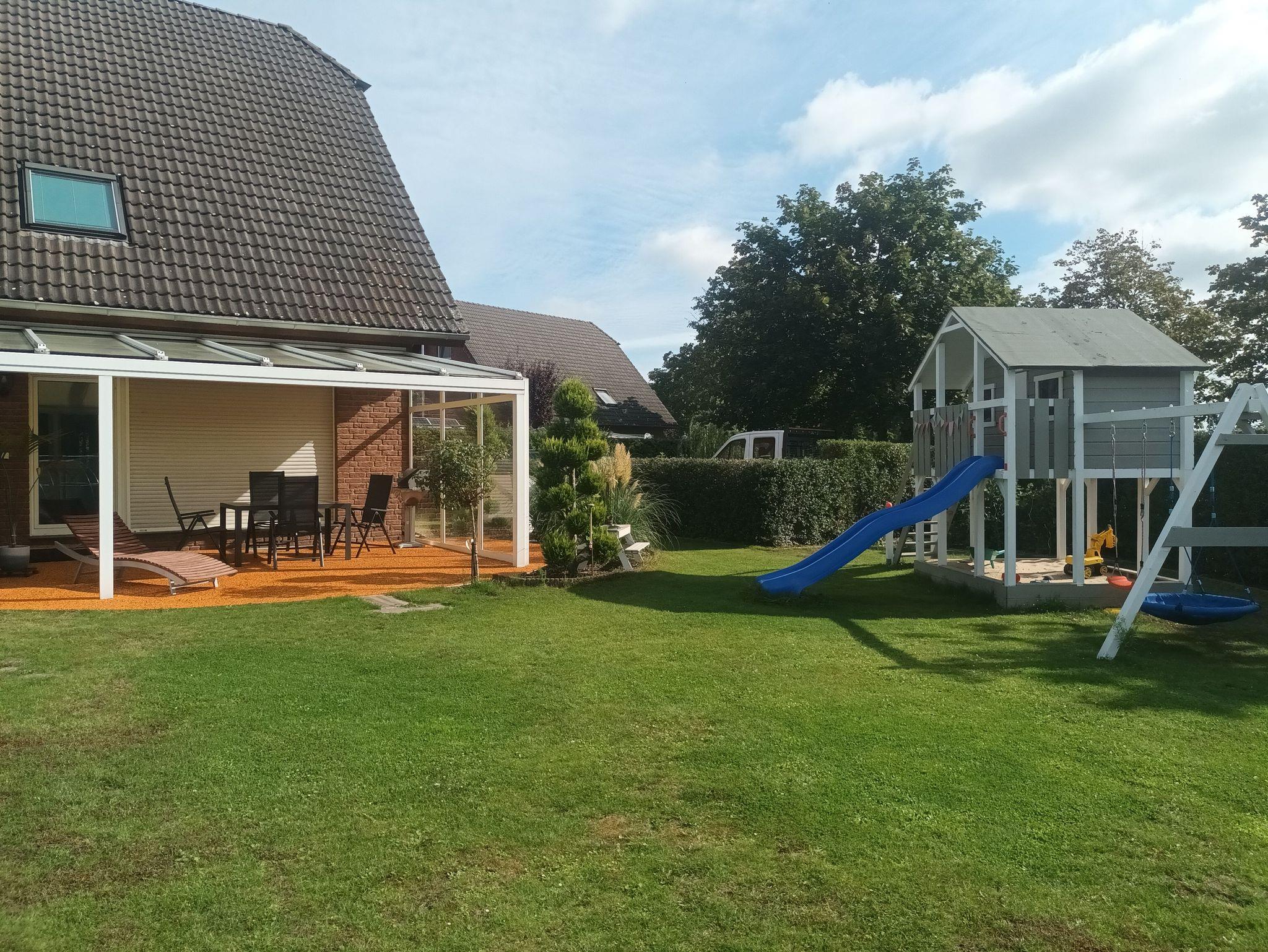 Direkten Zugang zum Garten erhält man über die überdachte Terrasse. Hier kann entspannt und gegrillt werden, während die Kinder auf dem Spielplatz spielen.