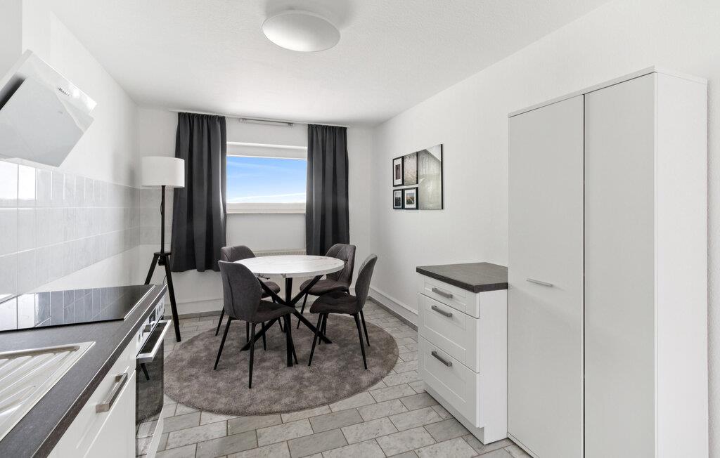 I denne lejlighed forenes tidløs elegance og hygge på harmonisk vis. Et smukt trælook, en komfortabel sofagruppe og et moderne køkken skaber en afslappet atmosfære, hvor I kan lade op med ny energi. Uanset om I ser fjernsyn, lytter til musik eller tilbereder et lækkert måltid – her bestemmer I selv tempoet for dagen.