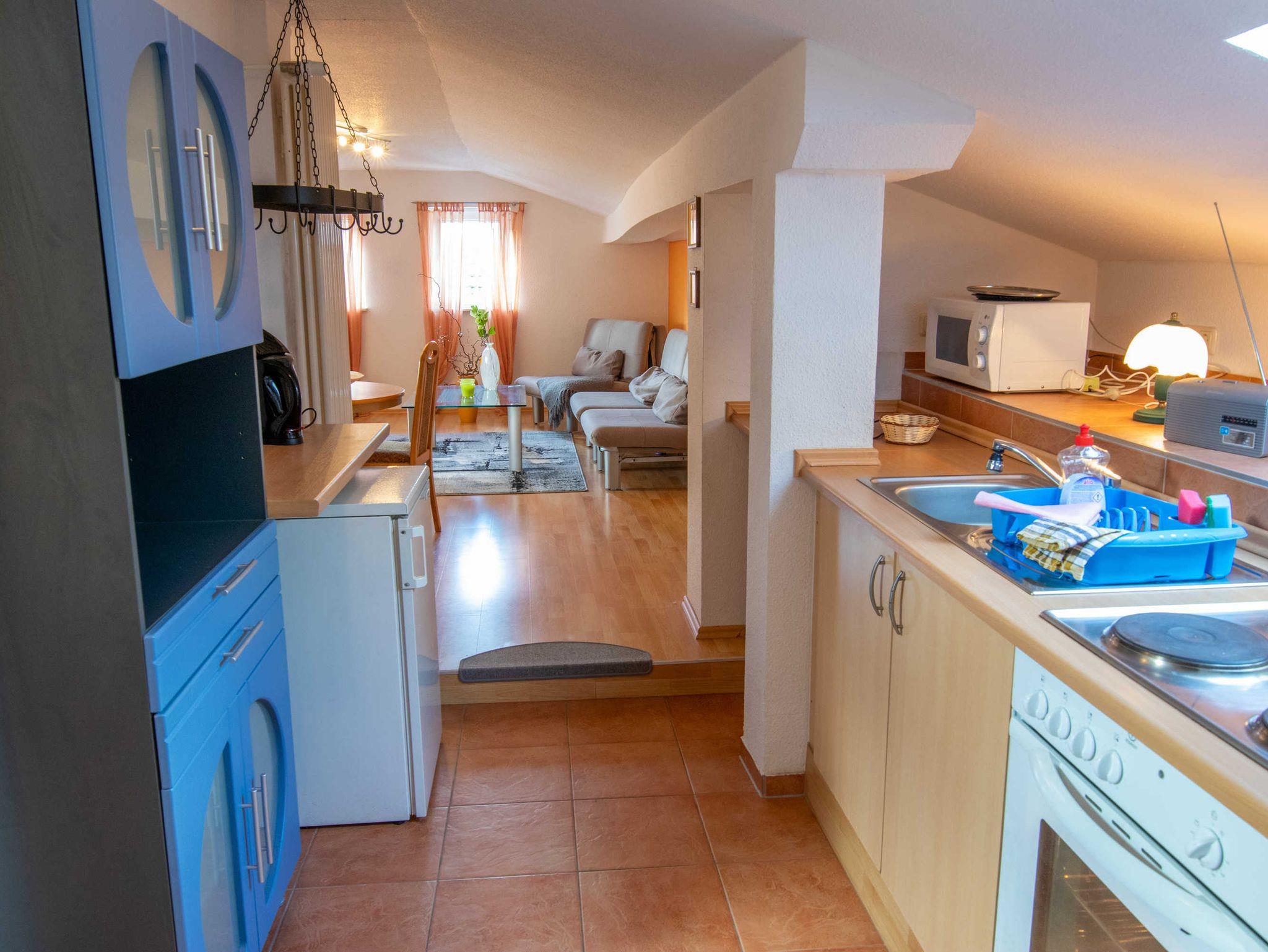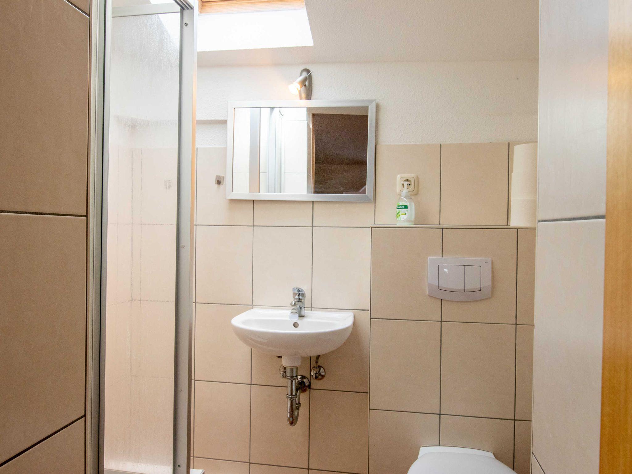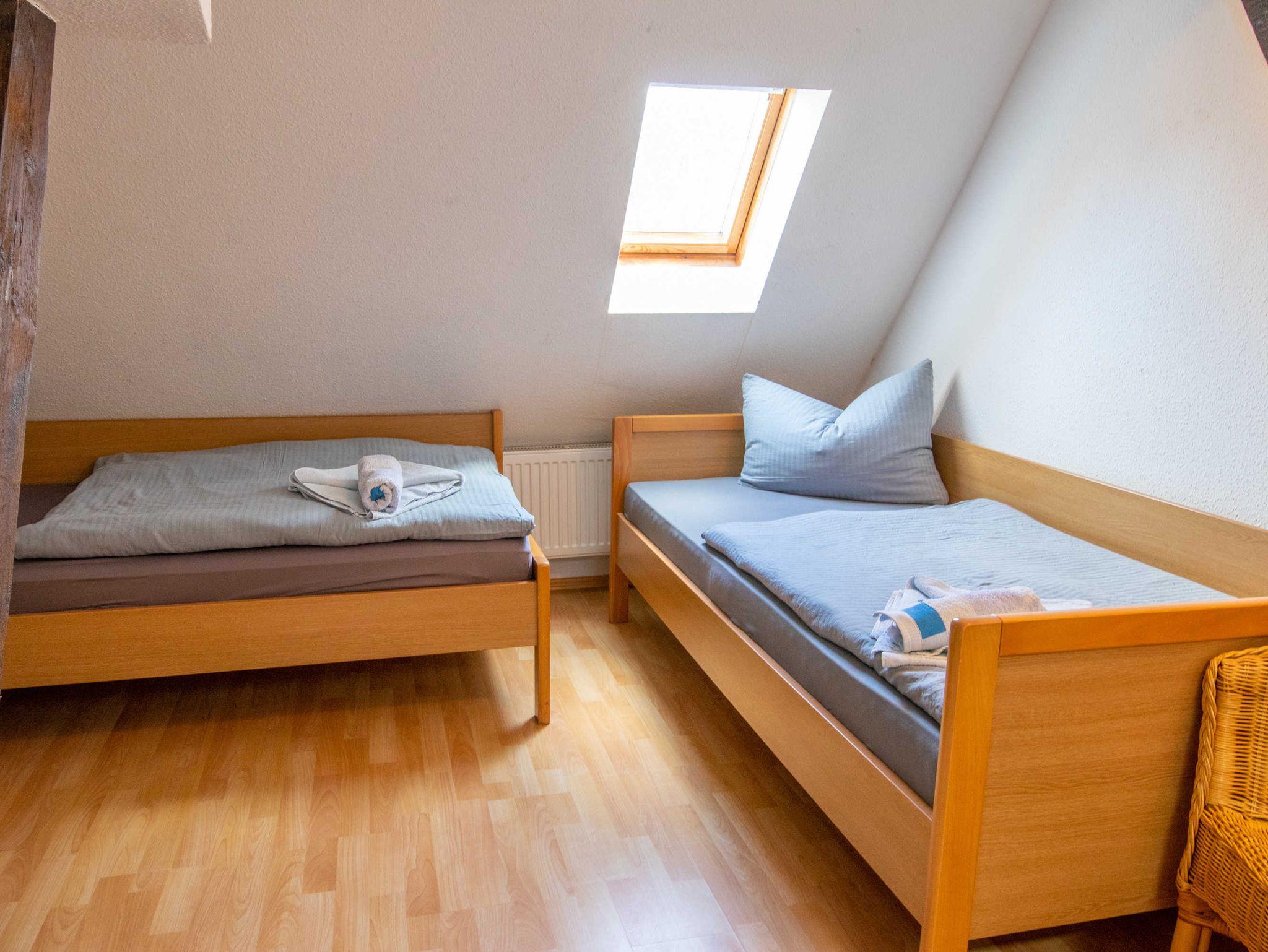 Die 65m² große 3-Raumwohnung für bis zu 5 Personen befindet sich im Dachgeschoss der Pension und ist über 2 Treppen zu erreichen.