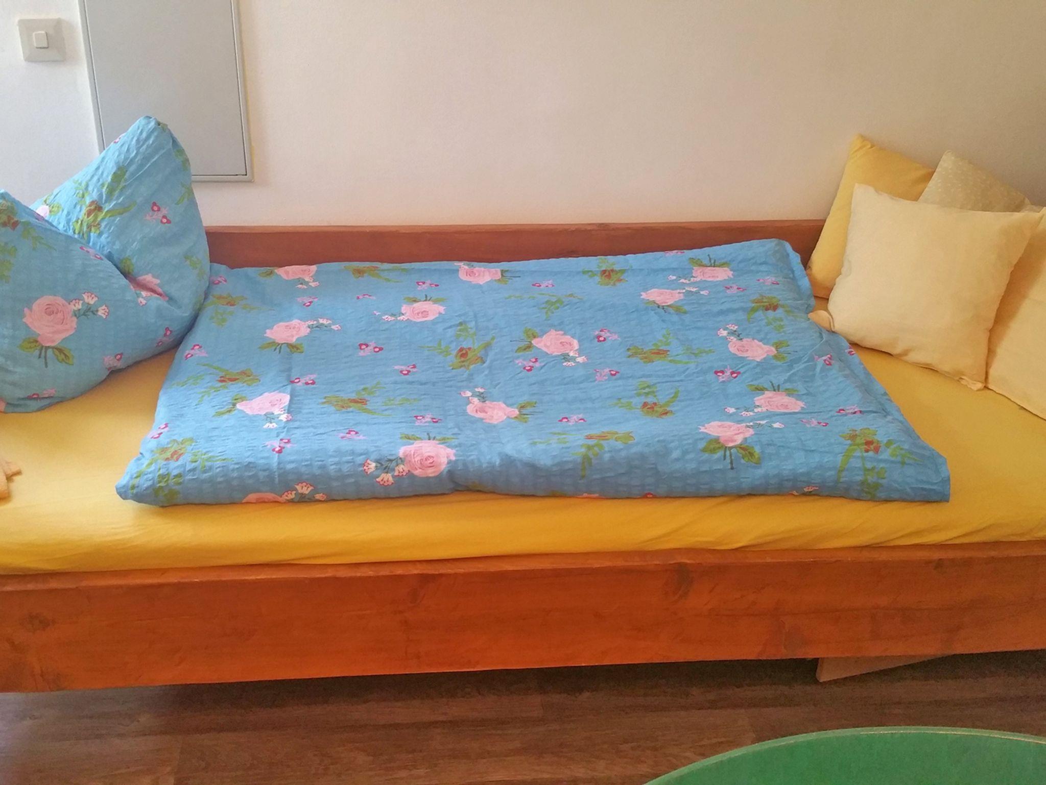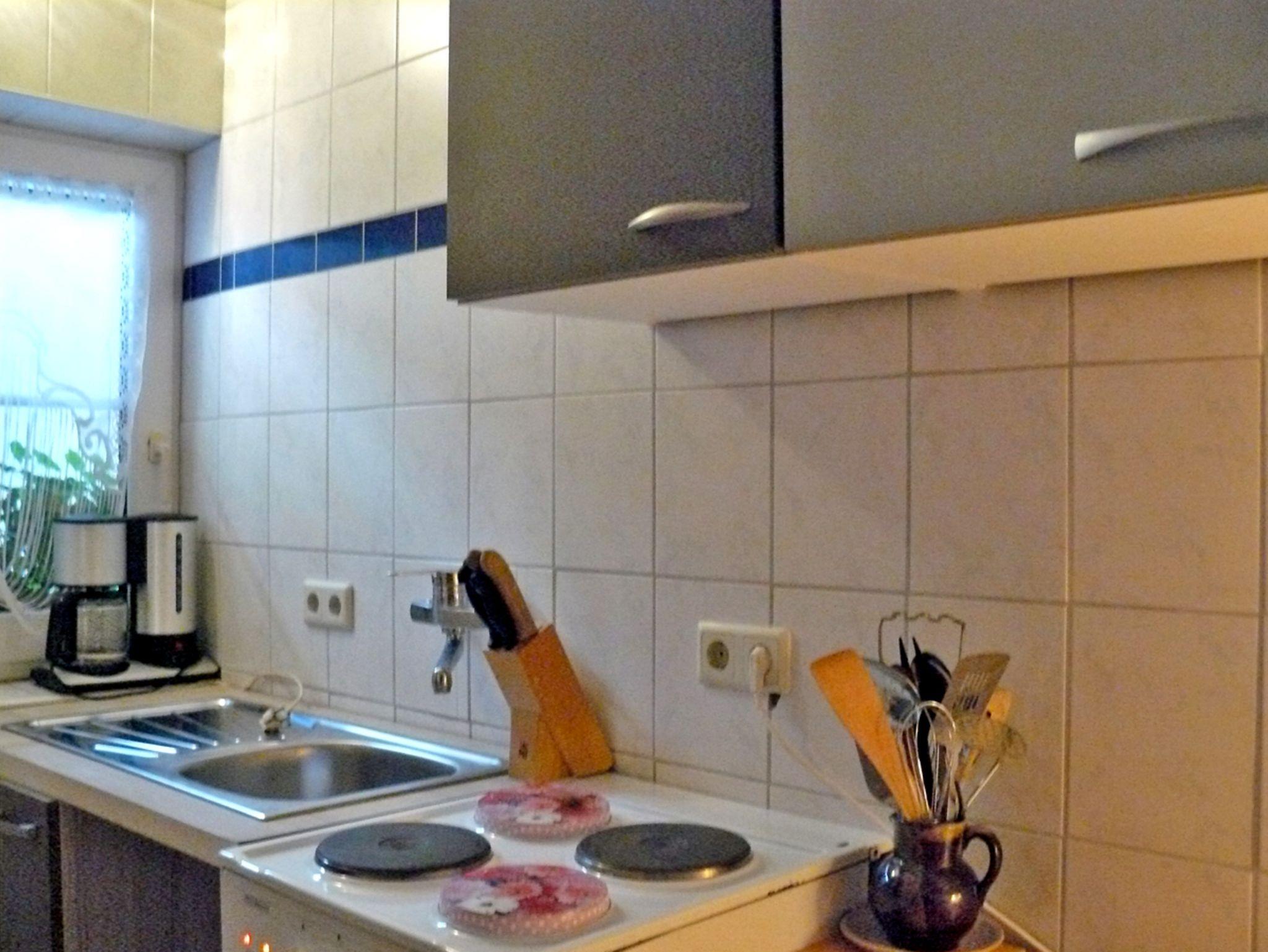 Die 10m² große Einraumwohnung mit voll ausgestatteter Küche und separatem Bad (Dusche/WC) verfügt über ein Einzelbett (90x200), Sitzgelegenheiten und Flachbildschirm-TV (Sat-TV). Die Ferienwohnung befindet sich im Erdgeschoss des Hauses und verfügt über einen separaten Eingang.