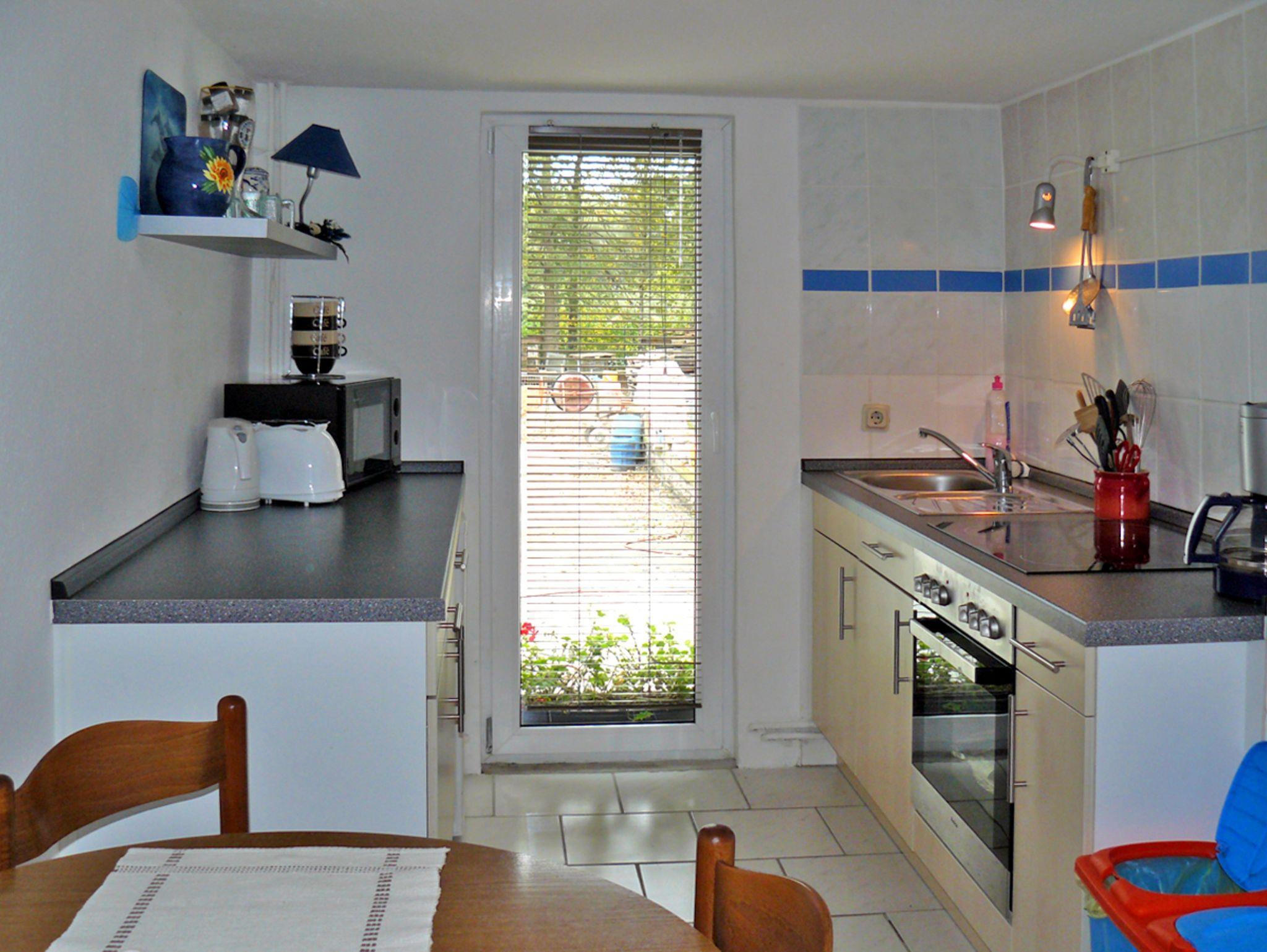 In der separaten Küche gibt es mit einer Essecke, Radio, Ceranherd mit Backofen, Kombi-Mikrowelle mit Grill, Toaster, Kaffeeautomat, Wasserkocher und großem Kühlschrank alles was das Herz begehrt. Für alle Gäste steht eine Gefriertruhe im Außenbereich zur Verfügung.