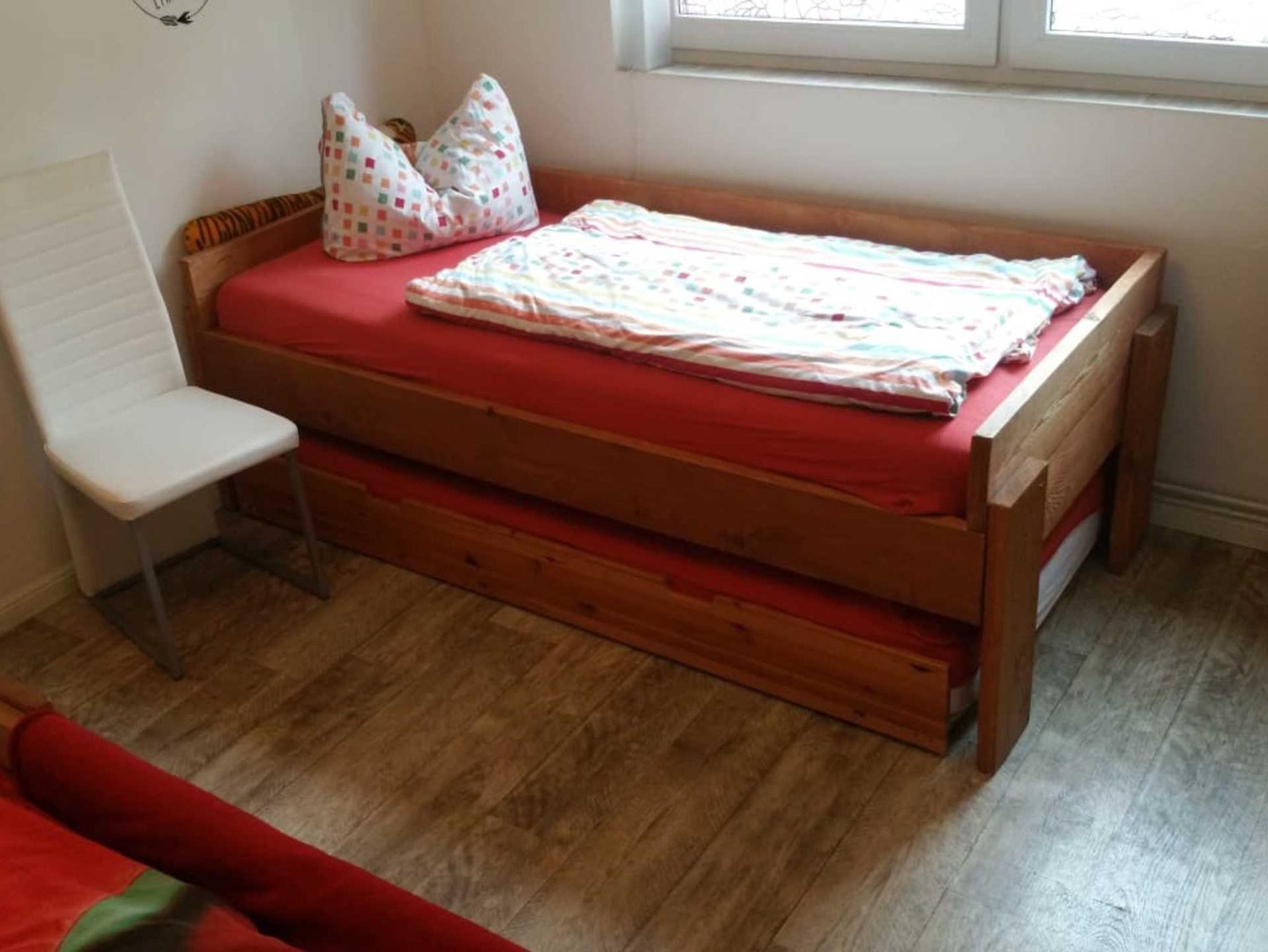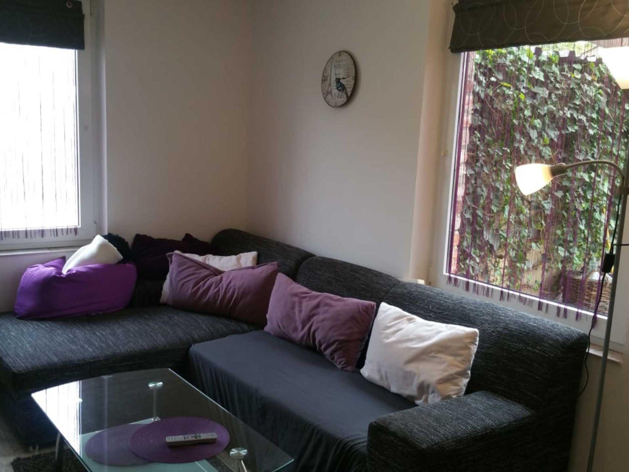 Die 45m² große Zweiraumwohnung mit voll ausgestatteter Küche und separatem Bad (Dusche/WC) verfügt über ein Schlafzimmer mit Doppelbett (180x200; getrennte Matratzen), Einzelbett (90x200; ausziehbar) und TV sowie ein Wohnzimmer mit Fußbodenheizung, Couch (120x200) als Aufbettung für 2 weitere Personen und Sat-TV. Die Ferienwohnung befindet sich im Erdgeschoss des Hauses und verfügt über einen gemeinsamen Flur mit der Ferienwohnung 2.