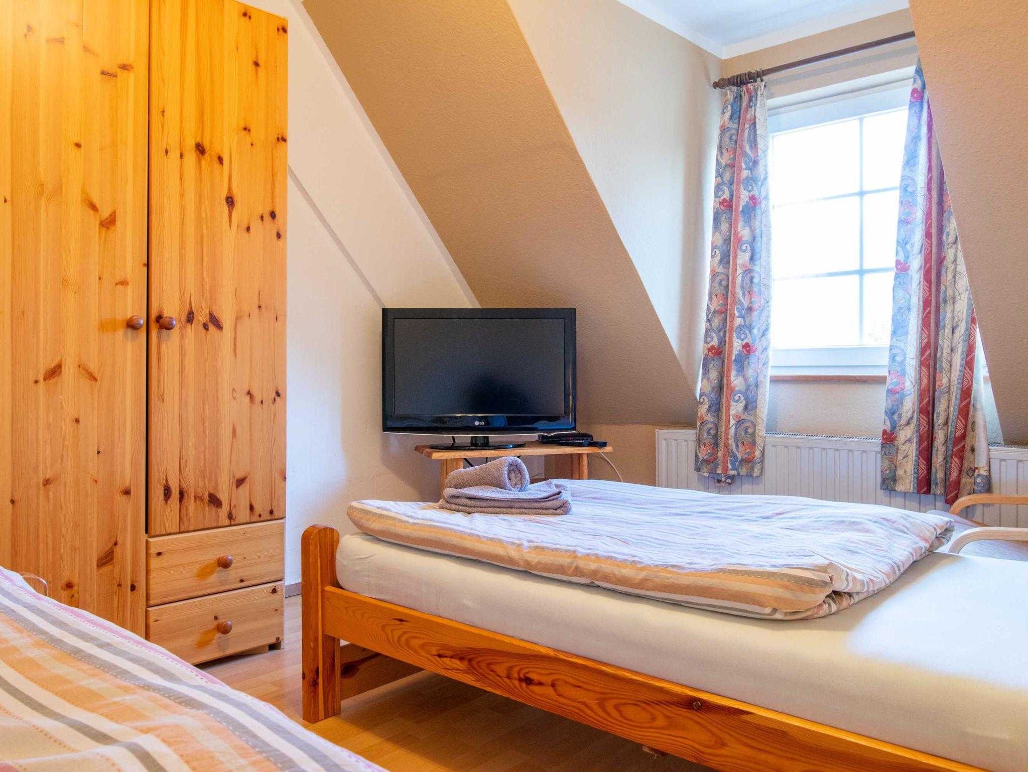 Das Doppelzimmer ist eingerichtet mit 2 Einzelbetten (90x200), außer in Zimmer 19, dort befindet sich ein Doppelbett (180x200), einem TV (teilweise Flachbild-TV), einer Sitzgelegenheit, Kleiderschrank, einem Bad mit Fenster, Dusche und WC sowie einem kleinen Vorflur.