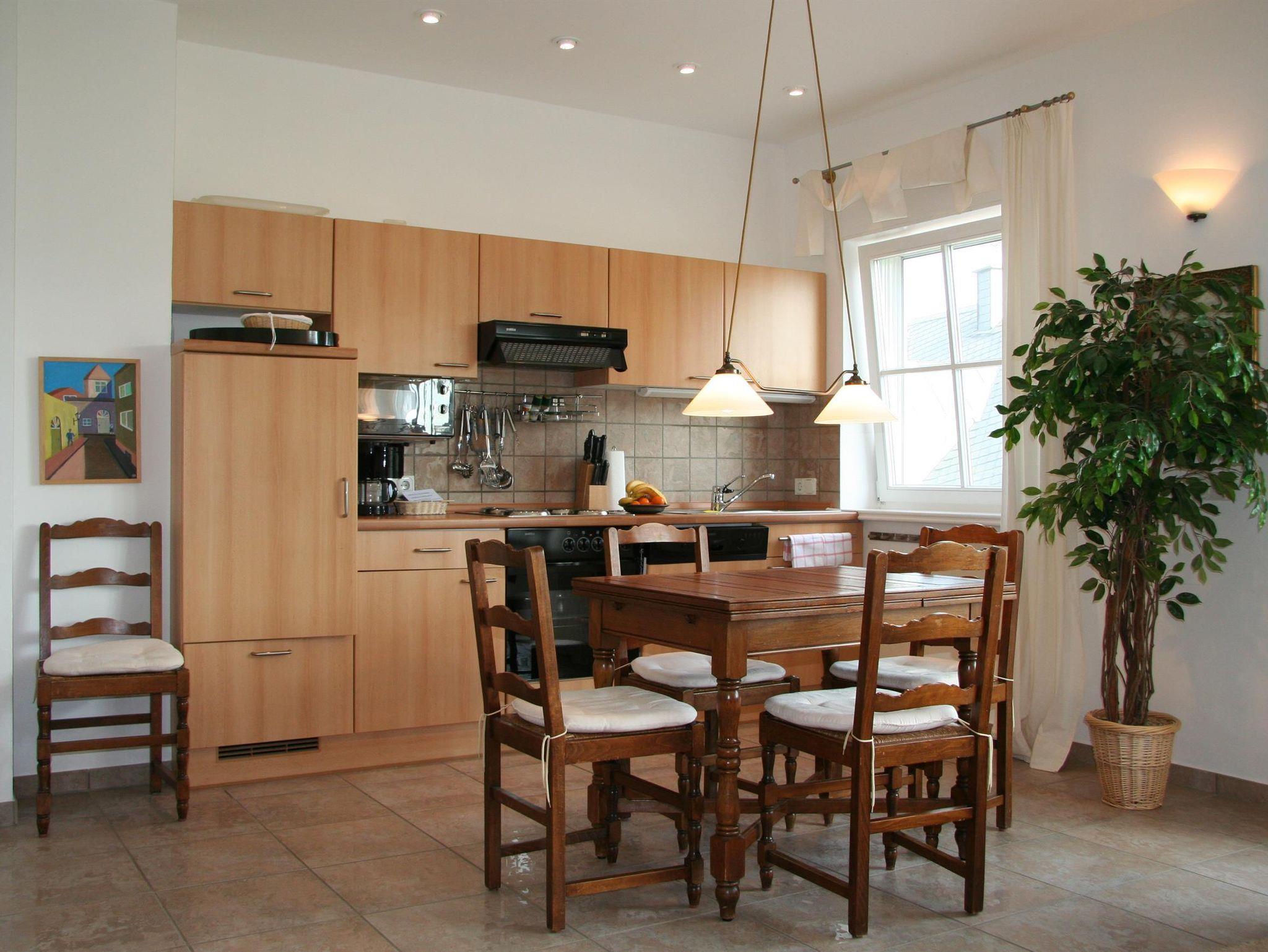 67 m² große Ferienwohnung (Nichtraucher) mit Terrasse bzw. Balkon, individuell und komfortabel gestaltet und eingerichtet, 2 separate Schlafzimmer, Bad mit Badewanne und separater Dusche, Fön, Sat-TV, Radio, CD-Player, Telefon, Kaminofen, Küche mit Backofen, Herd, Spülmaschine, Microwelle, Bettwäsche, Bademäntel und Handtücher inkl., bei Bedarf - nach Absprache und gegen Gebühr Waschmaschine und Trockner.