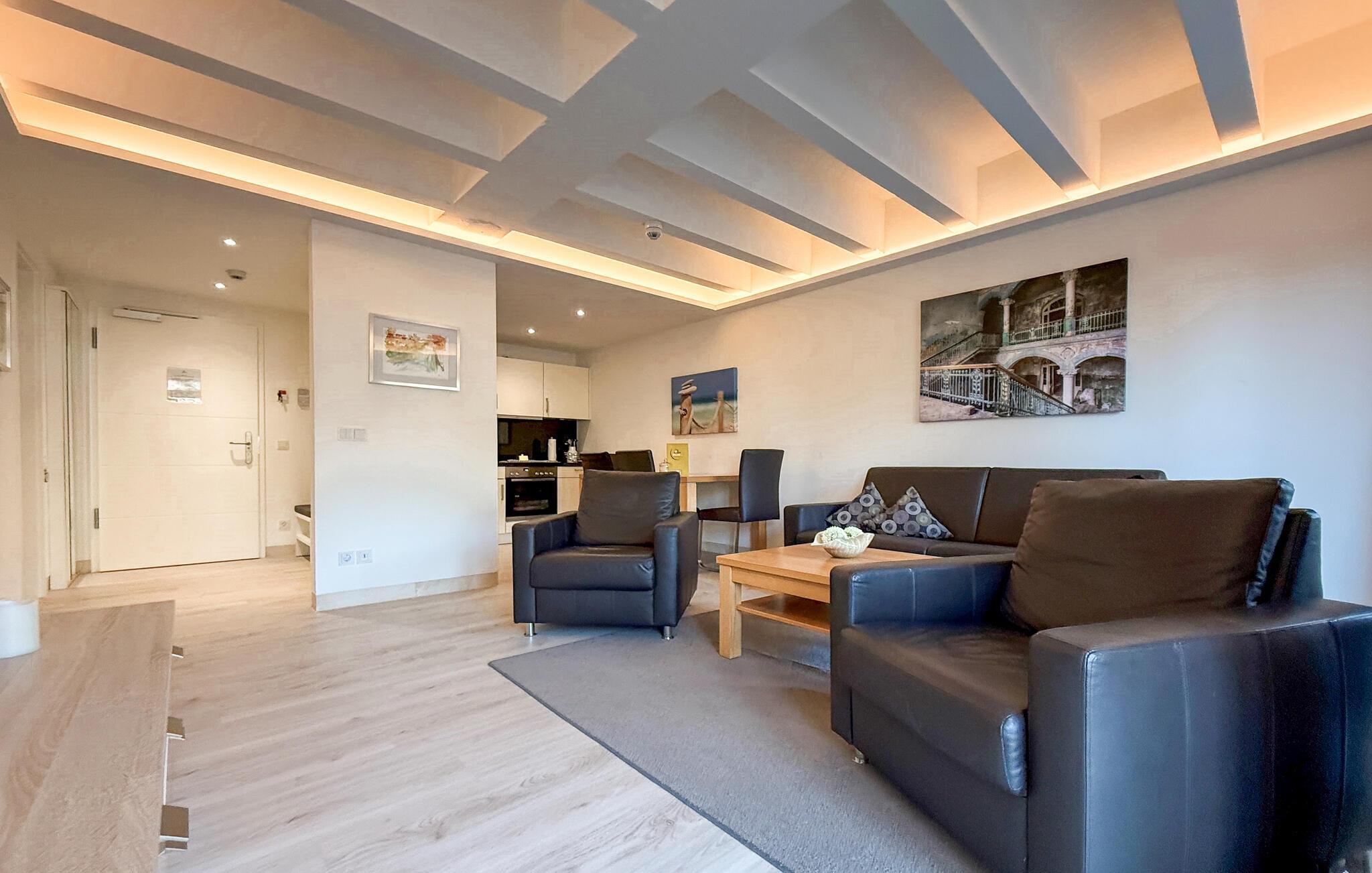 Denne ferielejlighed af typen Moon giver jer de bedste rammer til at slappe af og have det rart. De eksklusive møbler er udvalgt med stor omhu, og udtrykket virker elegant og harmonisk. Intet ved indretningen er overladt til tilfældighederne, og der er lagt vægt på et godt indeklima samt allergivenlige materialer. De tre meter til loftet gør rummet ekstra rart at opholde sig i.