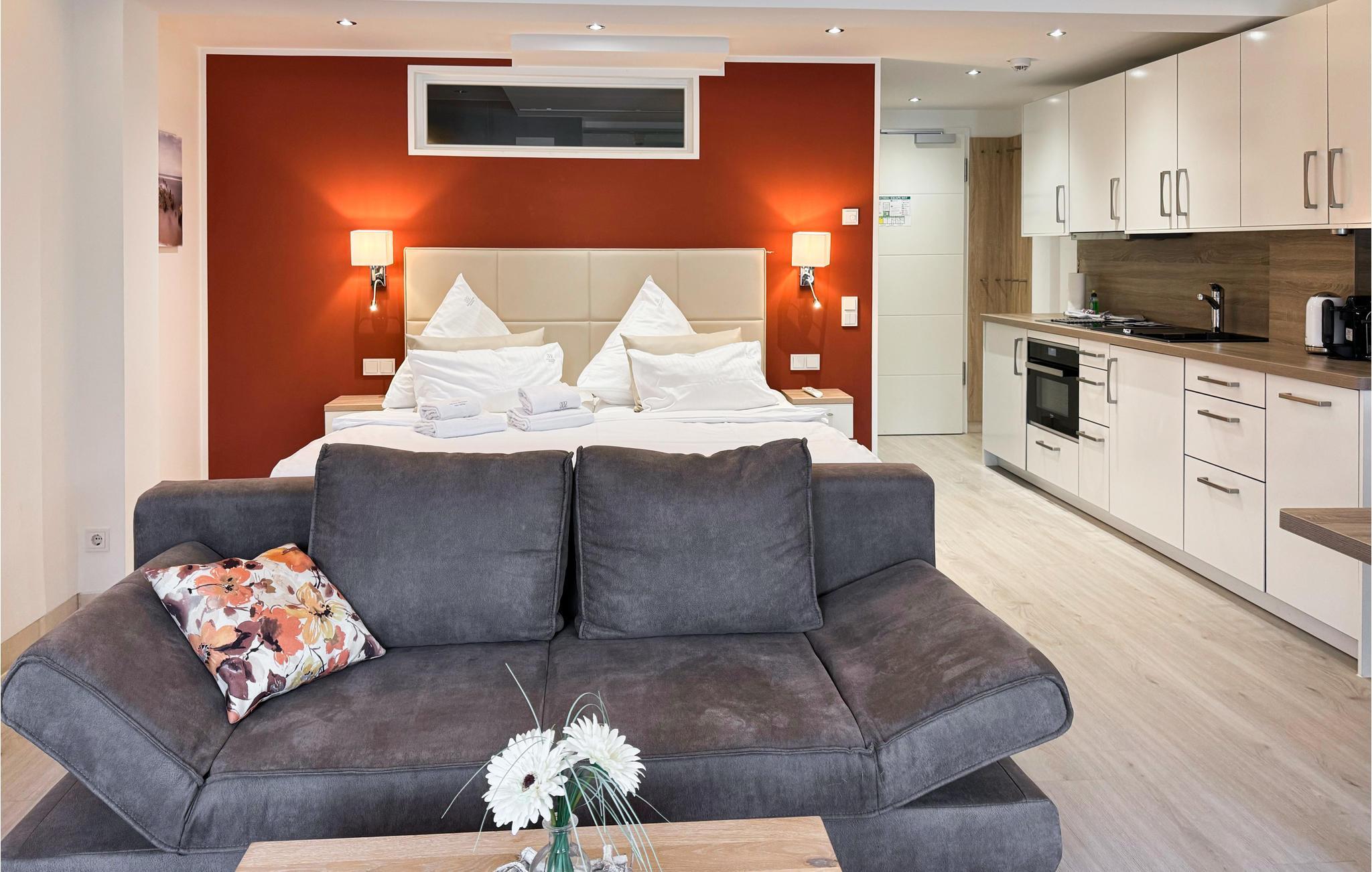 Den eksklusive etværelseslejlighed er det perfekte valg til en drømmedejlig ferie for to, på den skønne ferieø Rügen. Den lille lejlighed er raffineret indrettet, så her finder I alt hvad I behøver til en afslappet ferie: et praktisk køkkenhjørne samt spisebord, skønne boksmadrasser til at sove på og en hyggelig og lys stue og ikke mindst det bedste ved lejligheden: en skøn terrasse nær stranden (lejligheder i stuen) eller privat balkon med udsigt ud over haveanlægget, den smukke strandskov med krogede fyrretræer og bag den, den funklende Østersø (lejligheder på første sal).