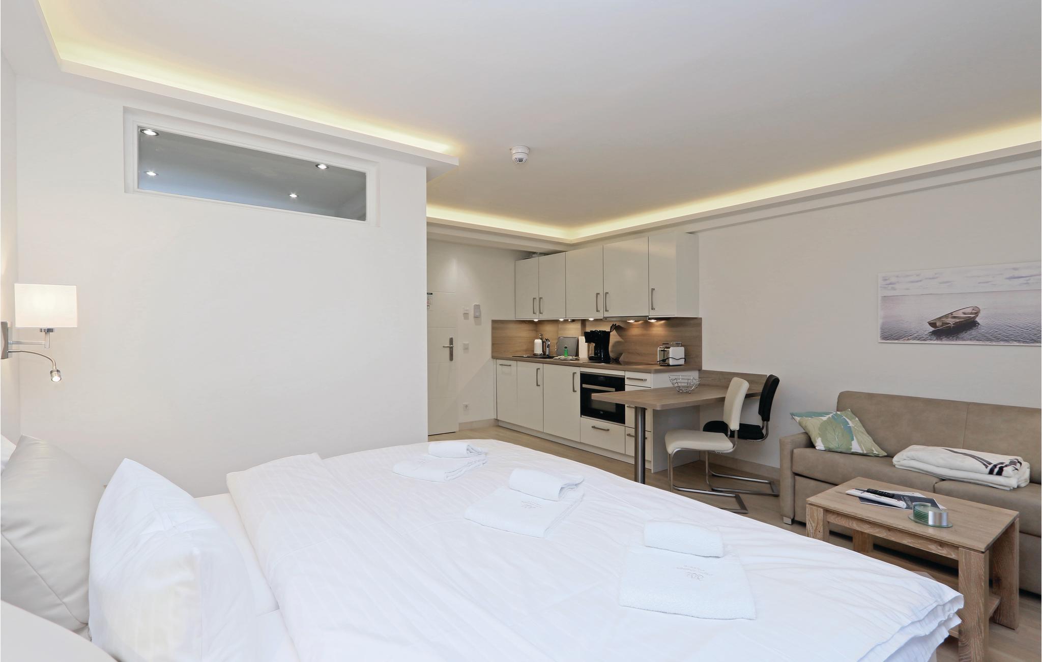 Denne lille etværelseslejlighed med stor charme er perfekt til ferie for to. Her på tredje sal er der skøn udsigt ud over parken, fyrreskoven og Østersøens glitrende bølger. Lejligheden er på 28 m² dejlige kvadratmeter, hvor I kan holde en skøn afslappet ferie meget nær havet. I kan selv lave mad i det lille køkken, men også forkæle jer selv i anlæggets cafeer og restauranter. Dog er det skønnest selv at sørge for morgenkaffen der kan nydes på lejlighedens lille balkon. De store vinduer lukker masser af sol og lys ind, den boxmadras sikrer ro om natten. Den bekvemme sofa forvandles hurtigt til et par gode sovemuligheder (1,40 cm x 2 m).