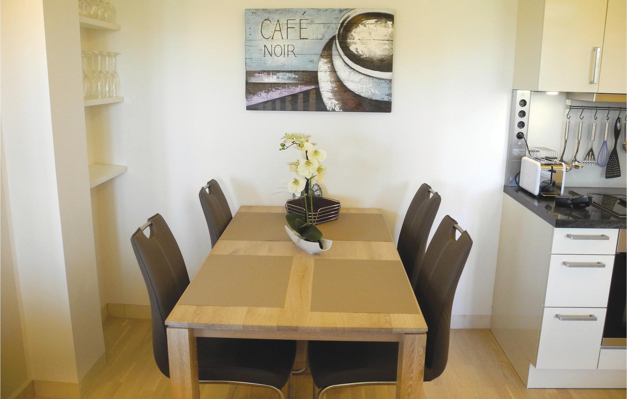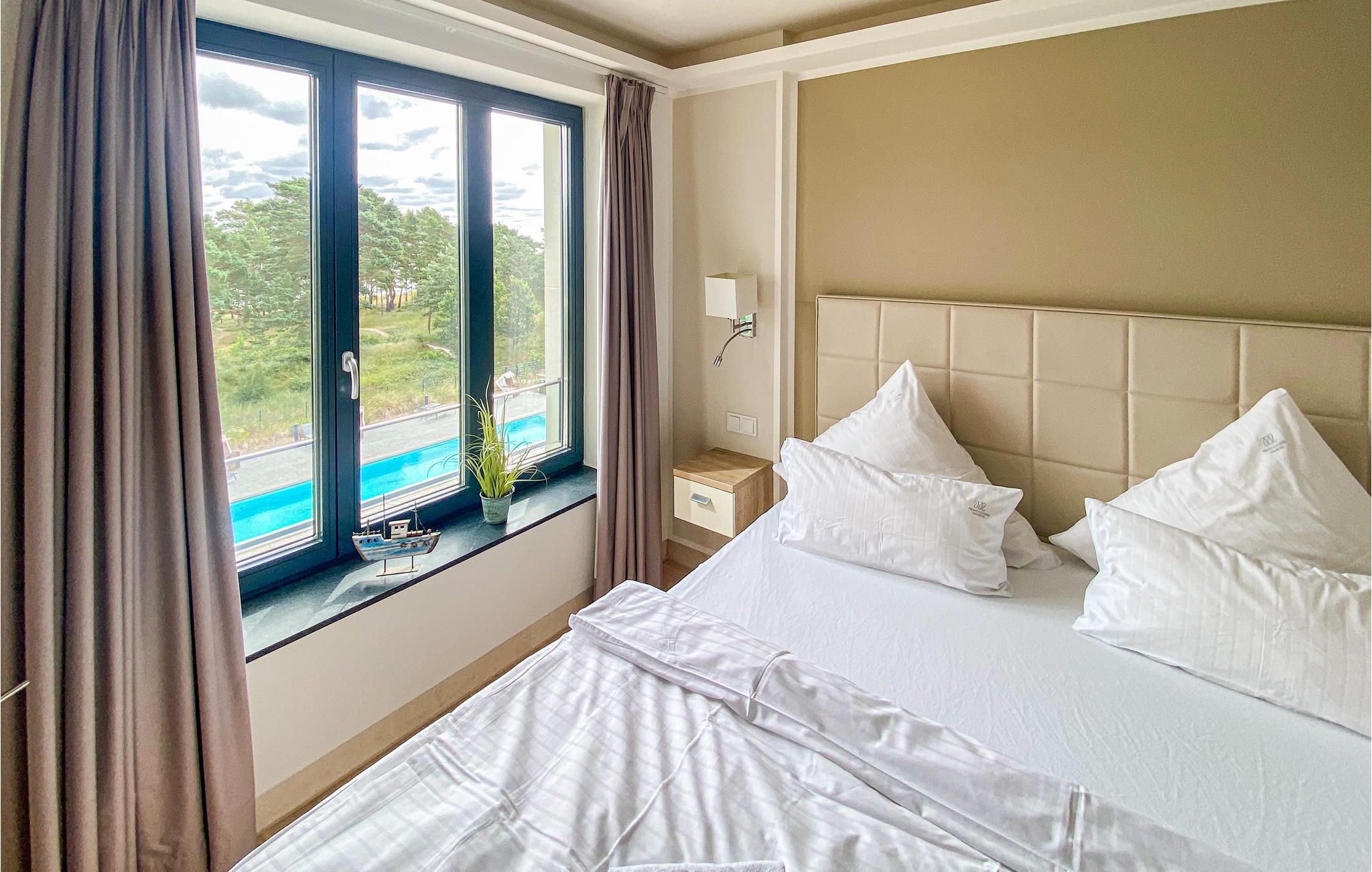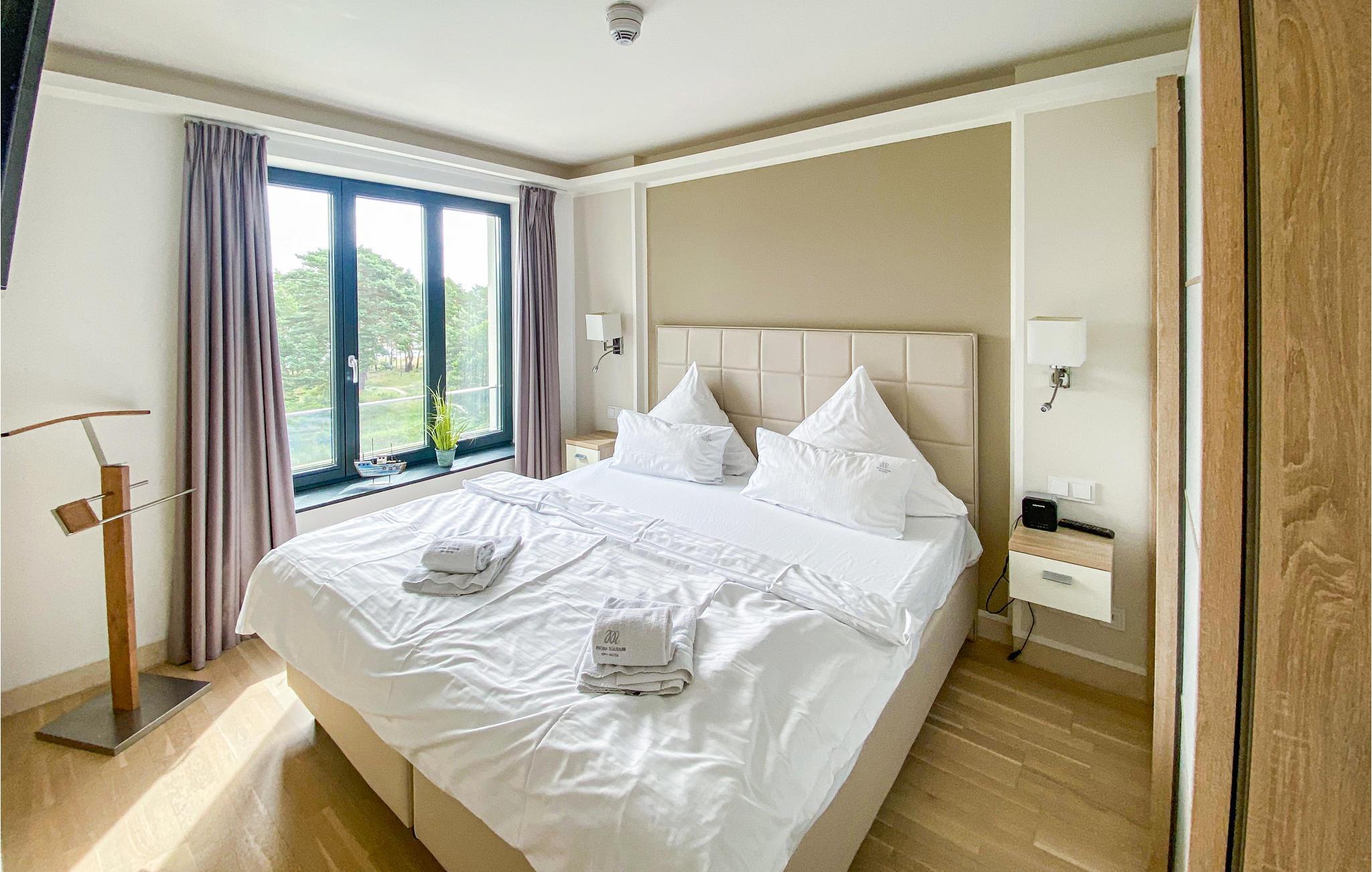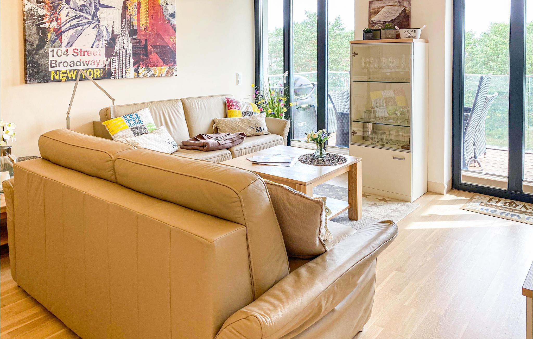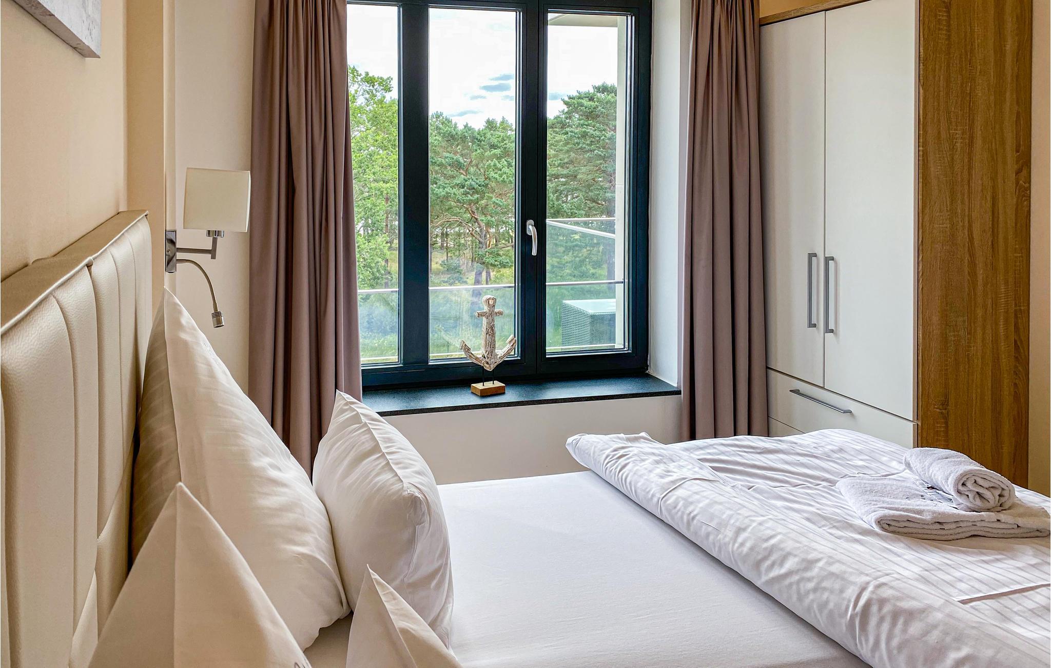 Denne ferielejlighed med to soveværelser er perfekt til en afslappet ferie. De eksklusive møbler er perfekt afstemt så de forener harmoni og elegance. Her er alt nøje gennemtænkt, intet er overladt til fantasien. Her er også tænkt på et sundt indendørs klima, så alle materialer er energivenlige. På altanen indbyder de komfortable havemøbler til solbad og udendørsliv, med en betagende udsigt ud over Østersøen helt til horisonten. I det topudstyrede køkken er der alt, I kan drømme om, så her er det dejligt at lave maden sammen, måske med en god kop kaffe fra NESPRESSO-cappuccino-maskinen (medbring selv jeres yndlings-kaffekapsler). I har et skur til rådighed på 2. sal, perfekt til opbevaring af strandudstyr, kufferter eller til at tørre tøj.
