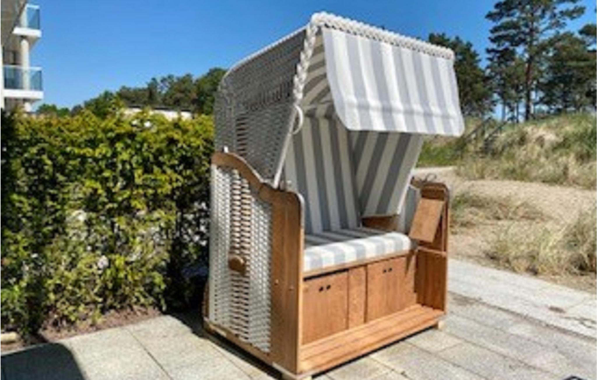 Kun nogle få skridt fra en af Rügens smukkeste strande ligger denne ferielejlighed med lækre kvalitetsløsninger, hvor I kan nyde et luksuiøst ophold året rundt. På den delvis overdækkede terrasse kan I slappe helt af eller nyde jeres måltider sammen. Havemøbler, en solstol og en parasol står til rådighed.