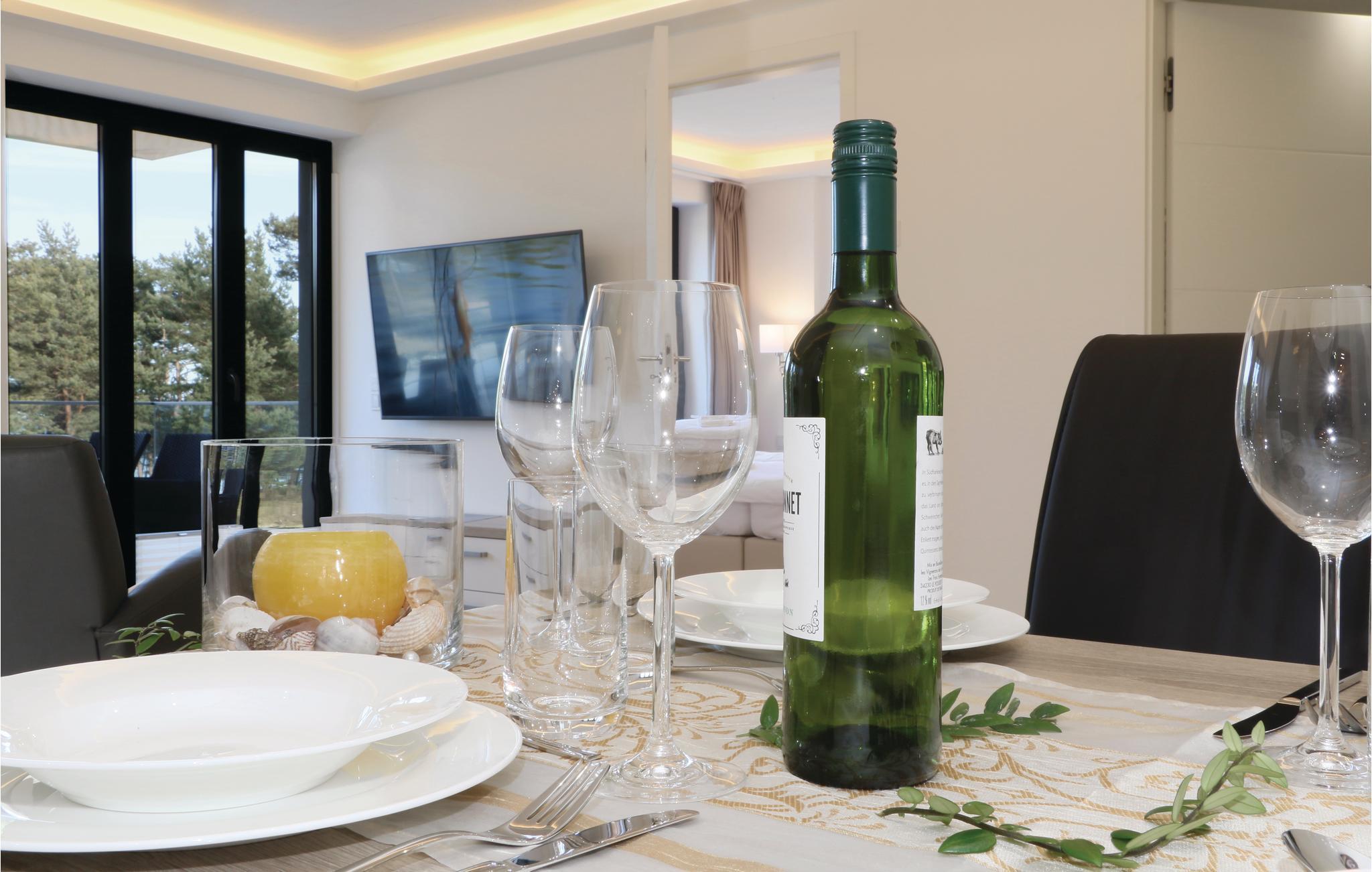 Lejligheden Eden, lever godt op til sit navn – her kan I holde en paradisisk afslappet ferie. Den er på 70 m² , dejligt rummelig til en ferie for hele familien. Til lejligheden hører en 10 m² stor altan, hvor I kan sidde og lade blikket hvile på fyrreskoven og helt ud over Østersøen. Her kan Ifølge solopgangen, mens morgenkaffen nydes. De bekvemme havemøbler indbyder til fordybelse i en god bog, solbad, fælles måltider under åben himmel og bare en god lang snak om alt og intet. I soveværelserne er der tv. Det er nemt at lave mad i det fuldt udstyrede køkken, men I kan også spise i en af cafeerne og restauranterne der ligger i anlægget.