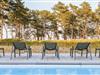 Begge balkoner er vendt mod øst, med udsigt over poolen og fyrreskoven og med mulighed for at høre bølgerne slå mod stranden.
