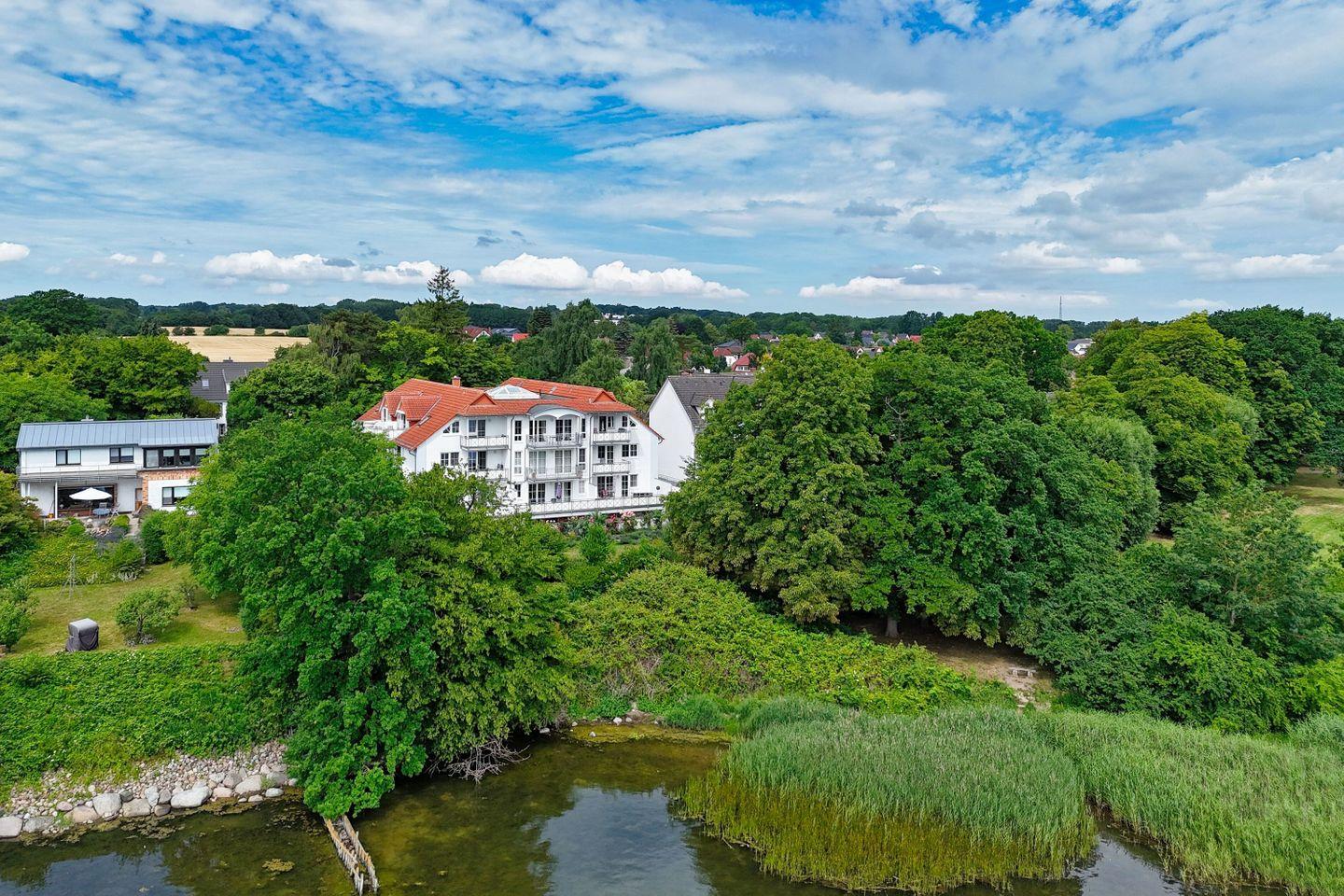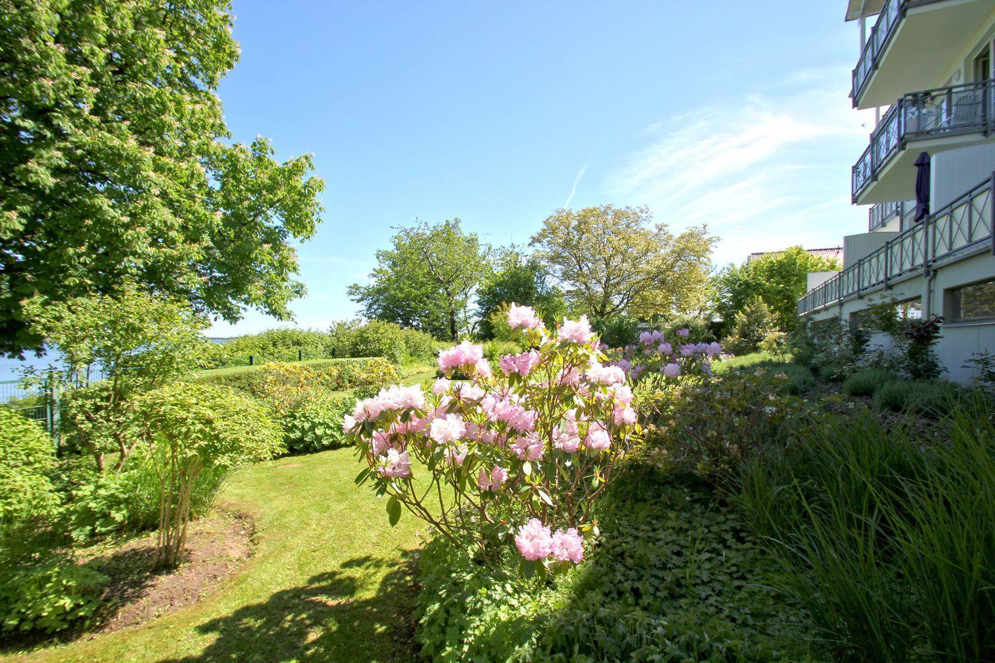 Das Haus liegt an einer ruhigen Nebenstraße und verfügt über einen schönen Garten, der einen traumhaften Blick über den Bodden und auf die Insel Vilm bietet. Die Entfernung zum Bodden beträgt 50 m und man hat einen direkten Wasserzugang von der Villa aus.Hier können Sie das rege Treiben auf dem Wasser beobachten.