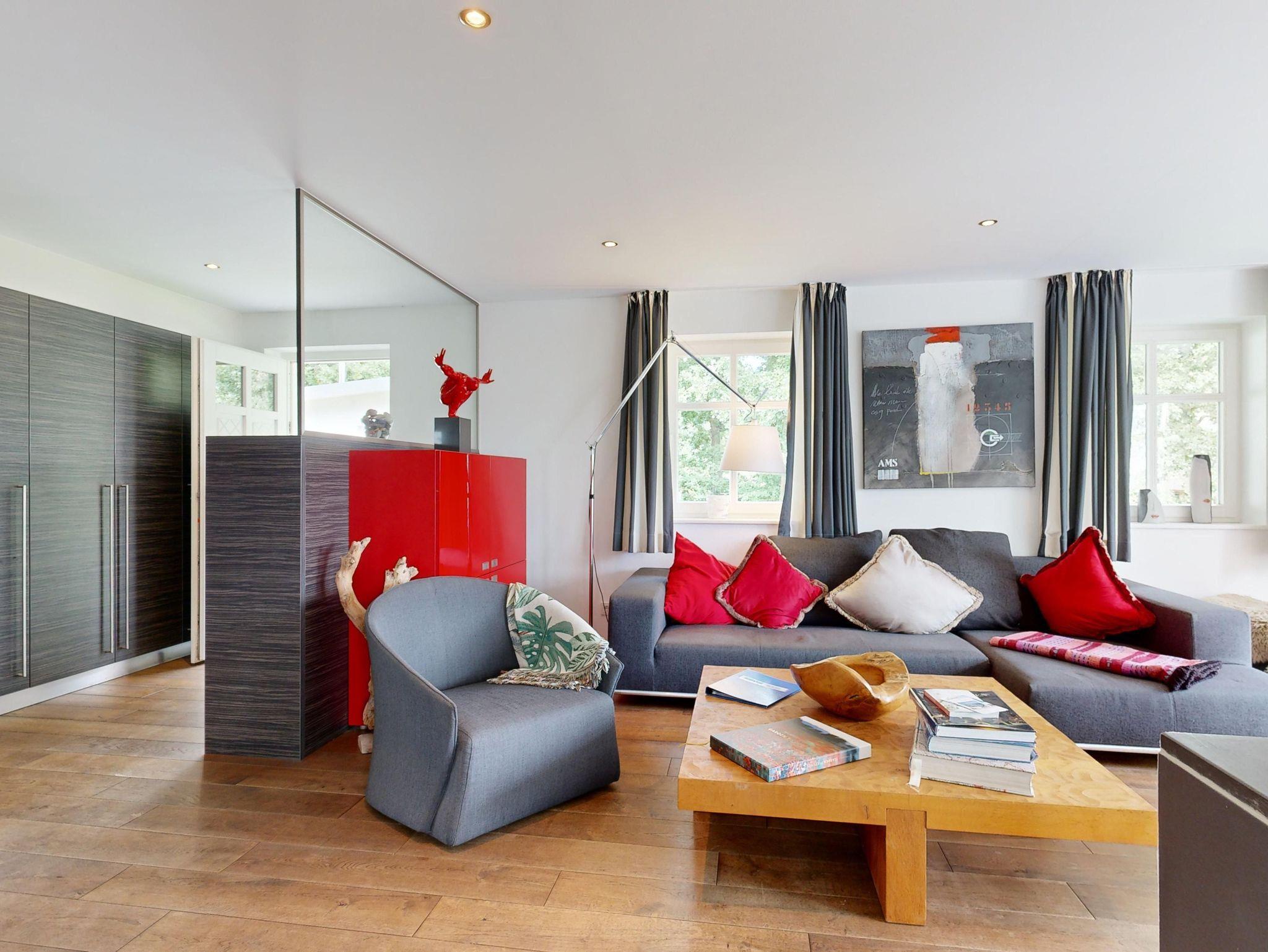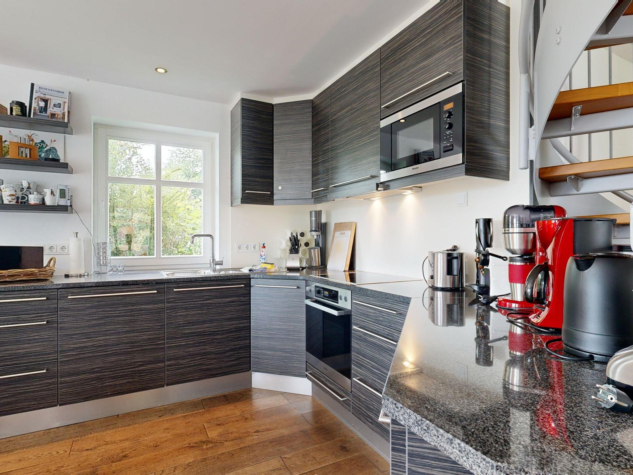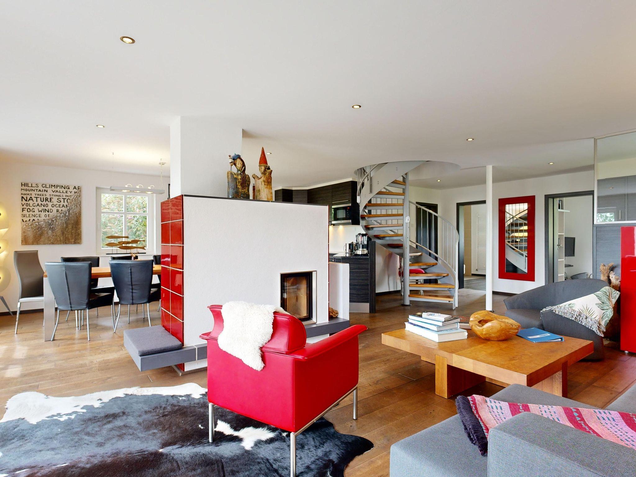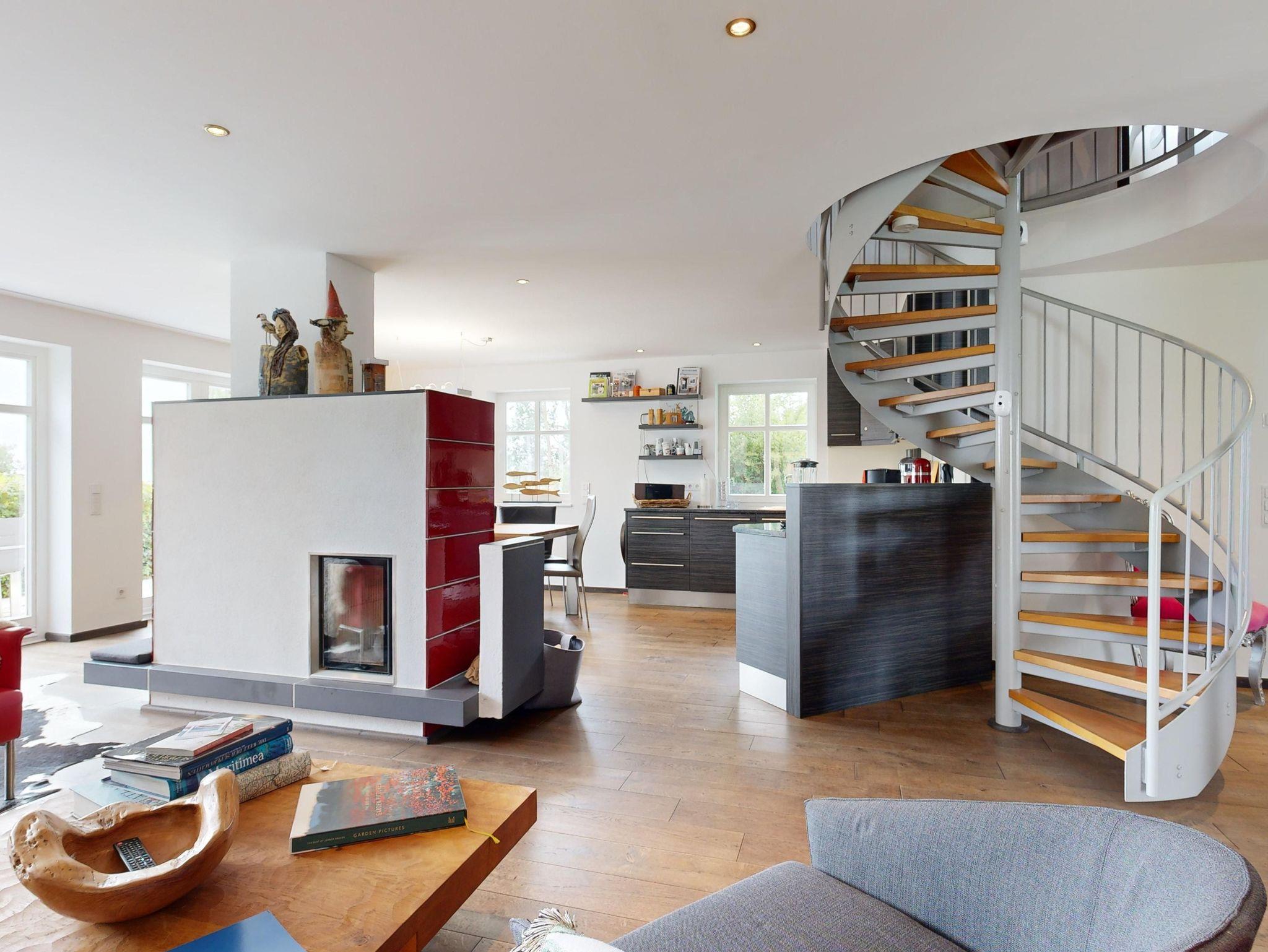 Großer, heller Wohnbereich (58 m²) mit Couchecke, Sat-TV, Kamin, Esstisch und Küchenbereich (Spülmaschine, Herd, Gefrierkombi, Wasserkocher, Kaffeemaschine, Toaster)
