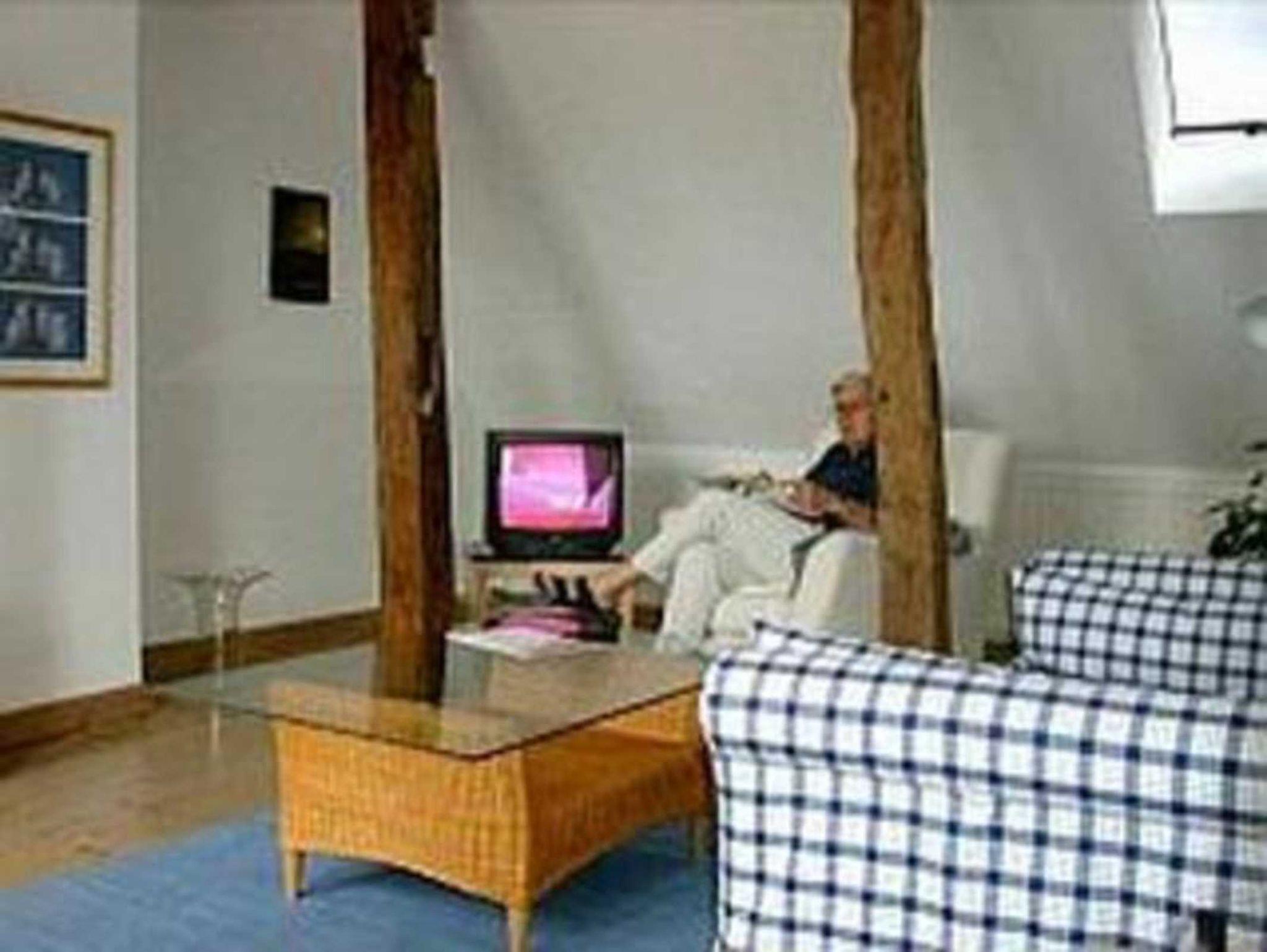 Die Ferienwohnung befindet sich im 2 OG. unseres Gutshauses und verfügt über einen Wohnraum und ein sep. Schlafzimmer, einen Flur sowie über ein Bad mit Badewanne.