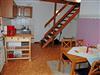 Im Erdgeschoss befindet sich der Eingangsbereich sowie eine offene Küche mit Essecke, Esstisch, Cerankochfeld-Herd, Backofen, Mikrowelle, Kühlschrank mit Gefrierfach, Kaffeemaschine, Toaster und Wasserkocher. Auch im Erdgeschoss befinden sich das Bad und das separate Schlafzimmer mit einem bequemen Doppelbett mit Nachtschränken, Leselampen und ein Kleiderschrank sowie ein zweites Flachbild-TV-Gerät. Ein kleines Kinderreisebett und ein Hochstuhl können auf Wunsch kostenlos zur Verfügung gestellt werden.
