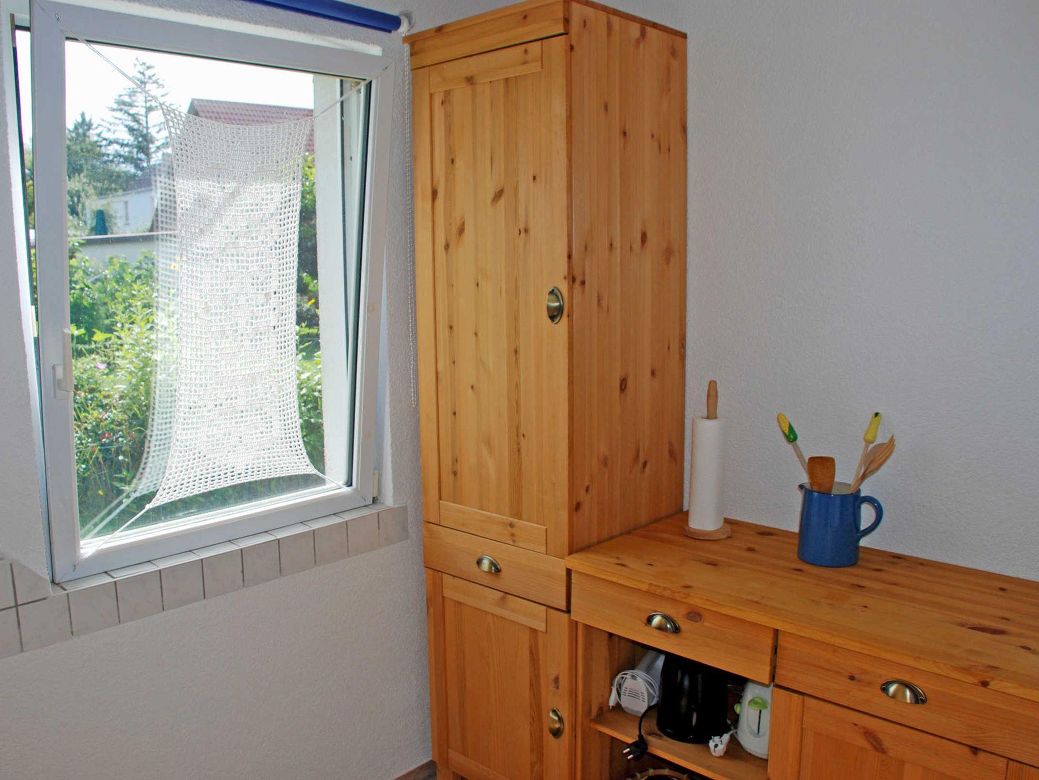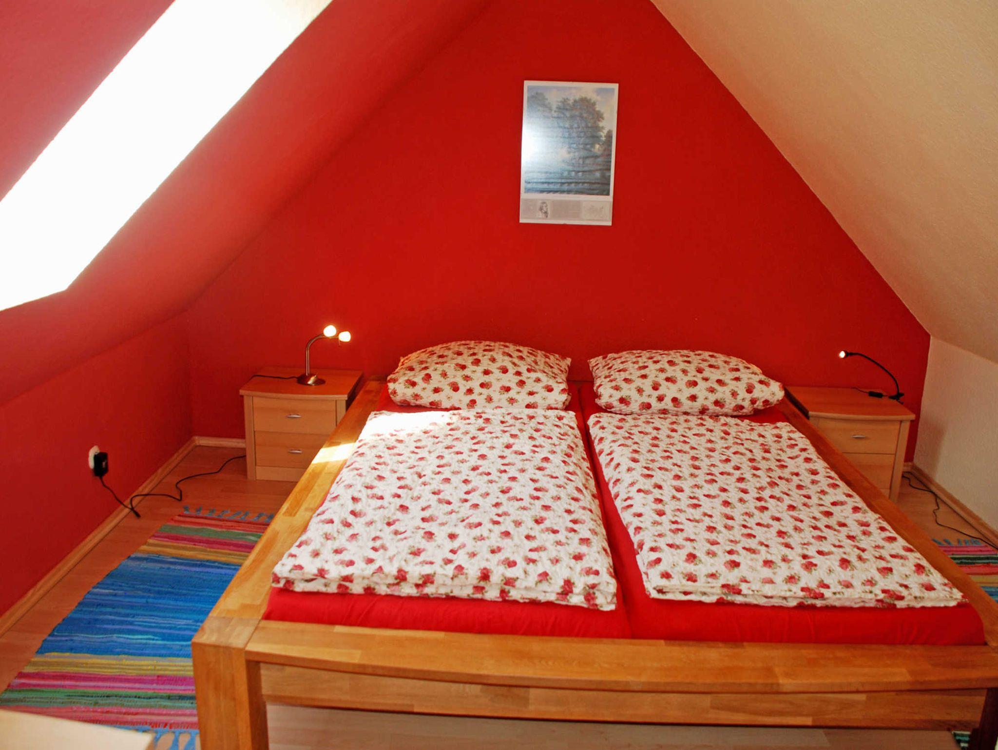Das Ferienhaus verfügt über einen separaten Eingang. Es ist ca. 55 qm groß, hat Platz für maximal 4 Gäste und wurde im letzten Winter liebevoll neu eingerichtet und mit einem Kachelofen versehen, der an kalten Tagen das ganze Haus heizen kann. WLAN-Internetzugang steht für Sie kostenlos zur Verfügung. (Ausbaumaßnahmen und damit verbundene Unterbrechungen führen leider dazu dass das WLAN-Netz nur eingeschränkt nutzbar ist. Bitte buchen Sie NICHT, wenn das für Sie ein großes Problem darstellt.) Im Wohnraum befinden sich eine bequeme Sitzcouch mit Tisch und ein modernes Flachbild-TV-Gerät. Hier stehen auch ein Esstisch mit Stühlen sowie der Kachelofen für kuschlige Abende. Die offene - aber räumlich getrennte Küche ist mit Glaskeramik-Induktionskochfeld mit 2 Kochfeldern, Minibackofen, Wasserkocher, Kaffeemaschine, Toaster und Kühlschrank mit Gefrierfach komplett ausgestattet.
