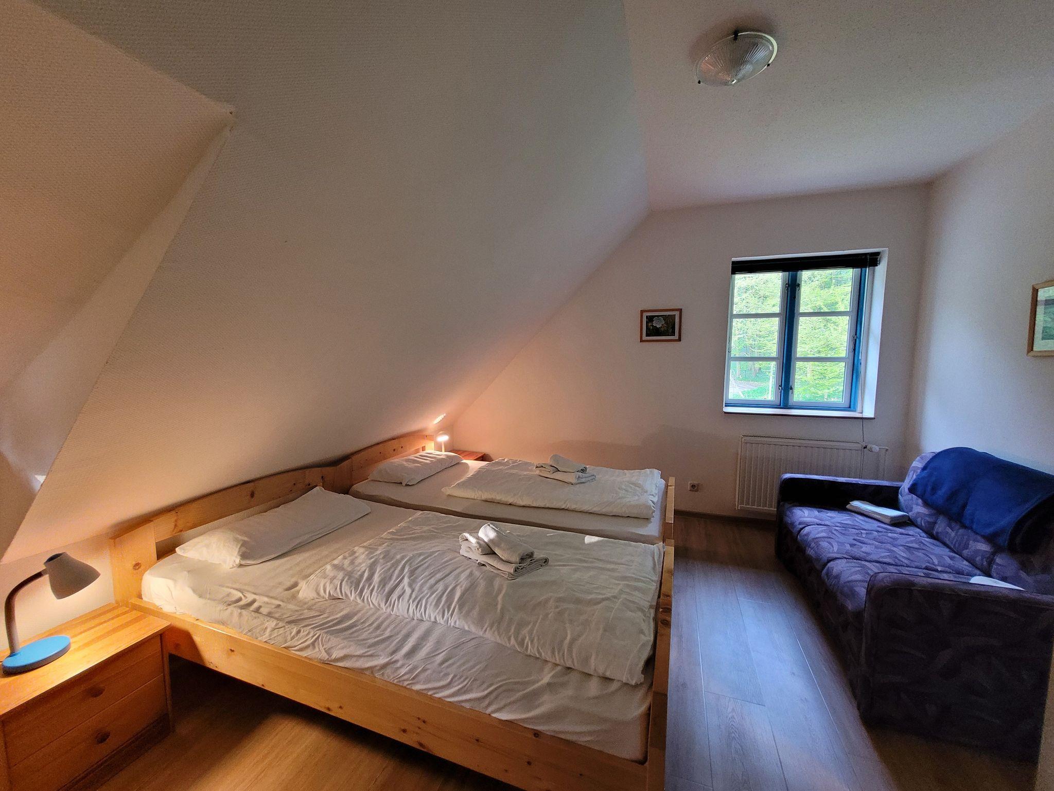 • ein weiteres Schlafzimmer mit zwei Einzelbetten (zusammenschiebbar) sowie einem Kleiderschrank