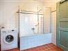 • ein Badezimmer mit Badewanne und Waschmaschine sowie Trockner