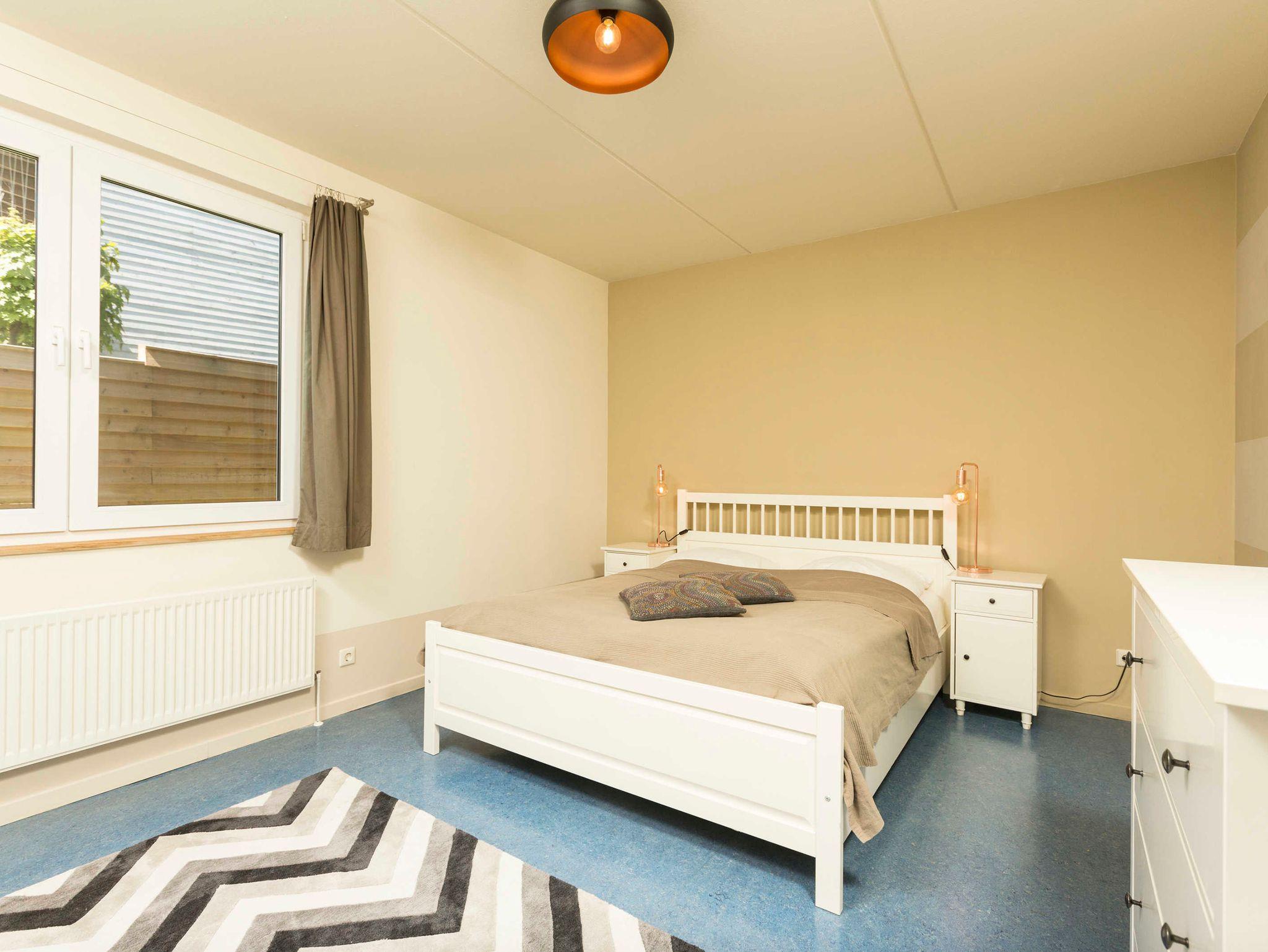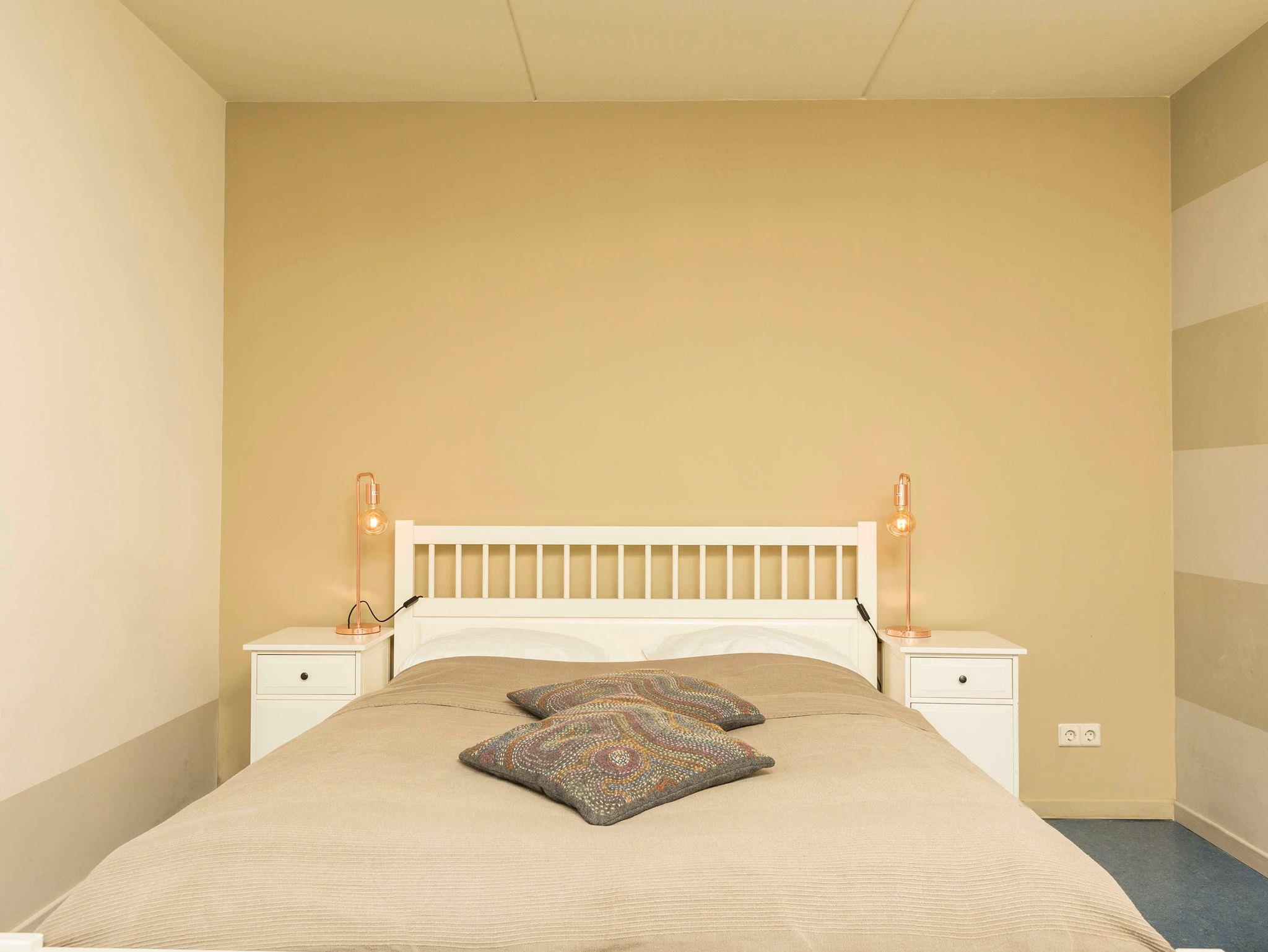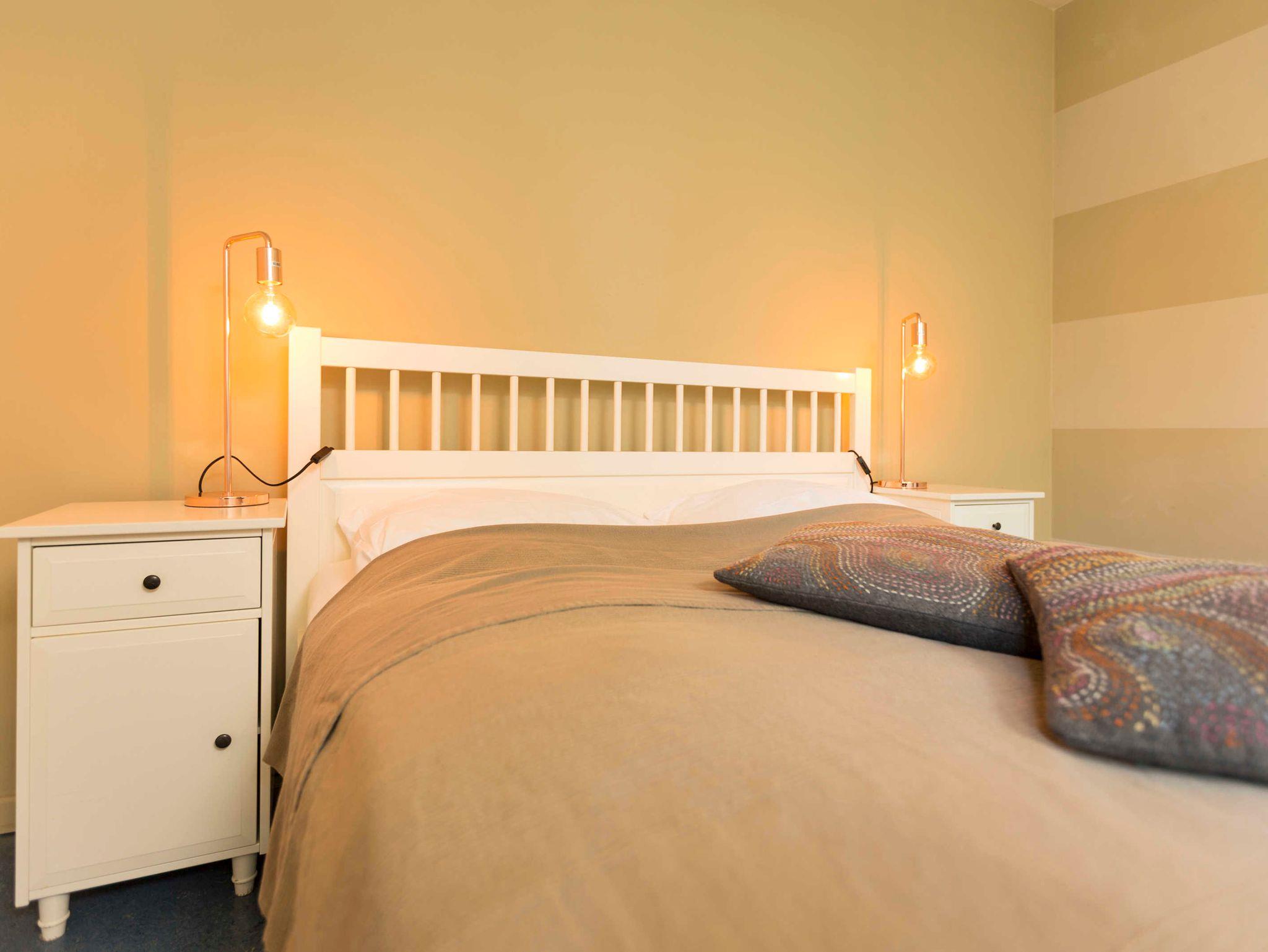 Ein Schlafraum mit Doppelbett und ein Wohnraum mit Aufbettung für zwei Personen (Schlafcouch),