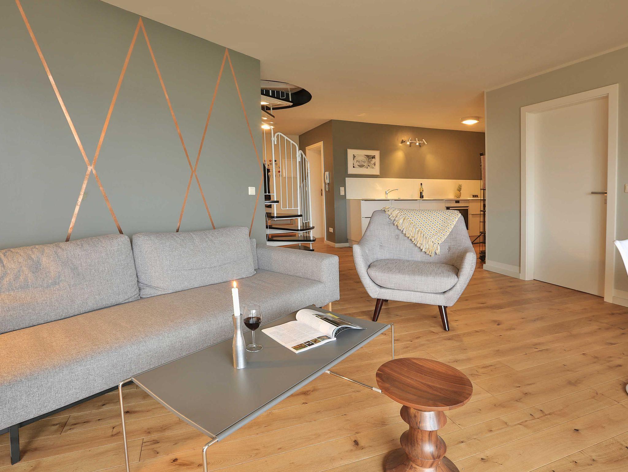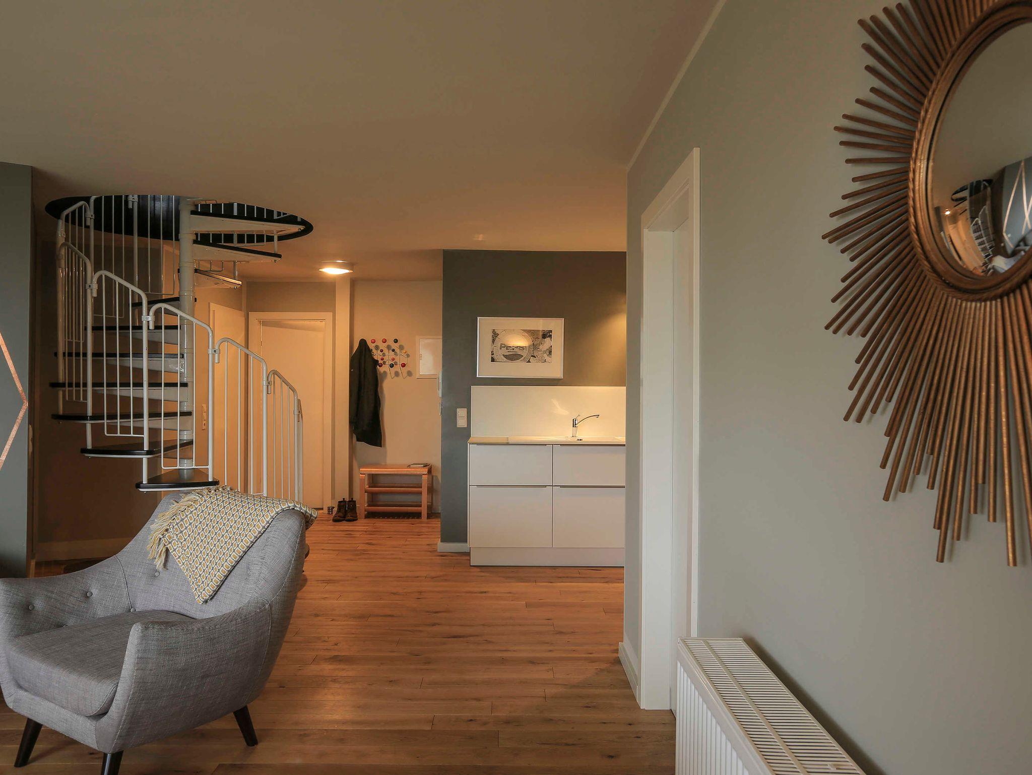 3 Räume auf 2 Etagen – Küche und Wohnraum, 2 Schlafräume mit Doppel betten,