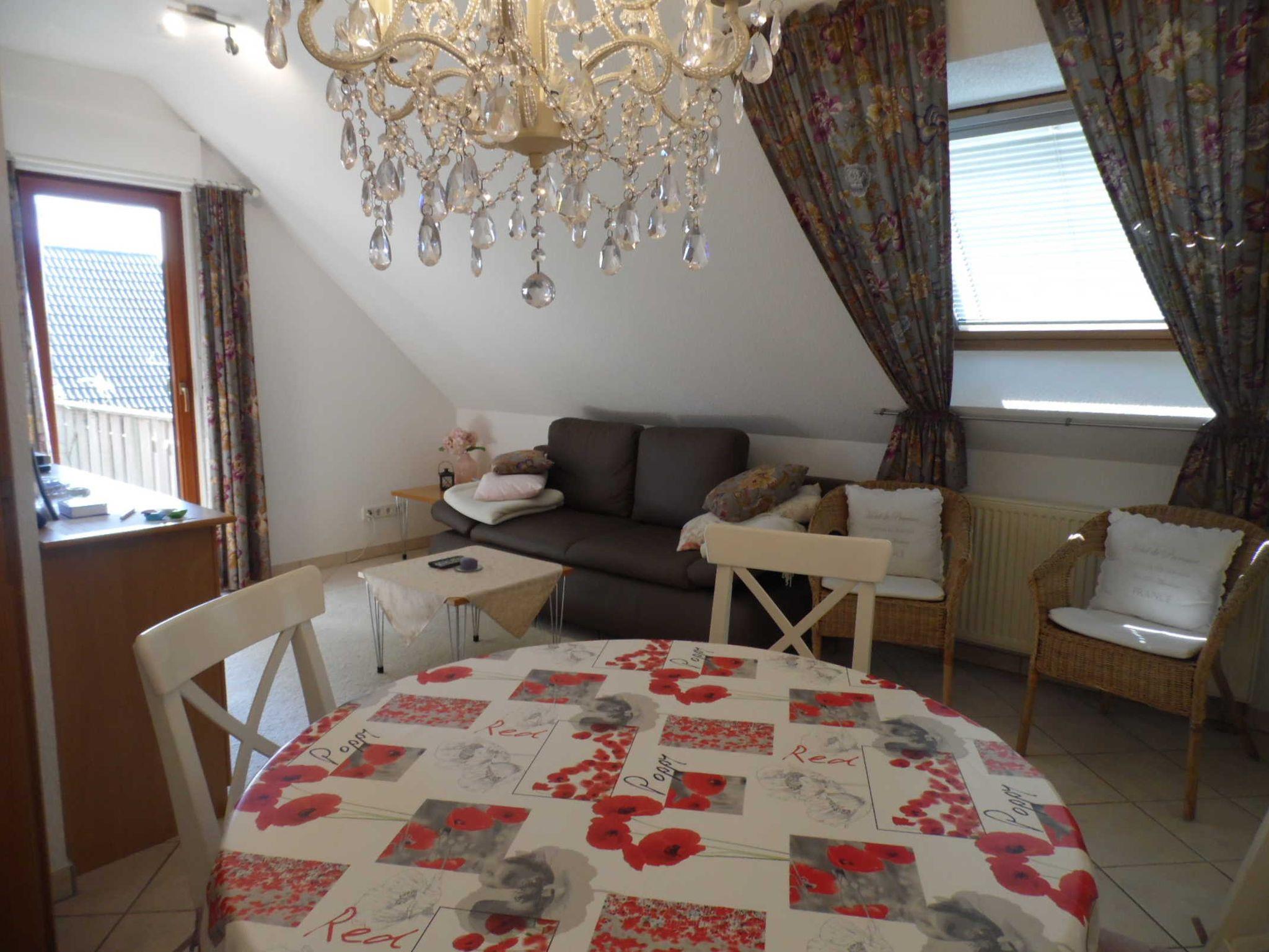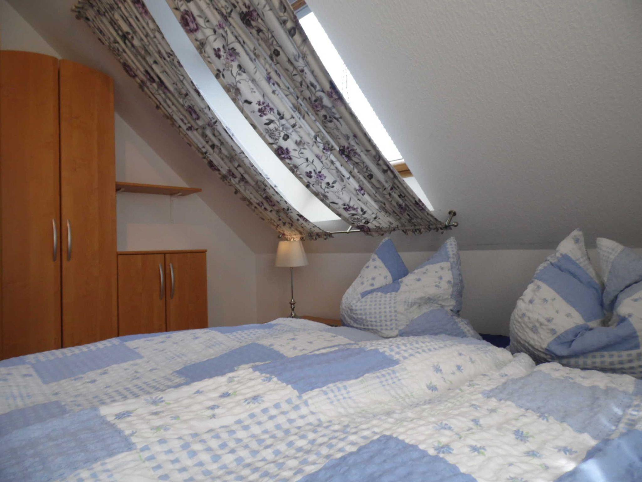 Unsere Ferienwohnung 01 ist ca. 50 qm groß und bietet für max. 2 Erwachsene sowie 2 Kinder bis 17 Jahren ausreichend Platz. Die liebevoll und komfortabel eingerichtete Ferienwohnung hat einen eigenen Eingangsbereich und liegt im Obergeschoss. Im separaten Schlafzimmer befindet sich ein bequemem Doppelbett (1,60 m breit) mit elektrisch verstellbaren Matratzen, Nachttischlampen und Kleiderschrank. Im Wohn- Schlafraum steht eine Sitzgruppe mit einer bequemen Schlafcouch für zwei Gäste, Tisch und Sessel, ein Esstisch mit Stühlen und ein Schrank mit SAT-TV ? Gerät, Radio, DVD-Player.
