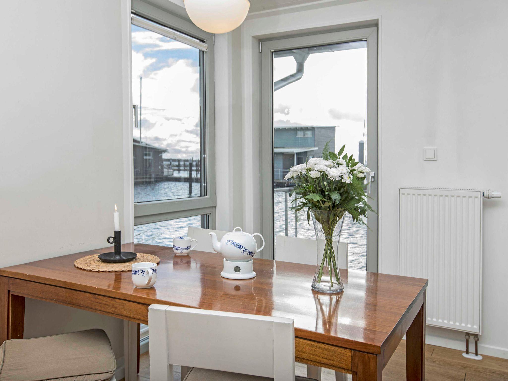 Ein Schlafraum mit Doppelbett, ein Wohnraum mit Aufbettung für zwei Personen (Schlafcouch). SAT-TV, Musikanlage, Küchenzeile, Dusche, WC, möblierte Terrasse, Bootsliegeplatz inkl.