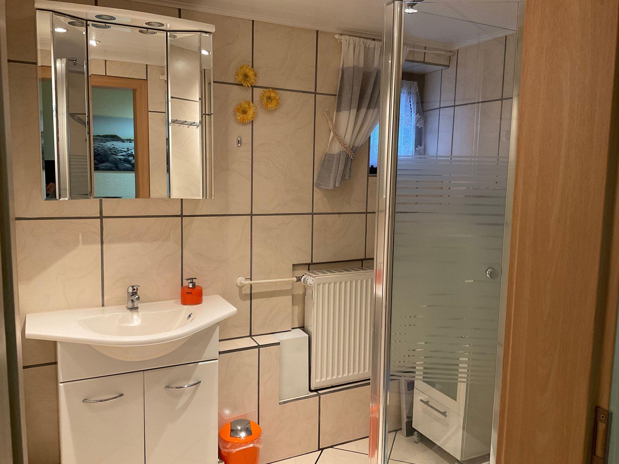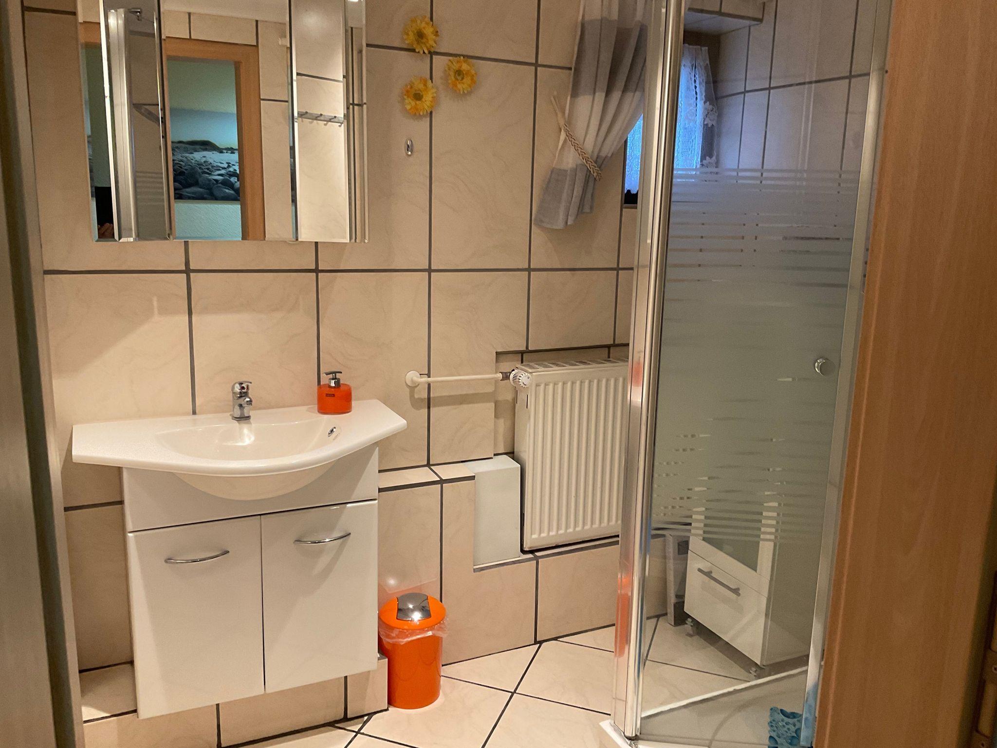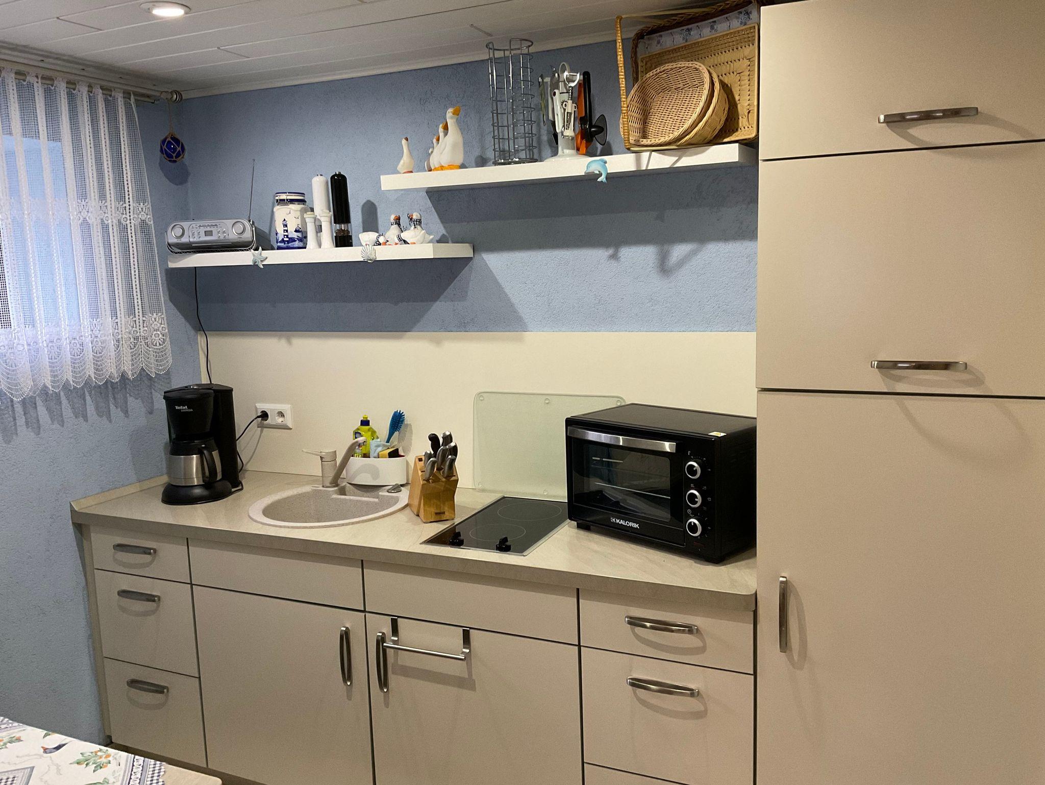 Die ca. 50 m² große Ferienwohnung im Untergeschoß, verfügt über einen separaten Eingang und bietet drei 3 Personen ausreichend Platz. Im kombinierten Wohn -/ Schlafraum finden Sie neben dem Doppelbett ein Einzelbett und eine Sitzgruppe. Die Küche ist in einem sep. Raum. Bad mit Dusche und extra WC.