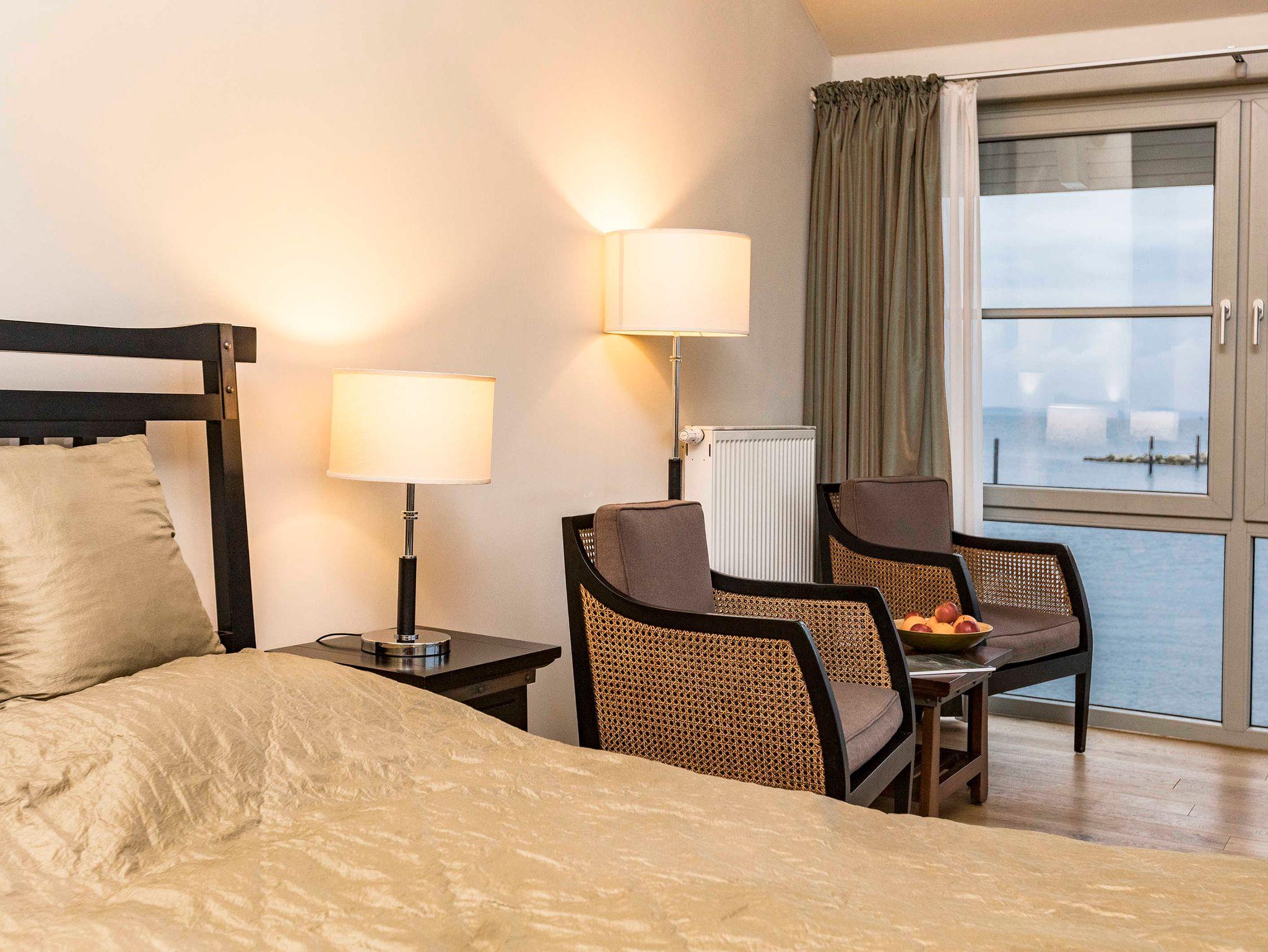 Ein Wohn-Schlafraum, Pantryküche, möblierte überdachte Terrasse und extra Badesteg, Sat-TV, Musikanlage, Bad mit Dusche und WC. Ausstattung der Küche: 2-Zonen-Kochfeld, Kombi-Mikrowelle, Nespresso-Kaffeeemaschine, Wasserkocher, Toaster, Geschirr, Besteck, Pfanne und Töpfe.