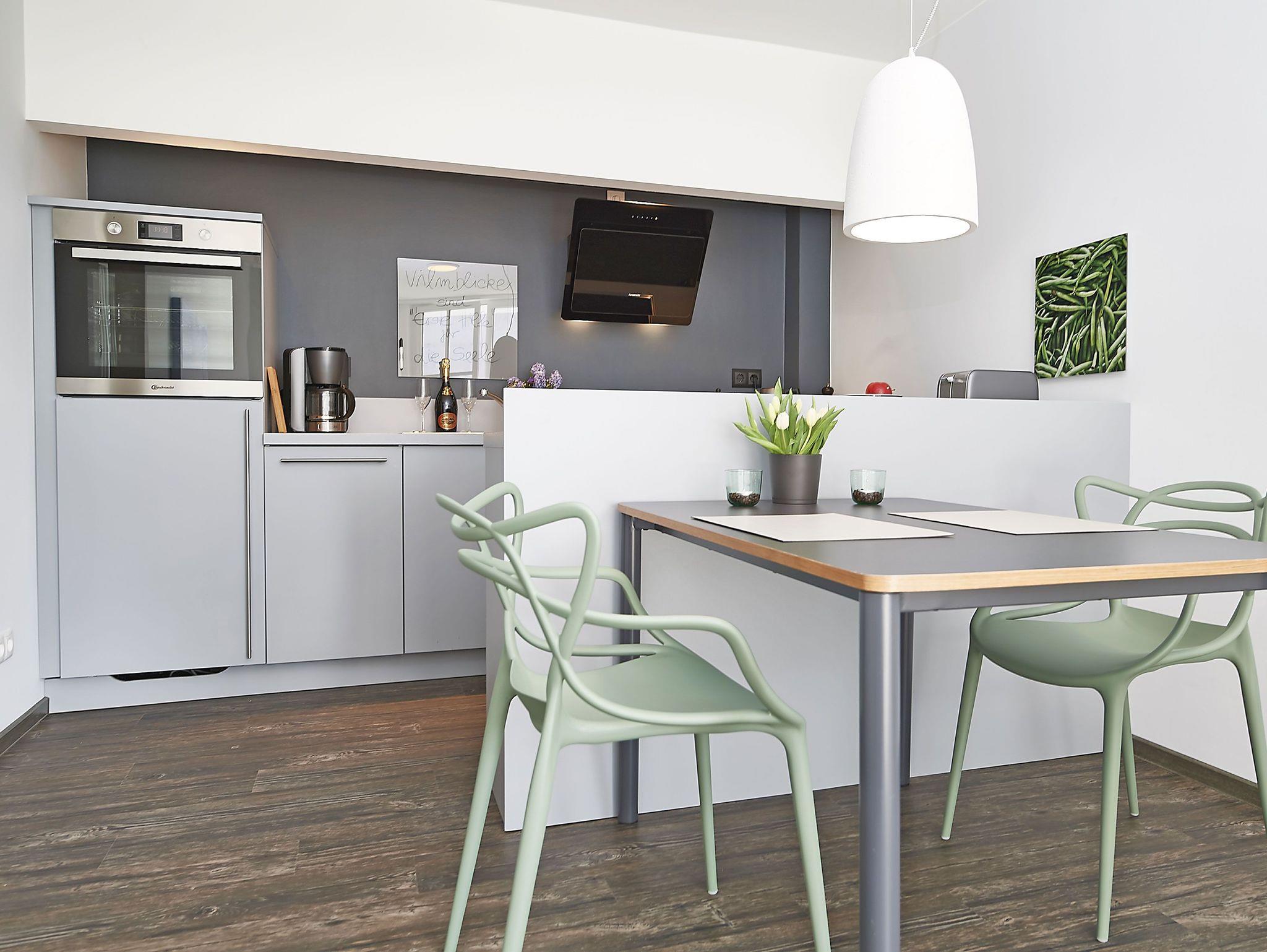 In angenehm ruhiger Lage und in frischem Design lädt im Hochparterre der Villa Vilmblick das rund 50 qm große Appartement 7 zum Verweilen und Entspannen ein. Wenige Schritte vom Hafen und ca. 500 m vom Endpunkt der Schmalspurbahn Rasenden Roland in Lauterbach entfernt, ist die Wohnung ein idealer Ausgangspunkt für Wanderungen und Radtouren in das Biosphärenreservat Südost-Rügen.