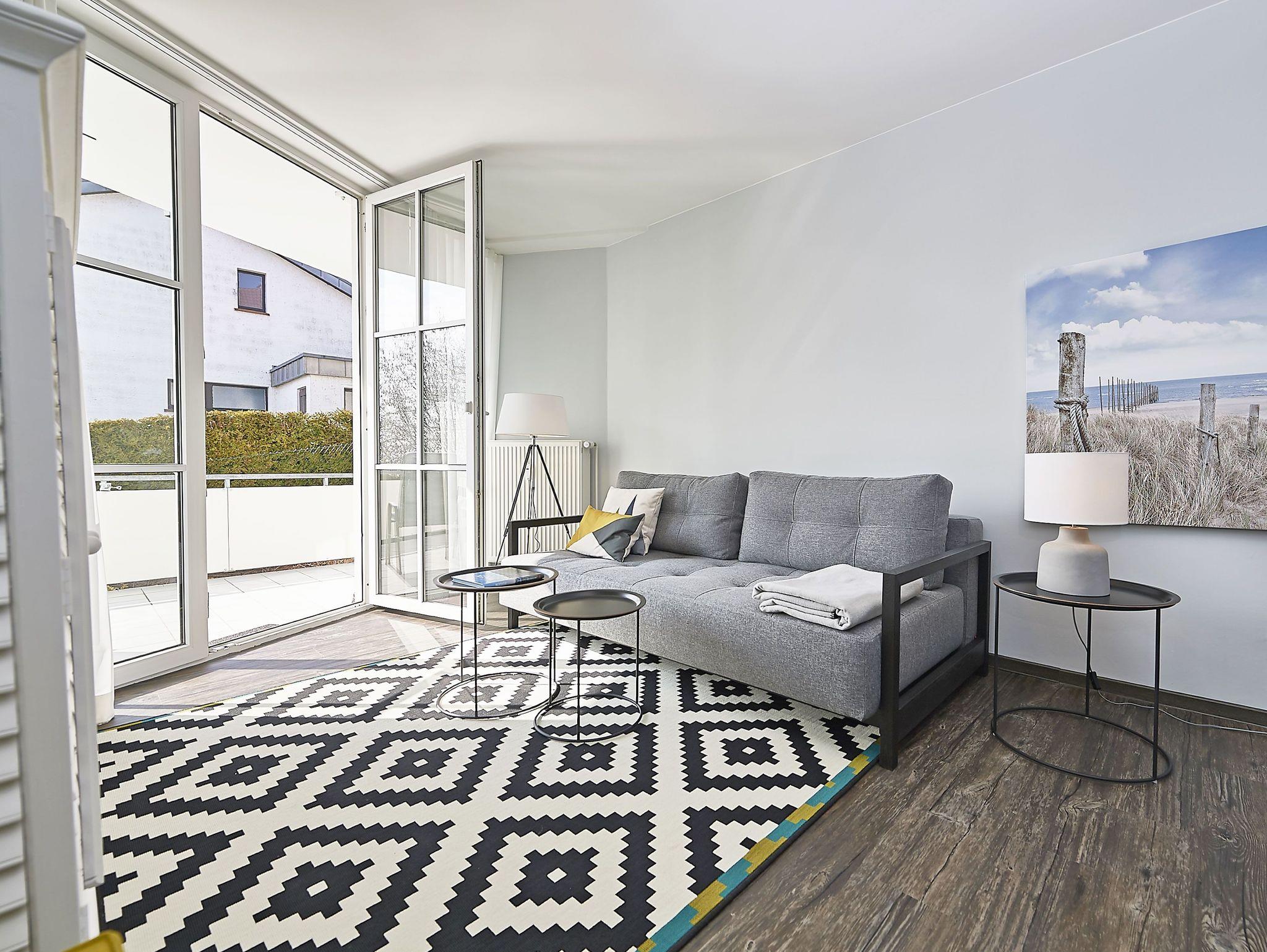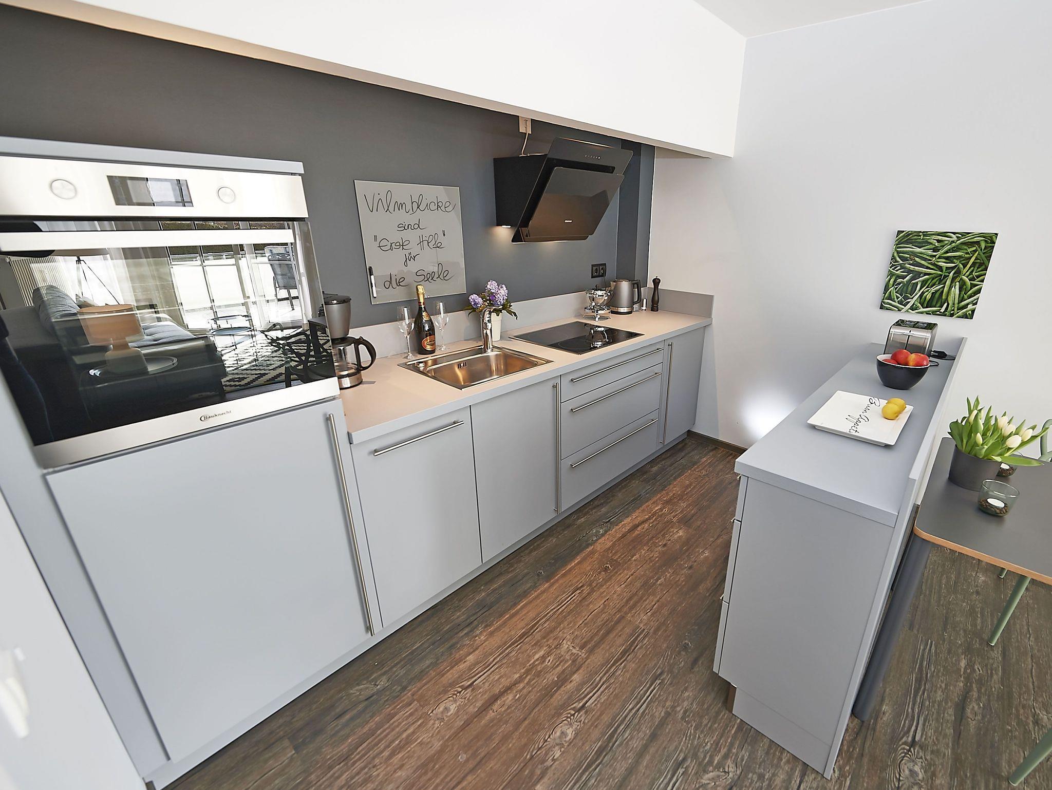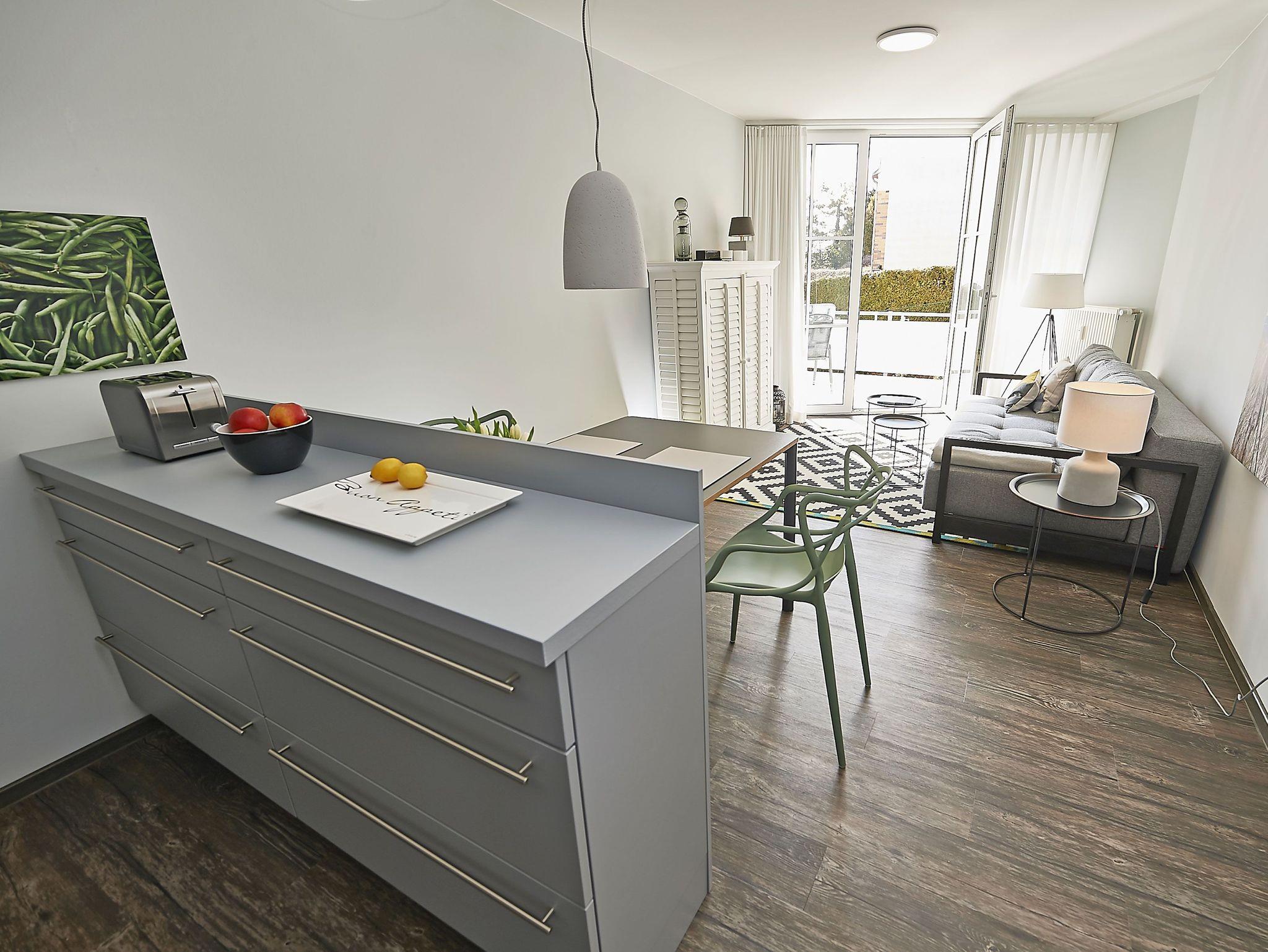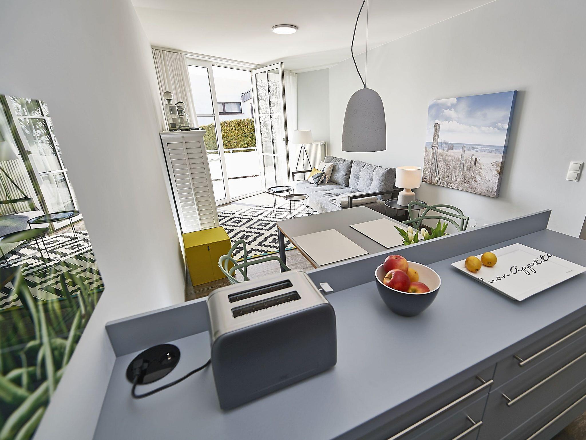Der lichtdurchflutete Wohnraum ist mit einem TV, kostenfreiem W-LAN und einer bequemen Couch ausgestattet. Die offene Küche mit angrenzendem Essbereich bietet alles Notwendige, um sich hier wohl zu fühlen und selbst zu bekochen, wenn man nicht in einem der Lokale im Ort speist. Das Schlafzimmer hat ein großes Doppelbett und lichtundurchlässige Vorhänge. Das Duschbad ist geräumig und zeitgemäß ausgestattet.