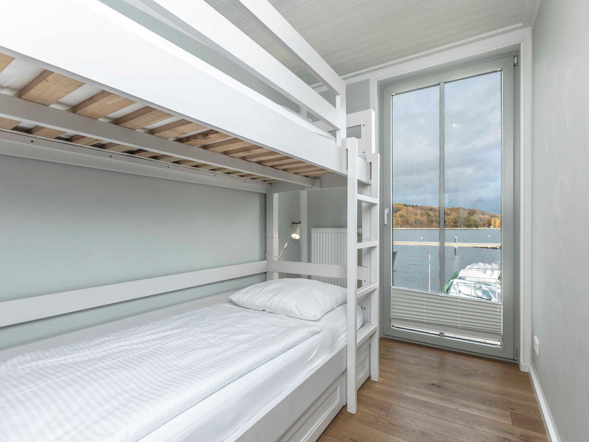 mit Etagenbett, Bad mit Dusche, Badeterrasse, Balkon und Liegeplatz | 72 m2 für 6 Pers.