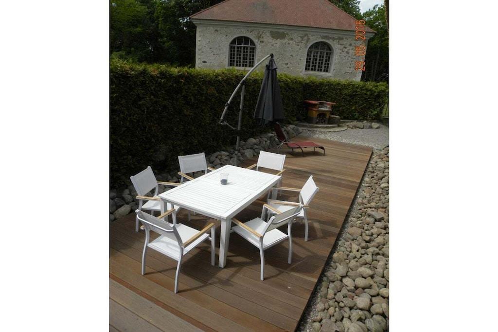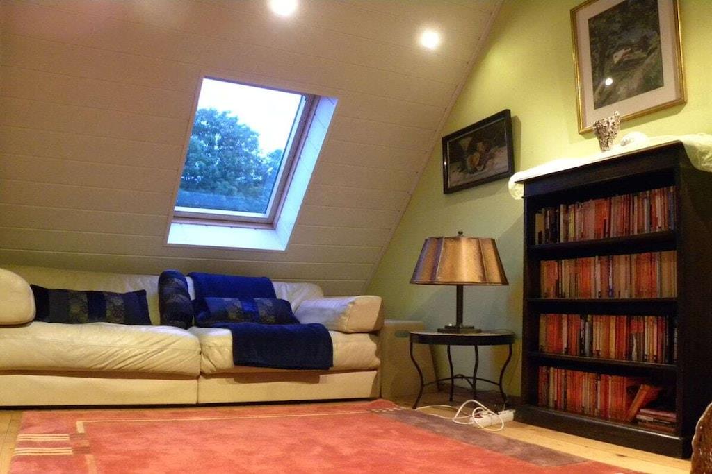 Fred, lys, luft og rummelighed - træk vejret dybt. Stråtagshus - stilfuldt møbleret; 4 soveværelser, køkken med spiseplads, amerikansk køleskab, 2 badeværelser med badekar og bruser, stor stue på øverste etage og separat læsehems. Læsning, leg, snak, se film, lytte til musik, internet, foretage telefonopkald i fred og ro - alt er muligt - det hele er der. Bøger, film, spil til en magisk ferie. Separat fitnessrum i annekset med infrarød kabine og bruser. Ejendommen er ideel til længerevarende solbadning efterfulgt af en hyggelig grill og afslapning. "To terrasser giver mulighed for forskellige grader af solbadning..." Med udsigt til en helt særlig lille kirke og borgruiner...