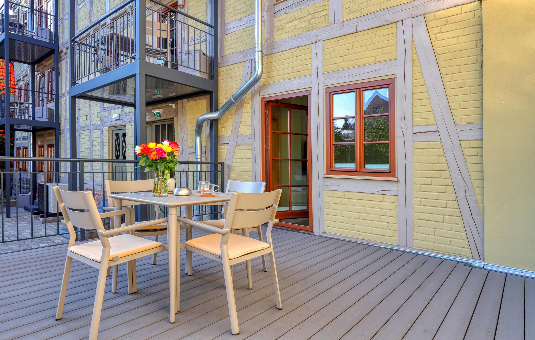 Velkommen til denne skønne lejlighed, som byder sine gæster velkommen med lyse, stilfuldt indrettede værelser i en historisk bygning, hvis lange historie kan ses i det synlige murværk og bindingsværk. Føl jer godt tilpas her med dine kære og nyd komforten og den smagfulde atmosfære. Slap af i saunaen, som deles med andre gæster, og hold jer i form selv på ferien med fitnessudstyret. Nyd din første kaffe og et par solstråler på terrassen, inden I begiver jer ud i dine aktiviteter.