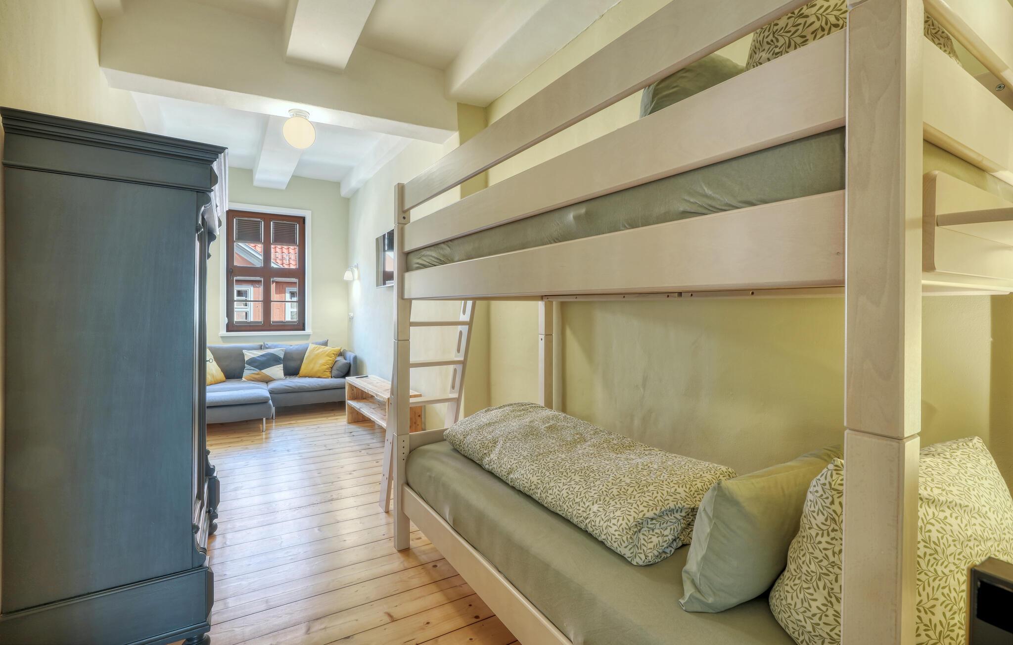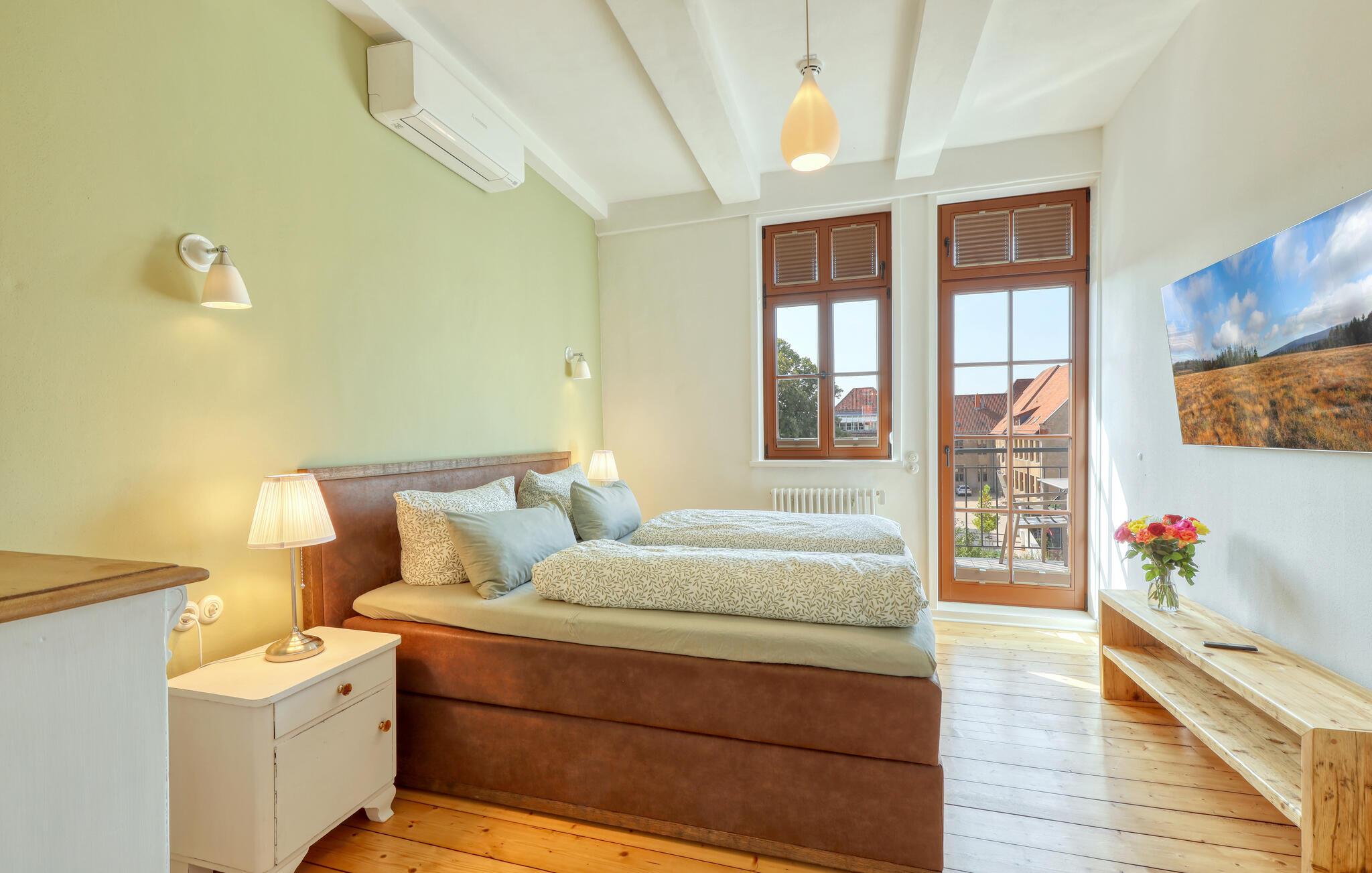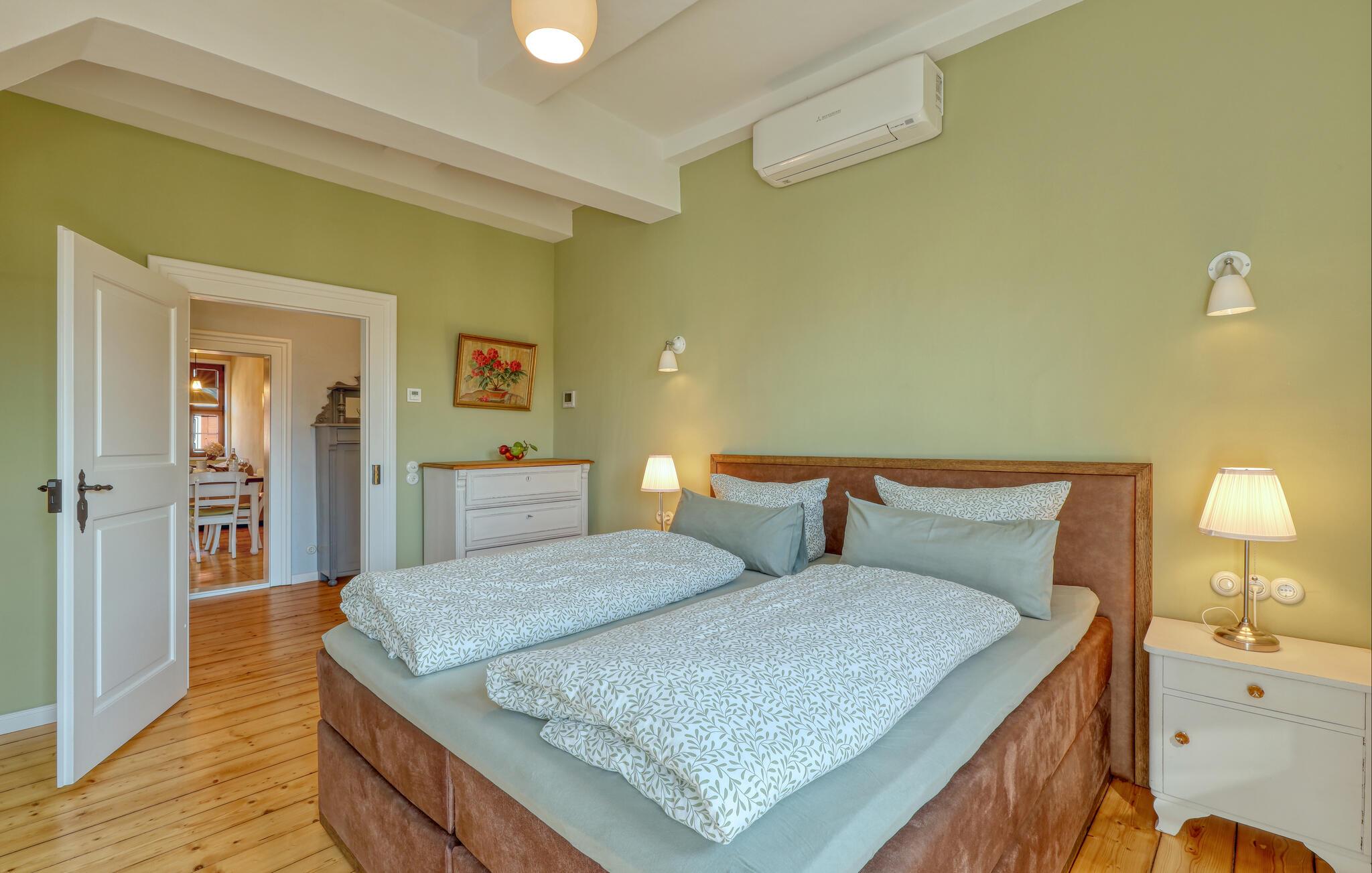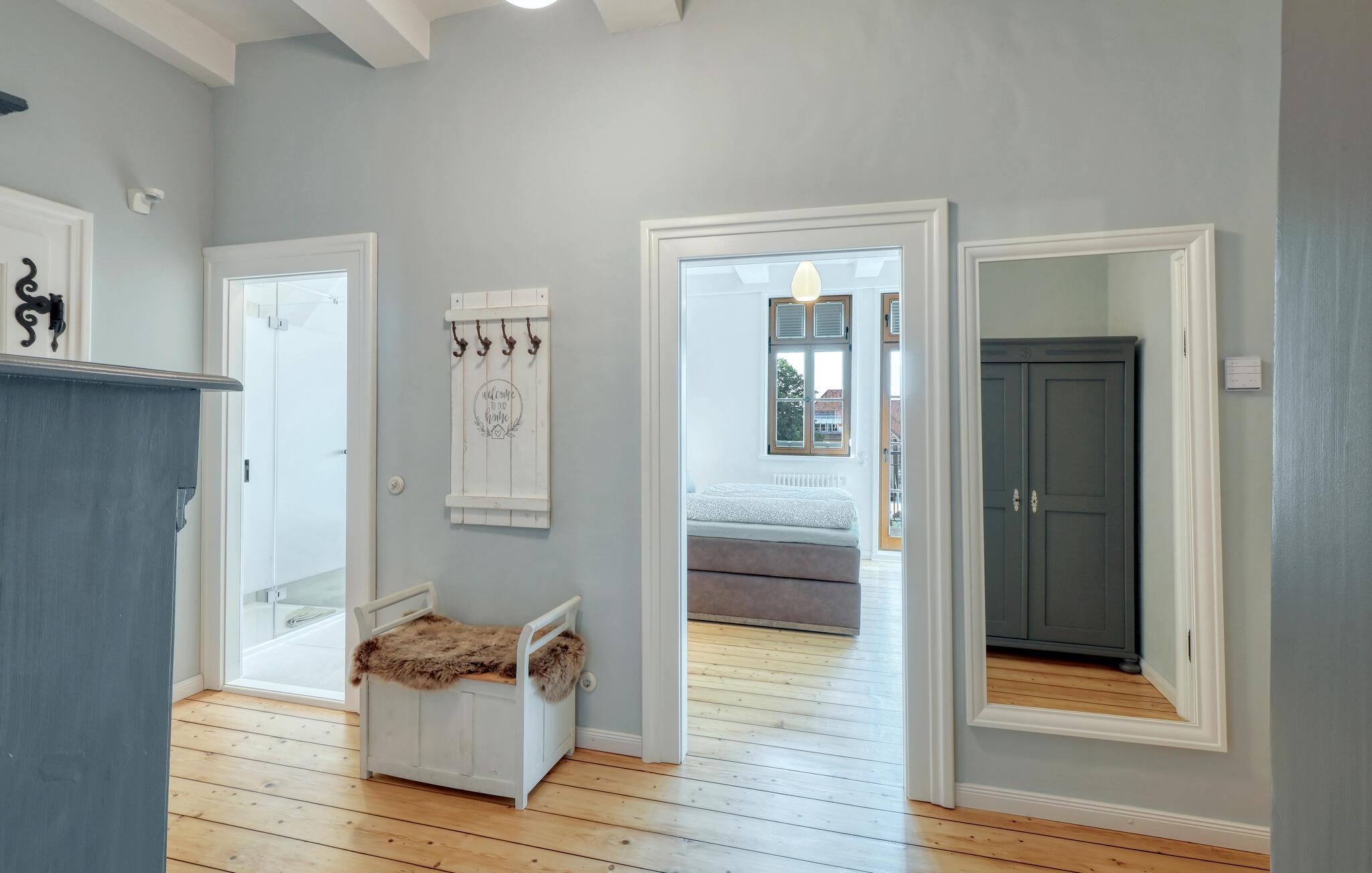 Velkommen til denne smukke lejlighed, der byder sine gæster velkommen med lyse, stilfuldt indrettede værelser i en historisk bygning. Føl jer godt tilpas her med dine kære og nyd komforten og den smagfulde atmosfære. Slap af i saunaen, som deles med andre gæster, og hold jer i form selv på ferien med fitnessudstyret. Nyd din første kaffe og et par solstråler på altanen eller terrassen, inden I begiver jer ud i dine aktiviteter.