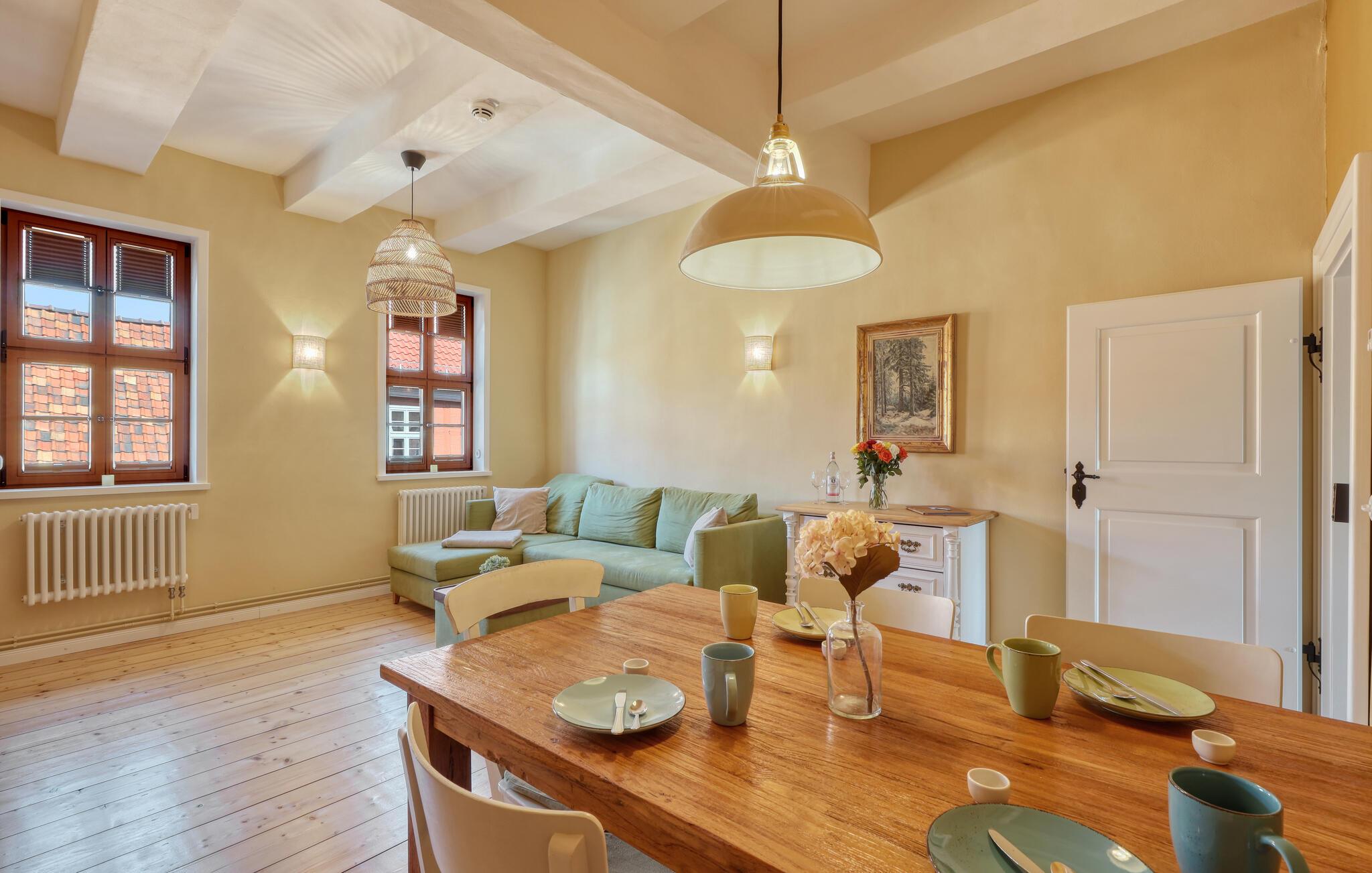 Velkommen til denne smukke lejlighed, der byder sine gæster velkommen med lyse, stilfuldt indrettede værelser i en historisk bygning. Føl jer godt tilpas her med dine kære og nyd komforten og den smagfulde atmosfære. Slap af i saunaen, som deles med andre gæster, og hold jer i form selv på ferien med fitnessudstyret. Nyd din første kaffe og et par solstråler på altanen eller terrassen, inden I begiver jer ud i dine aktiviteter.
