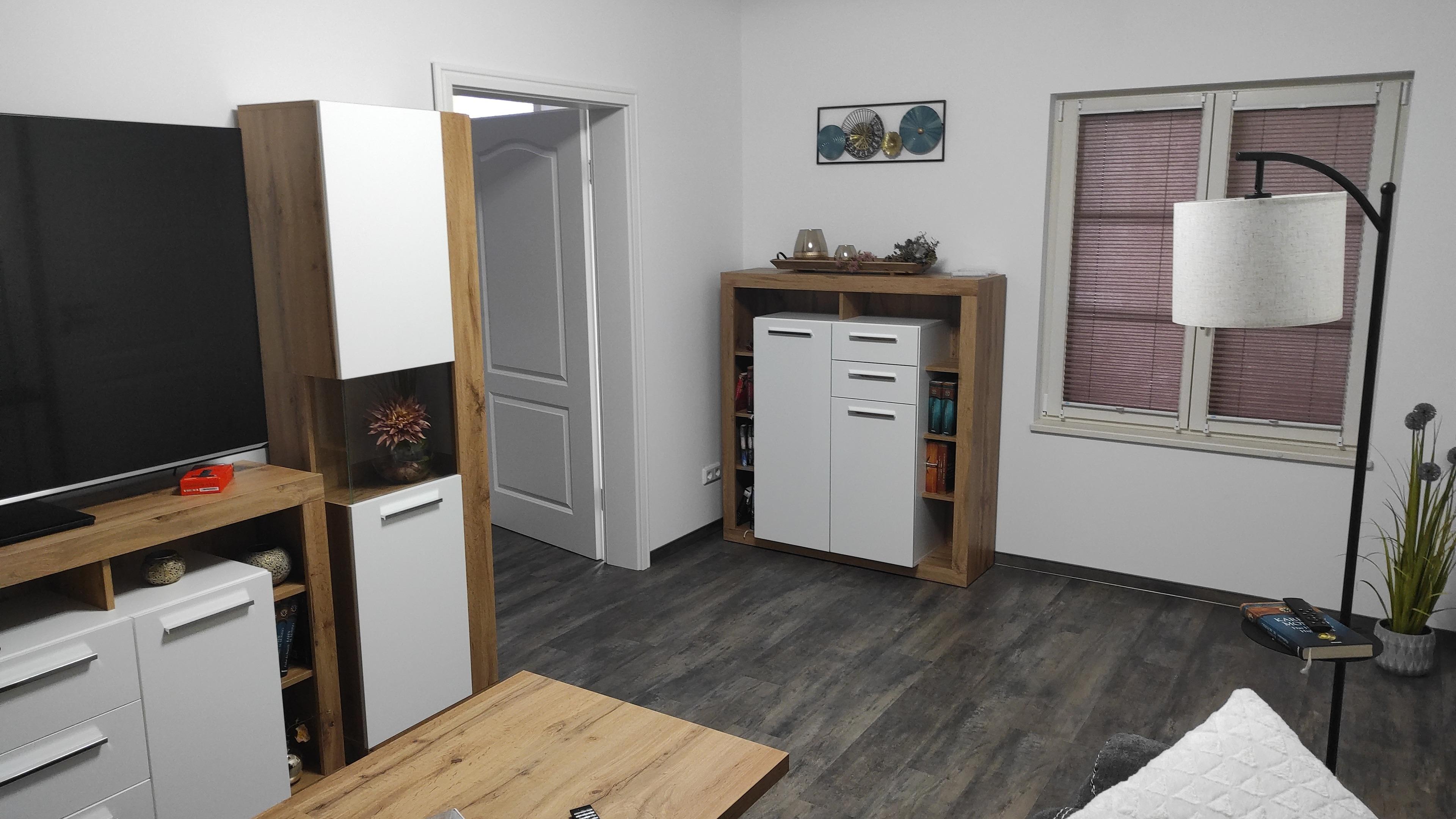 Die Ferienwohnung befindet sich auf der zweiten Etage eines ruhigen Mehrfamilienhauses welches für altersgerechtes Wohnen errichtet wurde. Sie besteht aus einem schicken Wohn- sowie Schlafzimmer und einer Küche, die mit allem ausgestattet ist was Sie für Ihren Aufenthalt benötigen. (Backofen, Mikrowelle, Kaffeemaschine, Geschirrspüler, Wasserkocher, Toaster etc.).