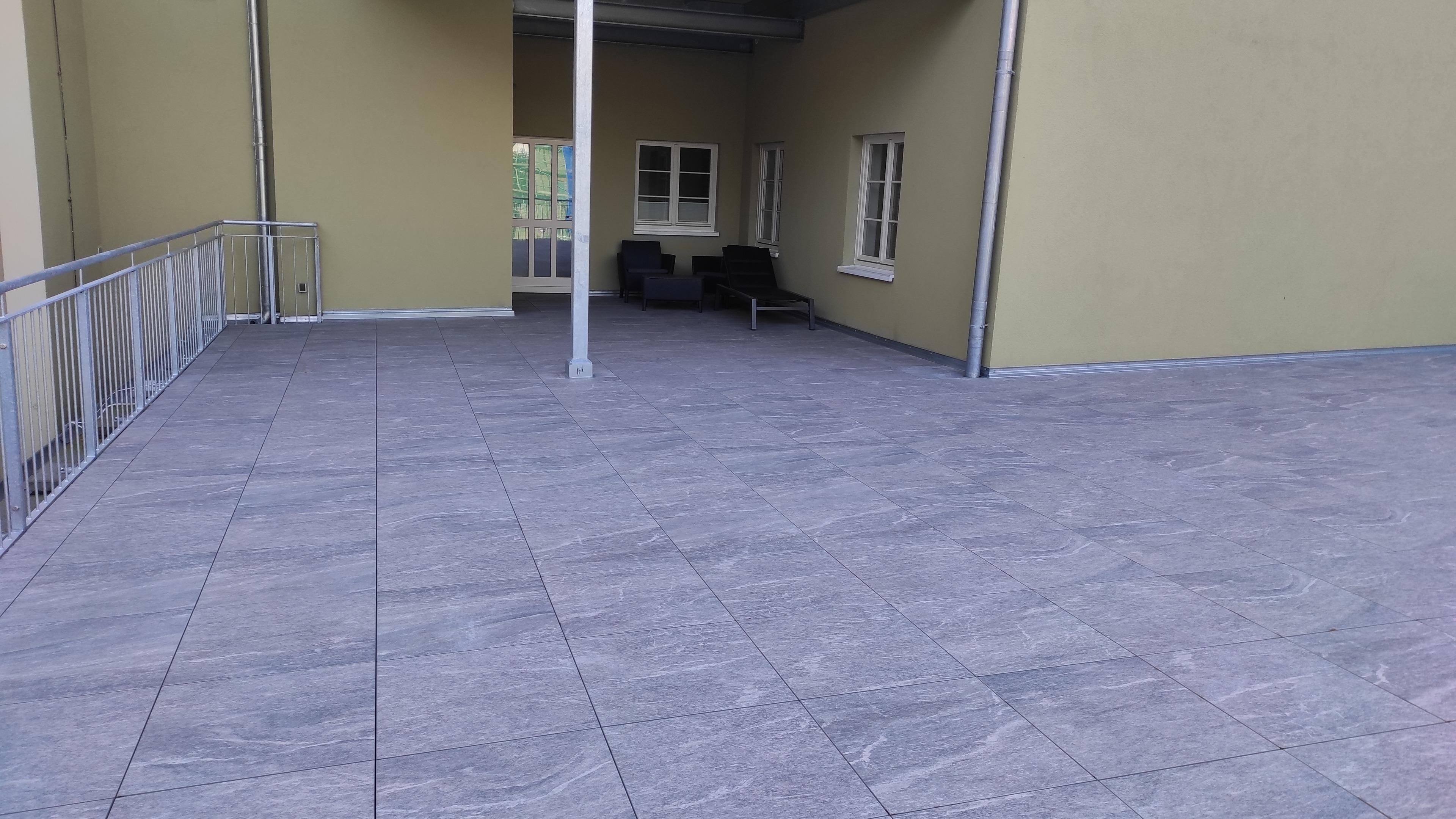 Für die Ferienwohnung steht eine 27 m² große Gemeinschaftsterrassen zur Verfügung. Alternativ kann die 130 m² große Hauptterrasse als Ausweichmöglichkeit genutzt werden.