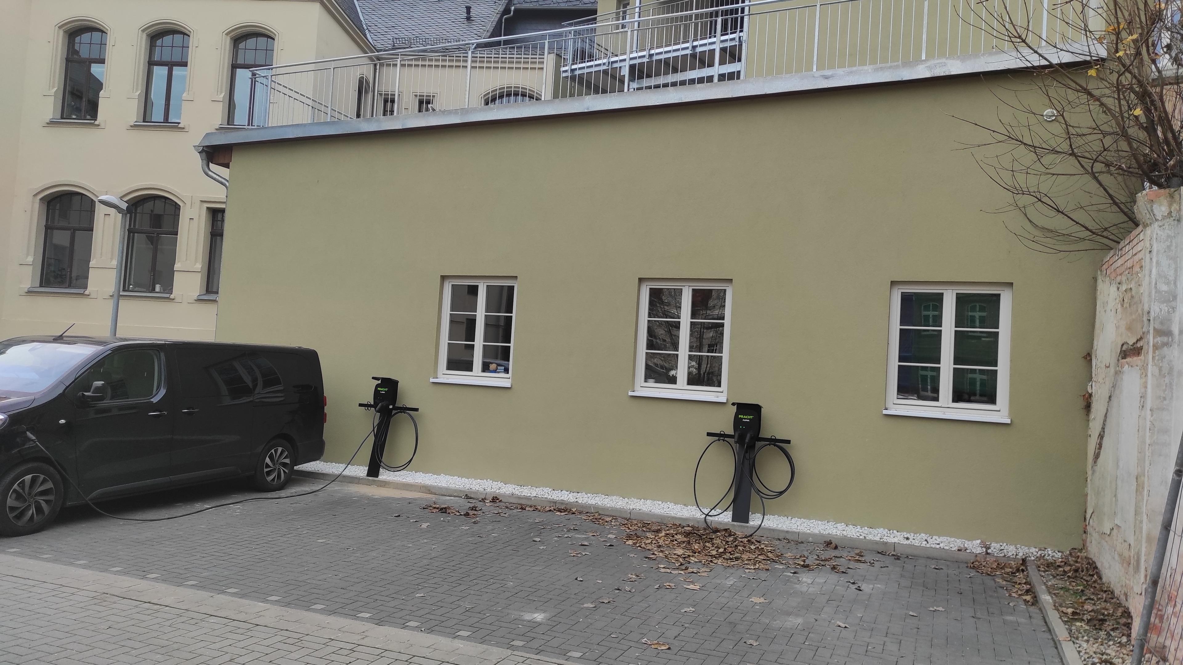 Auf dem Grundstück stehen E-Ladesäulen zur Verfügung.